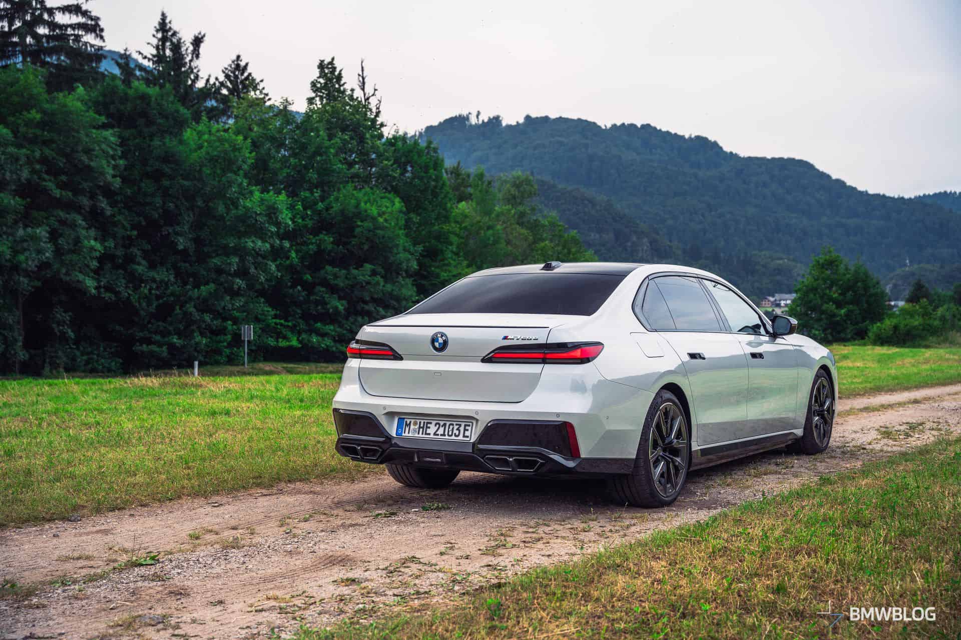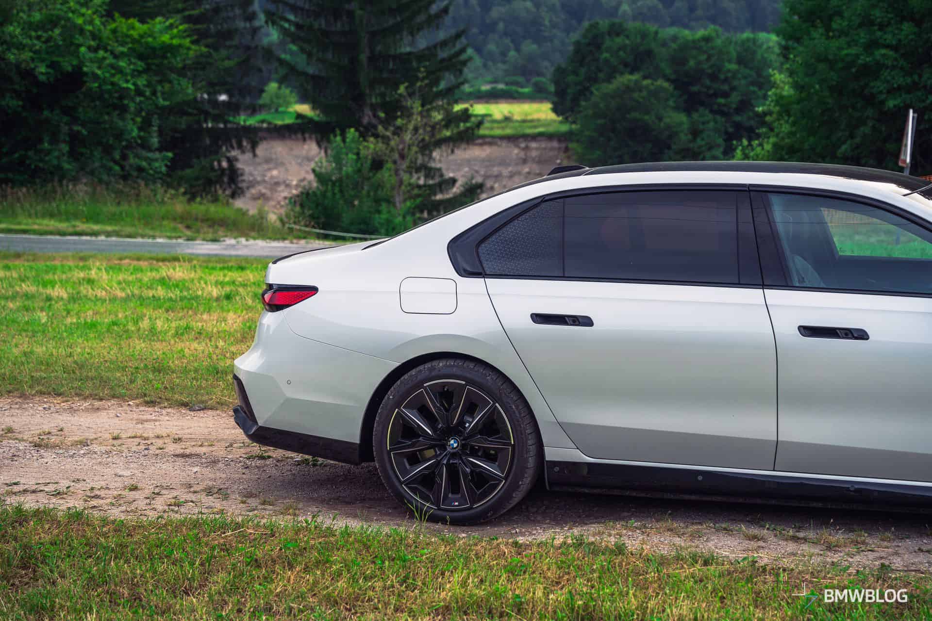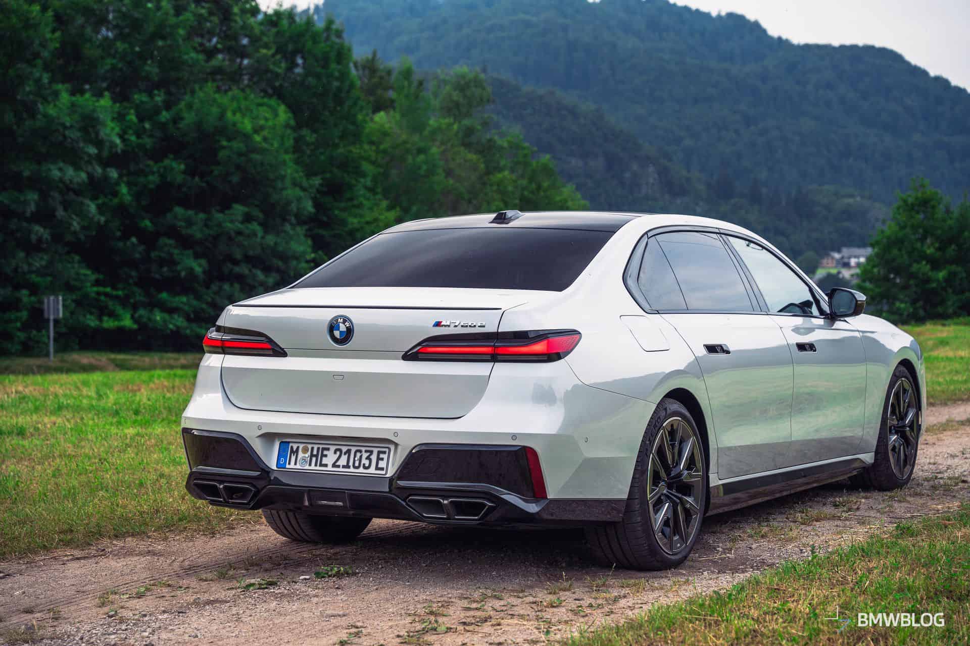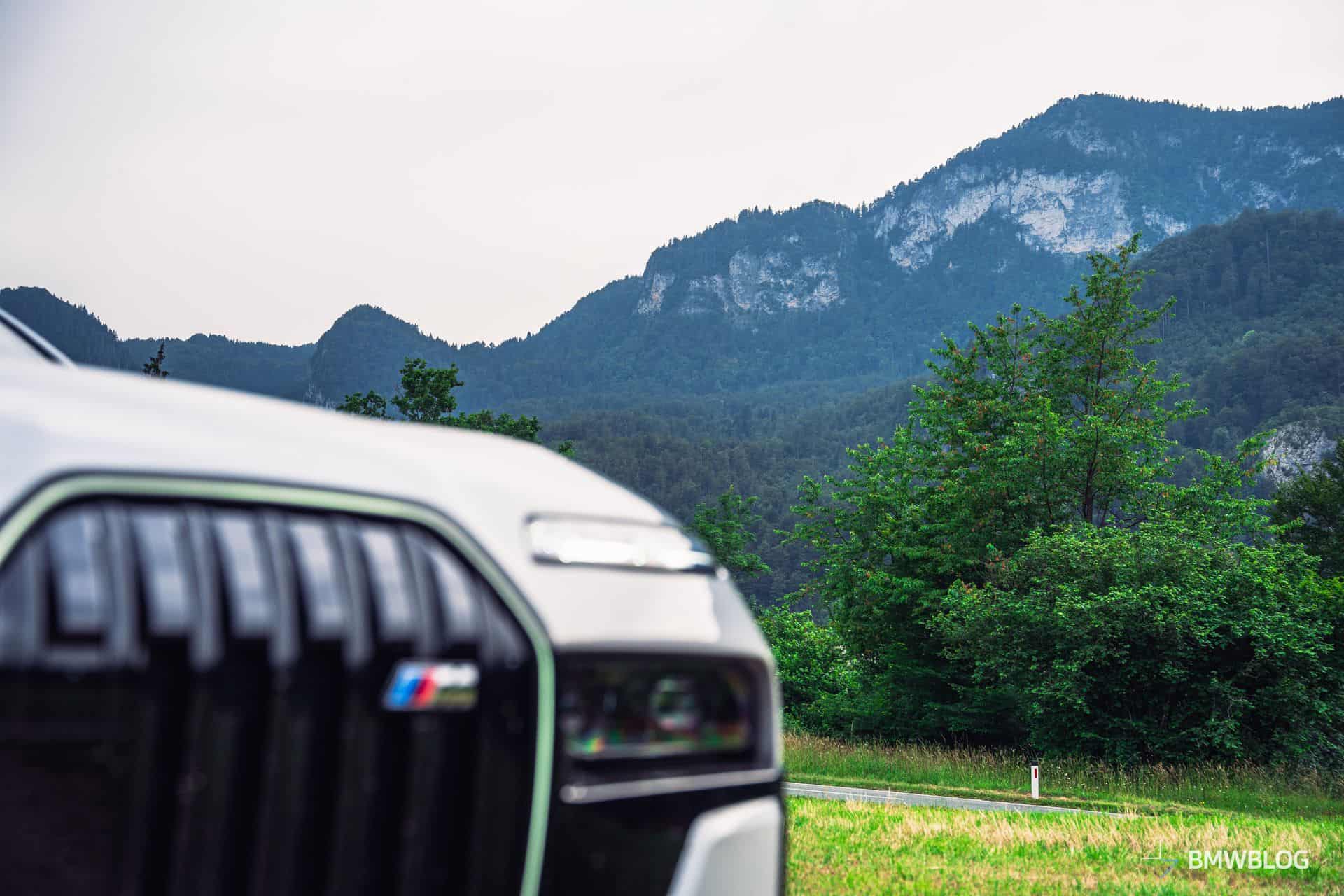 The morning sun cast a golden glow over Munich as we loaded our luggage into the spacious trunk of the M760e. After a night fueled with football, beer and bratwursts, we were ready for the first leg of our trip: a 400 km trip to exhaust-maker Akrapovic in Ljubljana, Slovenia. The sharp Mineral White M760e was ready for the adventure. With the press of a button, the automatic doors closed, enveloping us in a cocoon of luxury. As we set off towards Ljubljana, the car’s pure electric mode provided a serene and silent start to our journey. The 31-inch Theater Screen in the back streamed the Euro Cup matches, setting the mood perfectly.