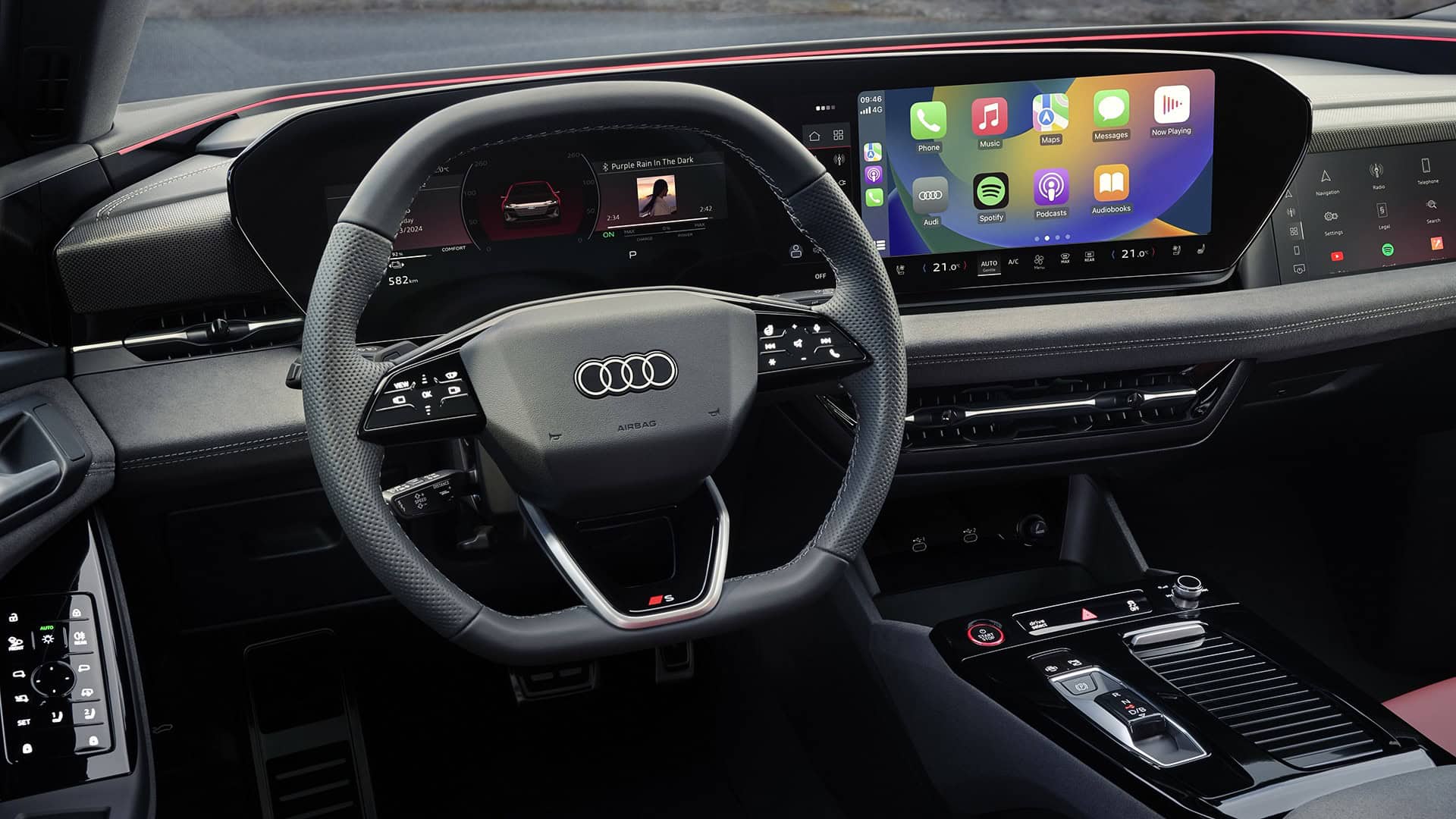In S6 guise, the performance estate from Ingolstadt delivers 496 horsepower to the Quattro all-wheel-drive system. Using launch control unlocks the full 543 hp, enabling a 0 to 62 mph (100 km/h) run in 3.9 seconds. Audi quotes a top speed of 149 mph (240 km/h). That pair of electric motors draws its juice from a 94.9-kWh battery that Audi installs in the standard A6 Avant E-Tron as well.