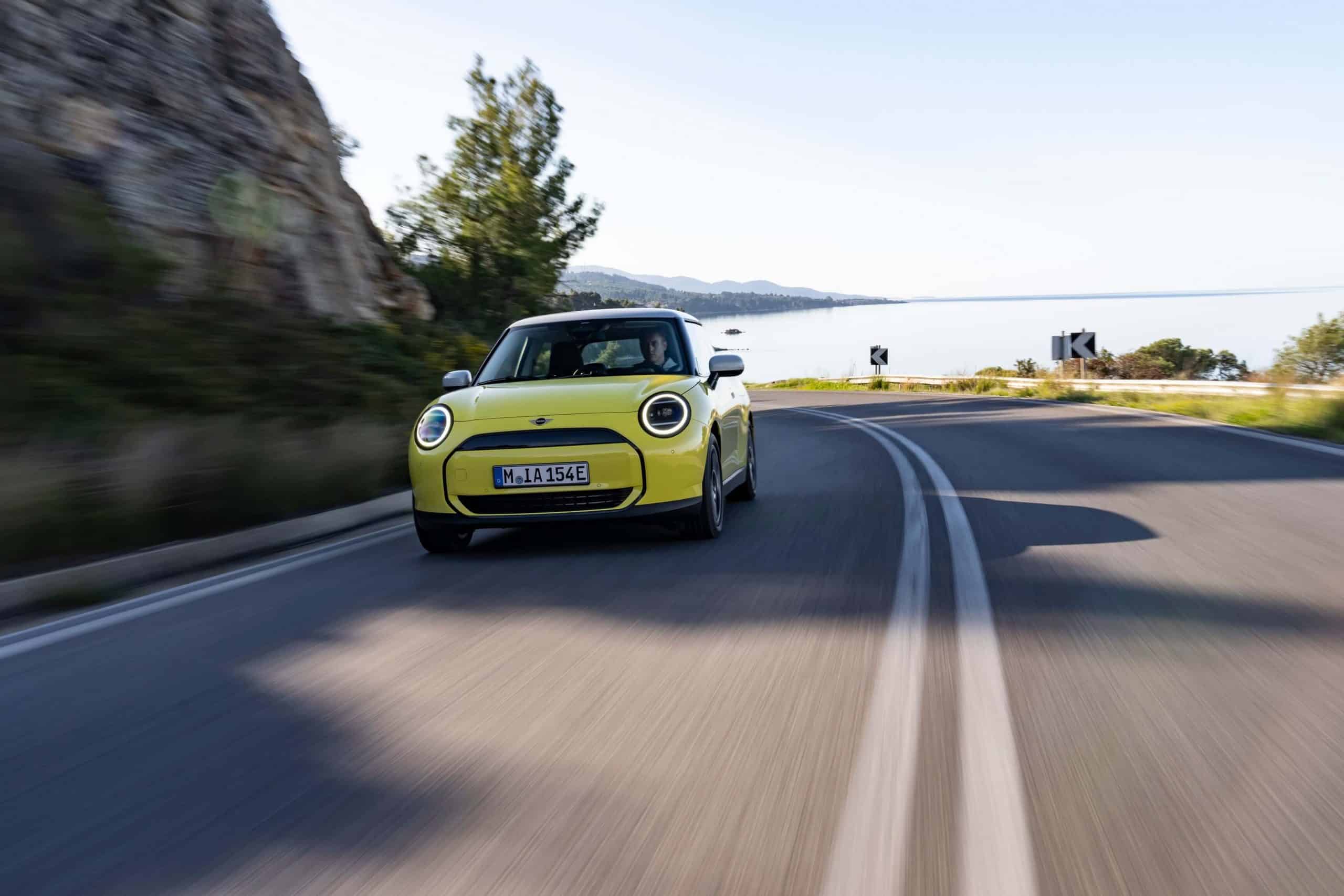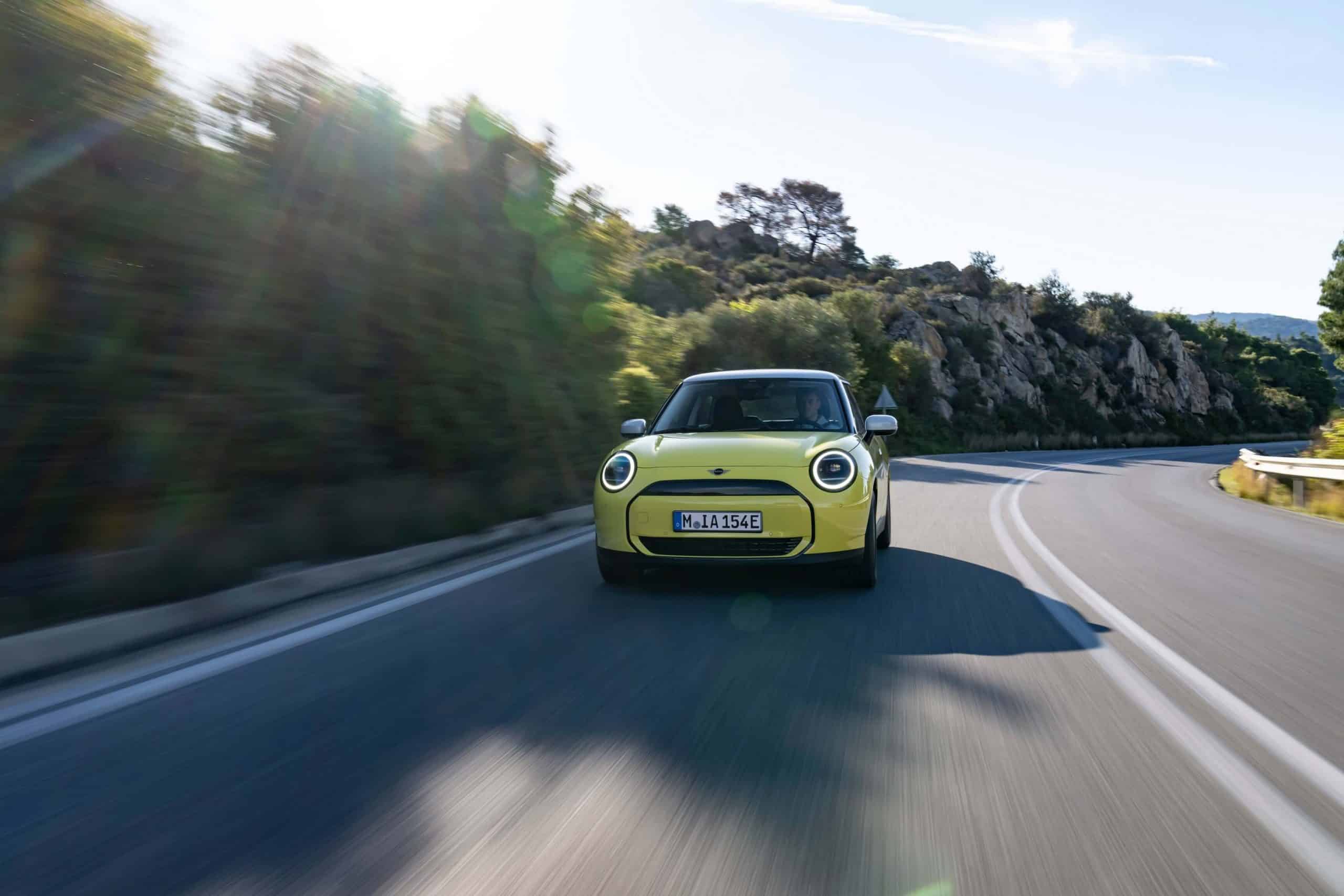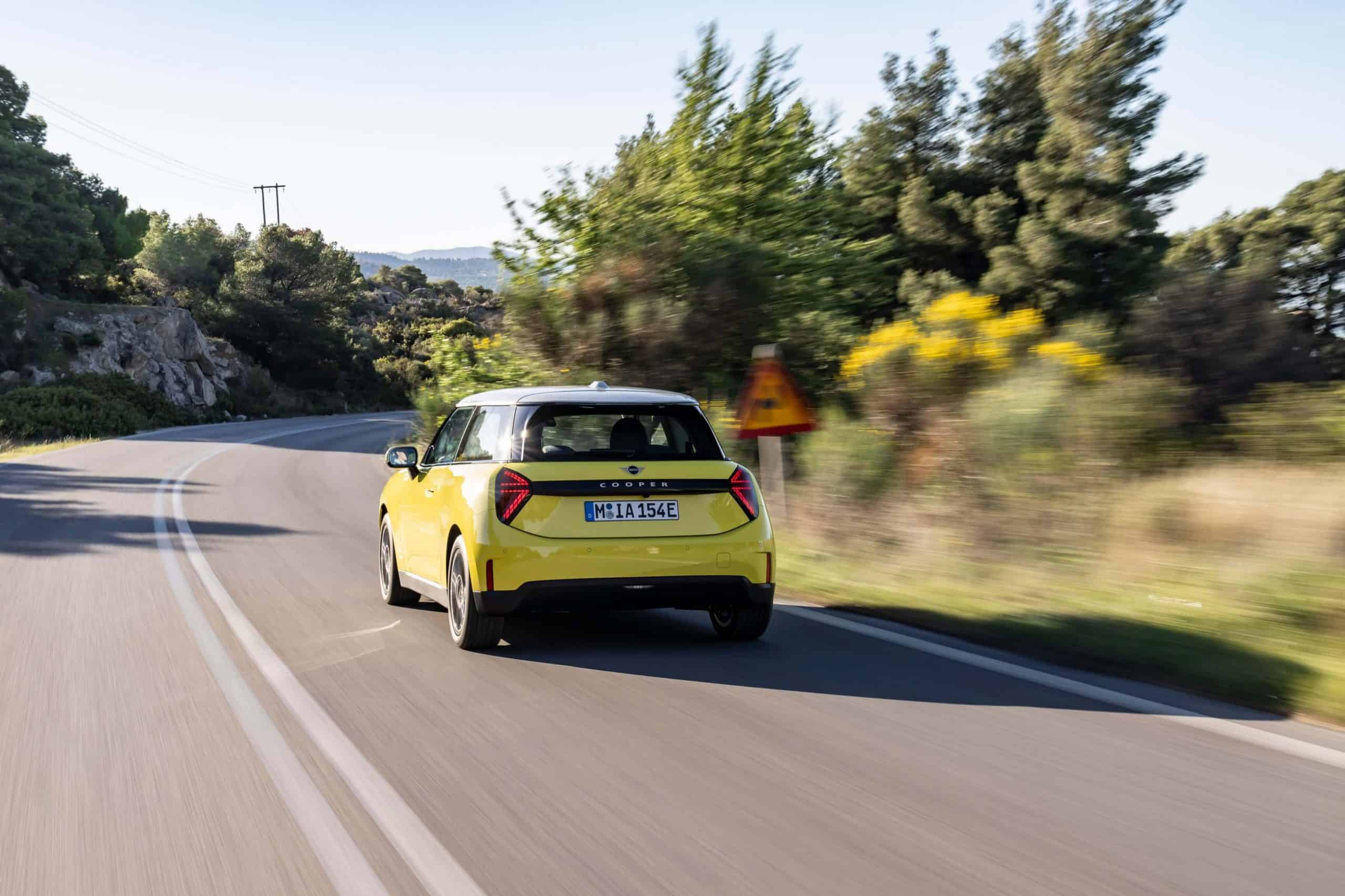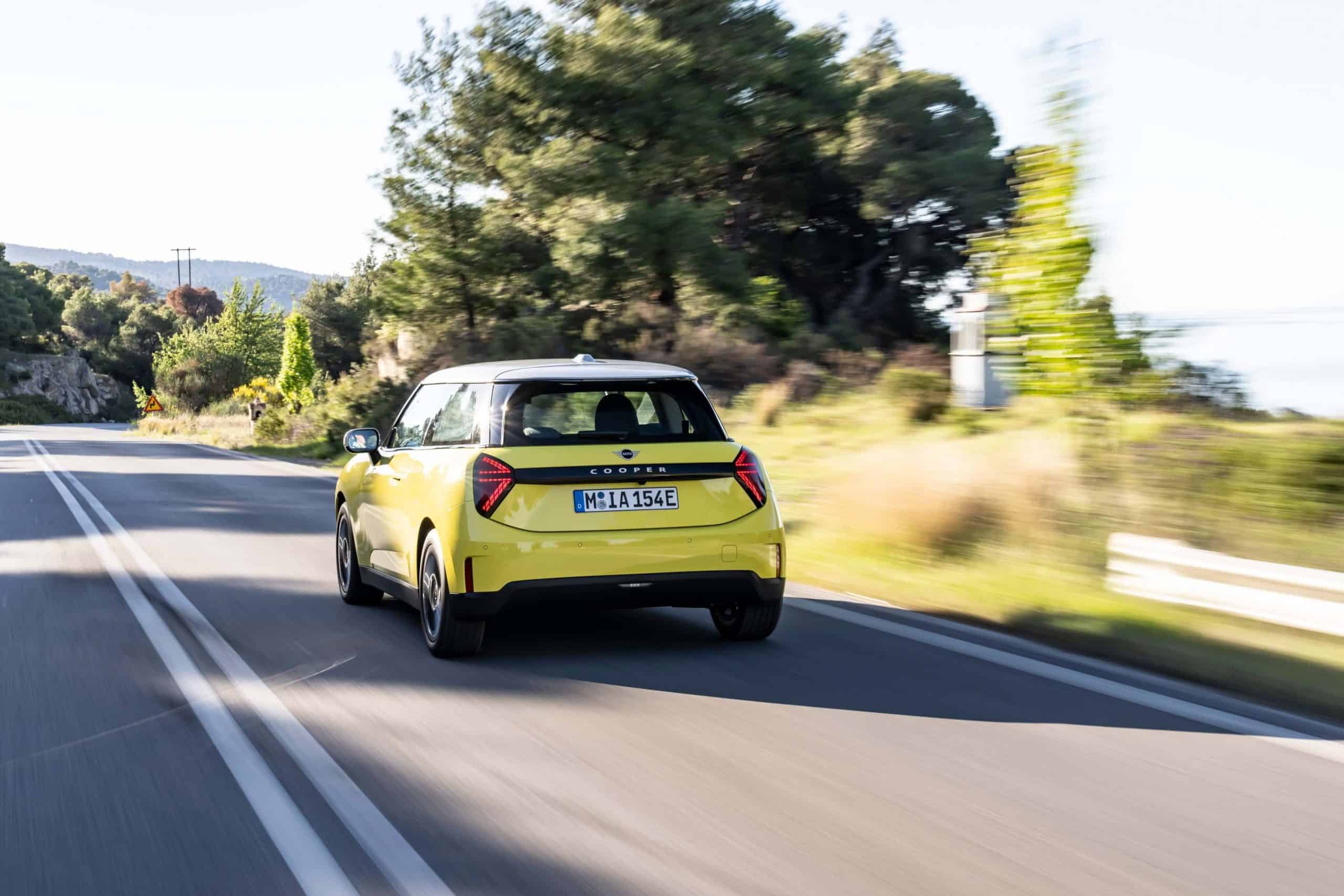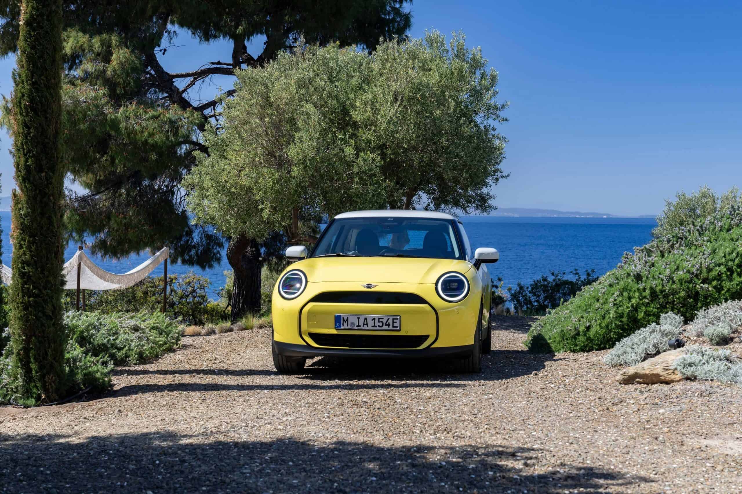 Ironically, the EV featured here was built in the Classic Trim. That striking paint job is called Sunny Side Yellow, contrasted by the white roof and mirrors. MINI also went with a glossy black grille surround and dark 17-inch wheels, so a lot is going on with the exterior. The electric hatch traveled thousands of miles for this photo shoot considering the car was built in China. The “J01” won’t be built at home in Oxford until sometime in 2026.