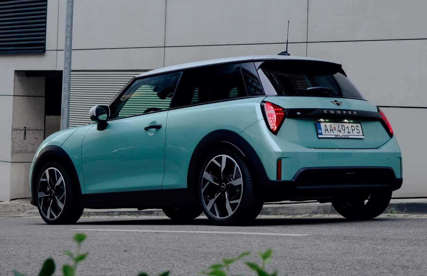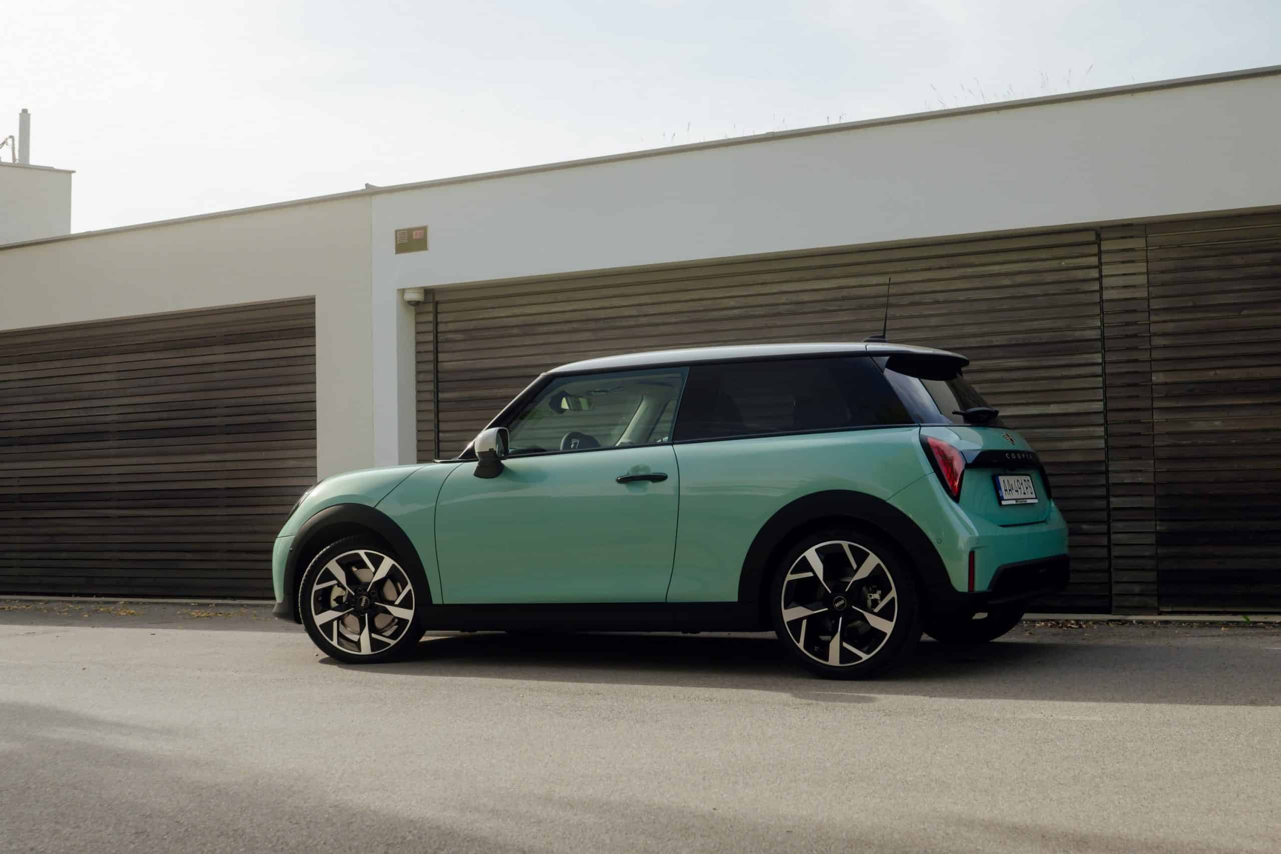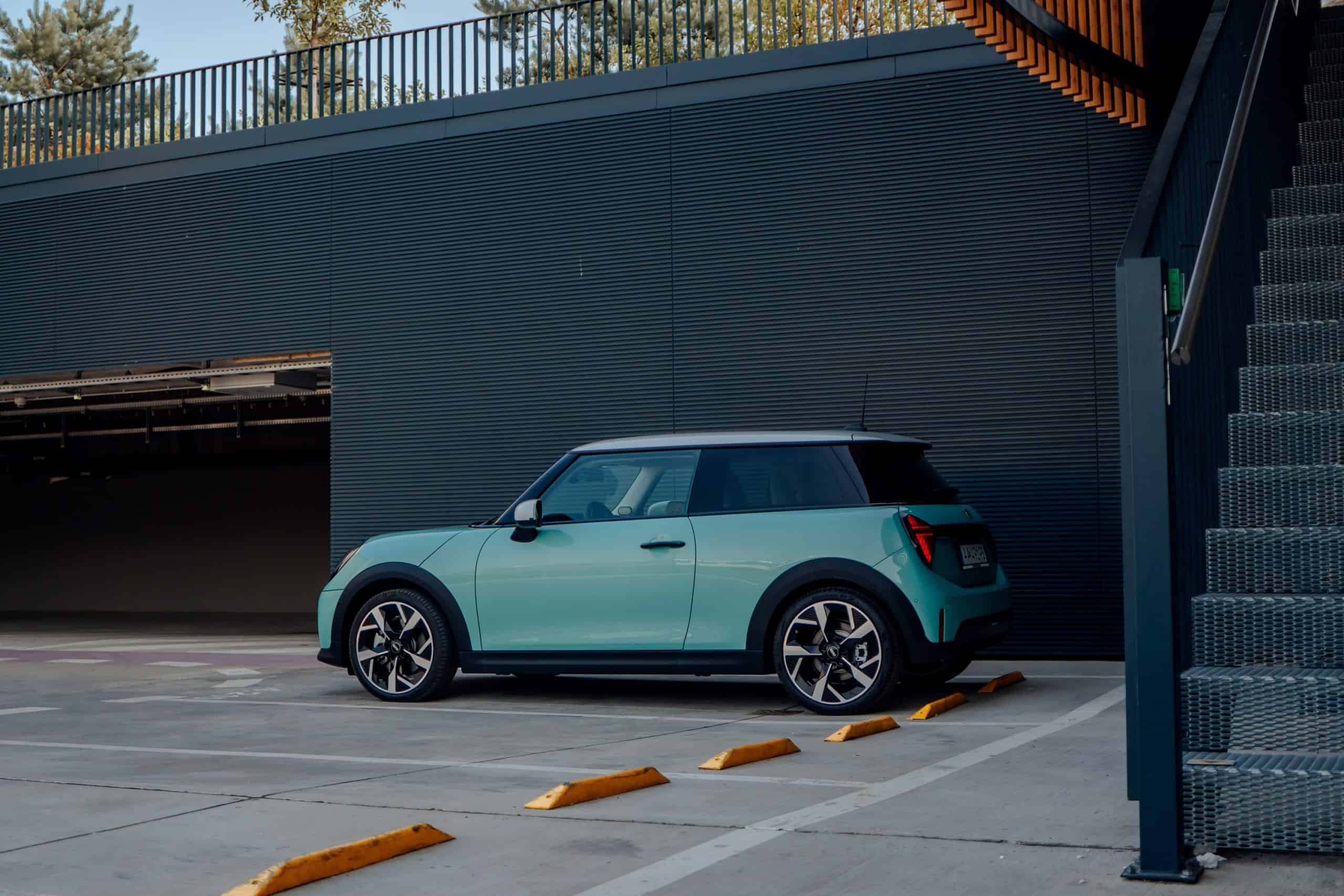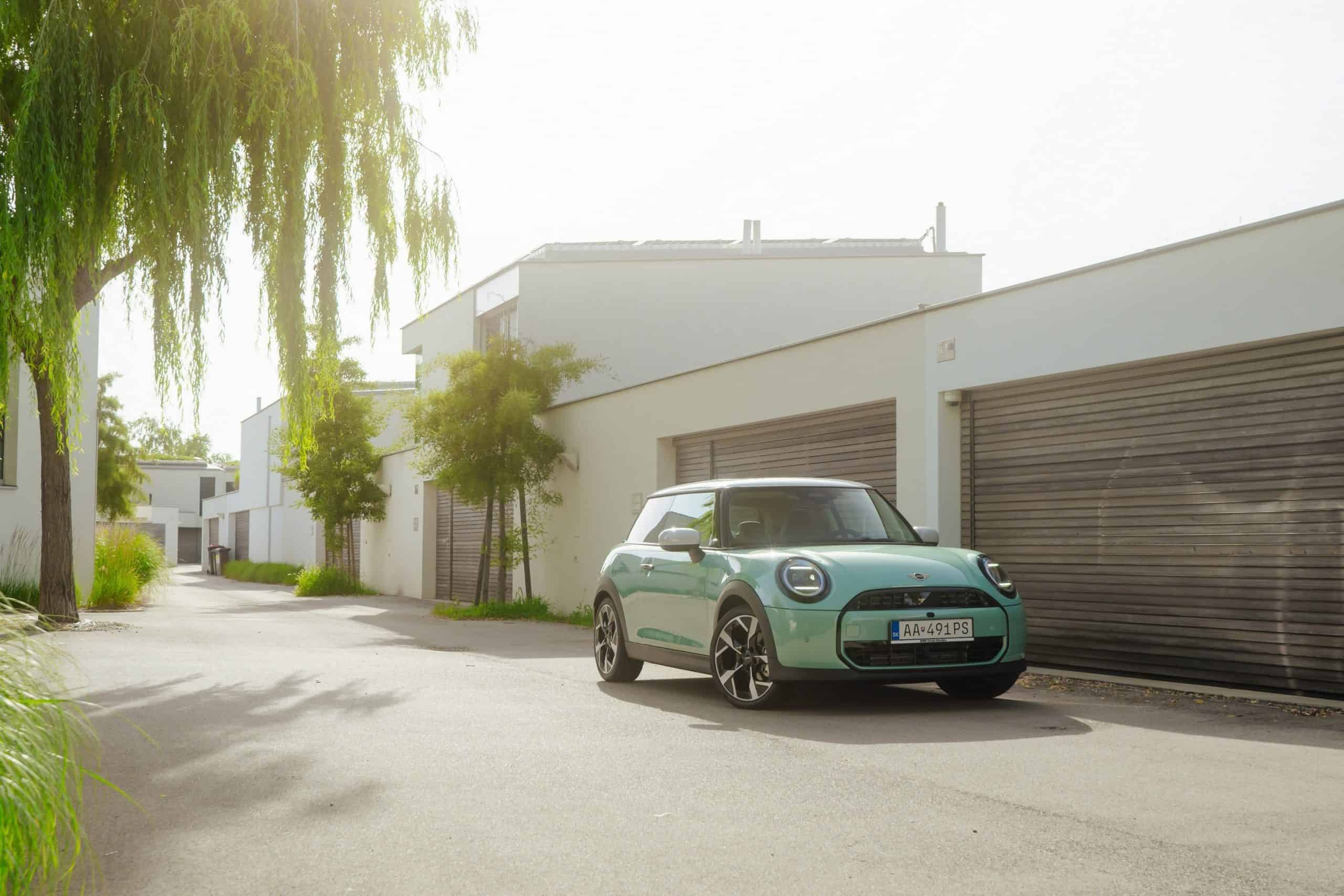MINI is showing off the back-to-basics car from Slovakia’s capital Bratislava where the Cooper C was recently photographed. Granted, this isn’t a completely standard configuration of the “F66.” It’s a higher-end Classic Trim with the optional Ocean Wave Green paint job. It also eschews the standard 16-inch wheels in favor of a larger 18-inch set with a two-tone finish.