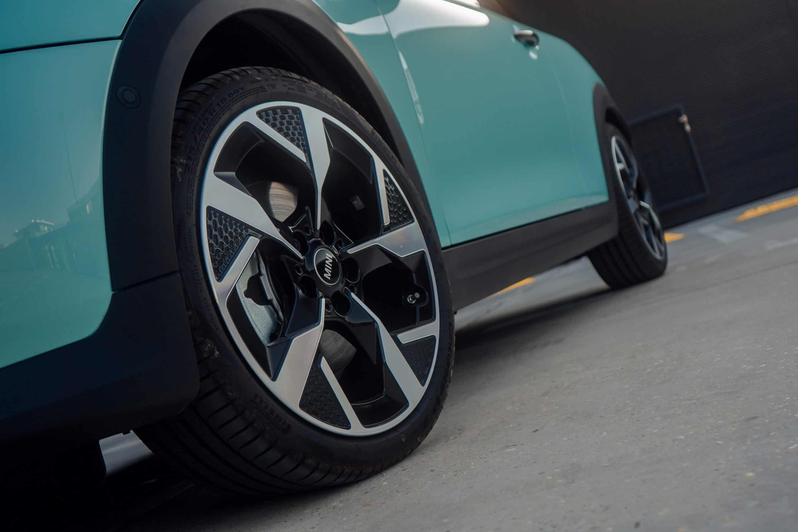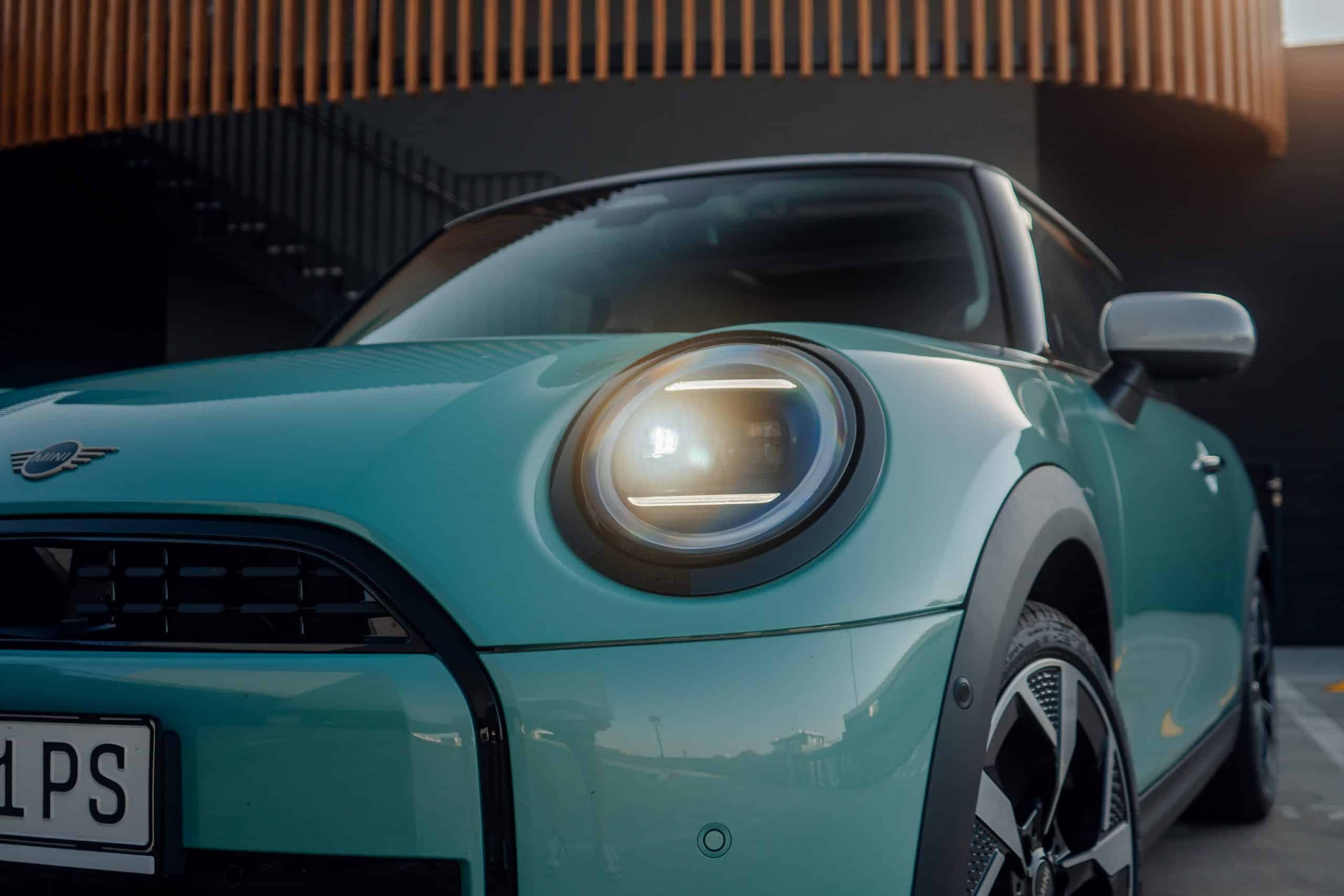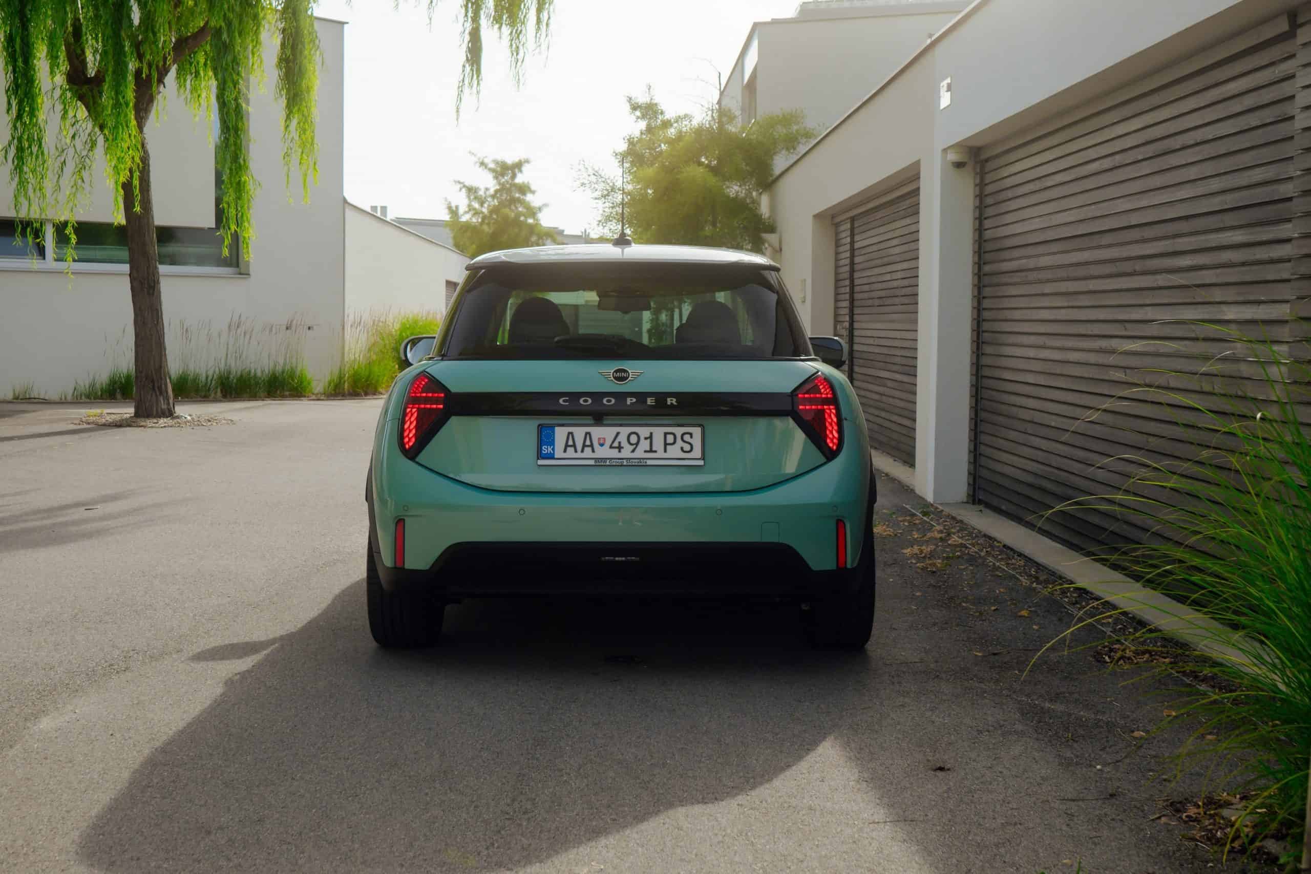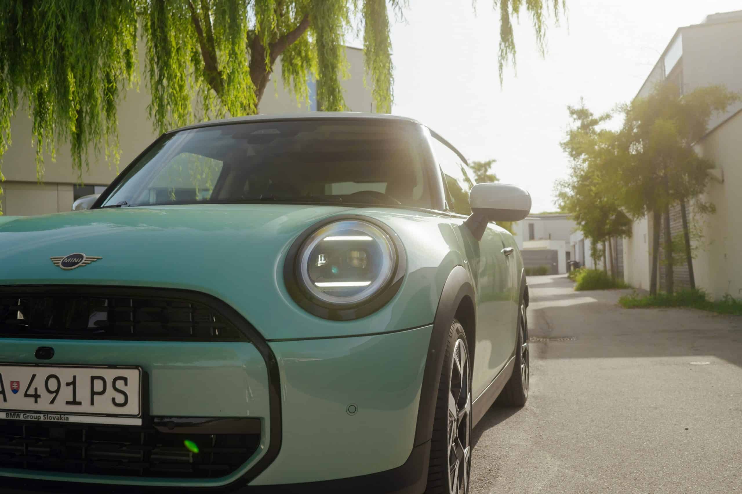 MINI is showing off the back-to-basics car from Slovakia’s capital Bratislava where the Cooper C was recently photographed. Granted, this isn’t a completely standard configuration of the “F66.” It’s a higher-end Classic Trim with the optional Ocean Wave Green paint job. It also eschews the standard 16-inch wheels in favor of a larger 18-inch set with a two-tone finish.