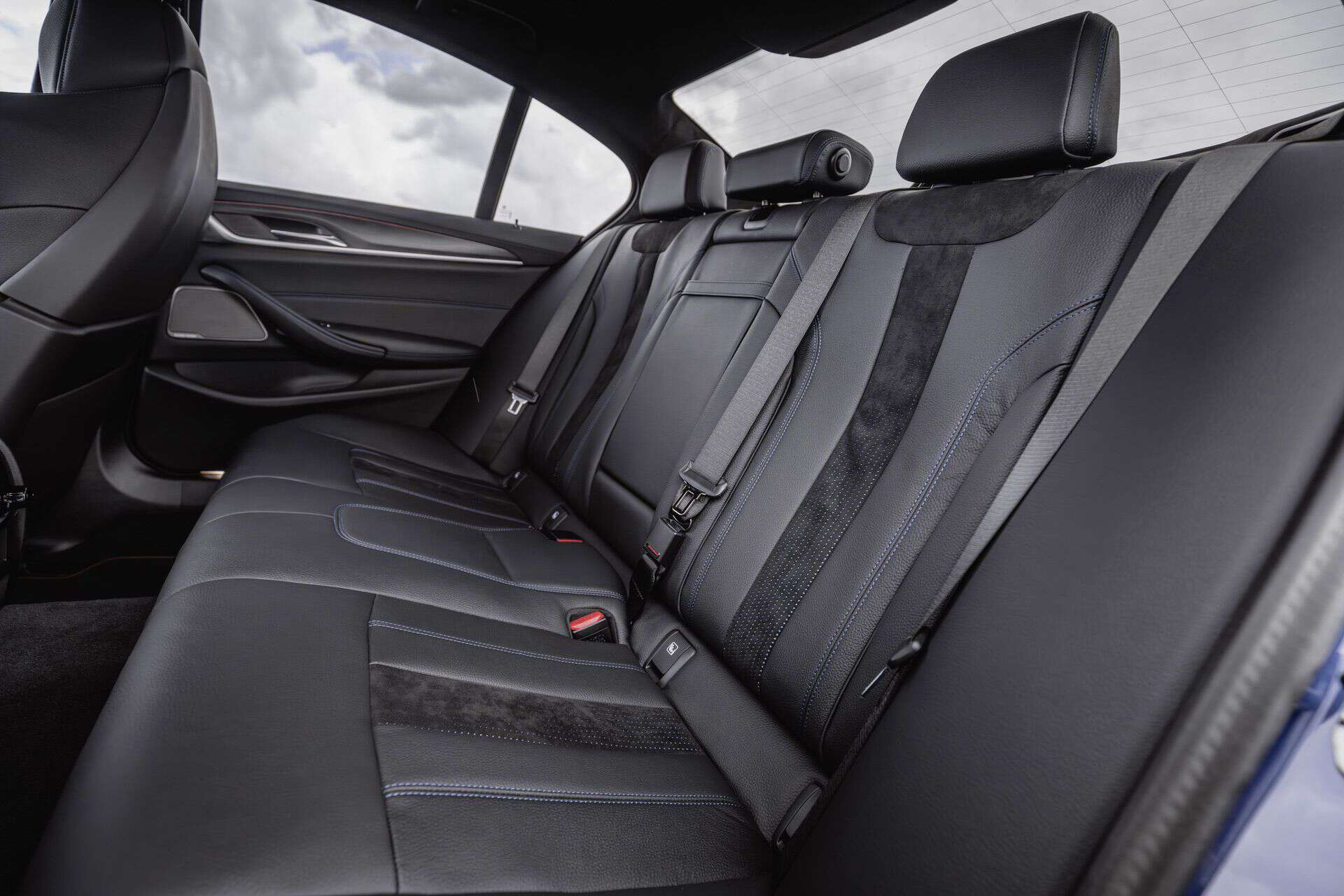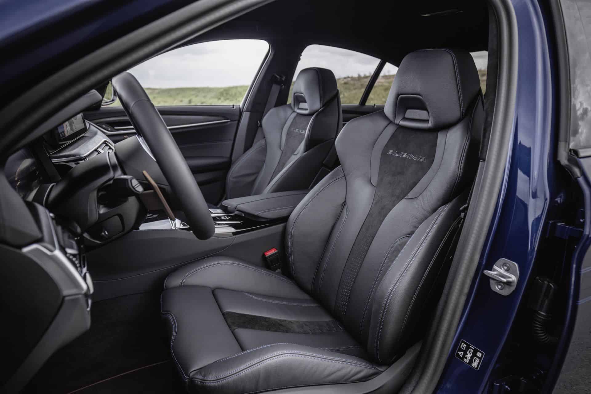 The full-leather interior reminds us of a time when the 5 Series used to have plenty of physical buttons. Most died with the G60 when BMW decided to integrate access to nearly all functions into the touchscreen. The seat upholstery seen on this B5 GT combines black Dakota leather with black Alcantara seat centers and blue contrasting stitching. As if that wasn’t special enough, there’s a “B5 GT” logo on the headrests while the seat centers have prominent “ALPINA” logos.