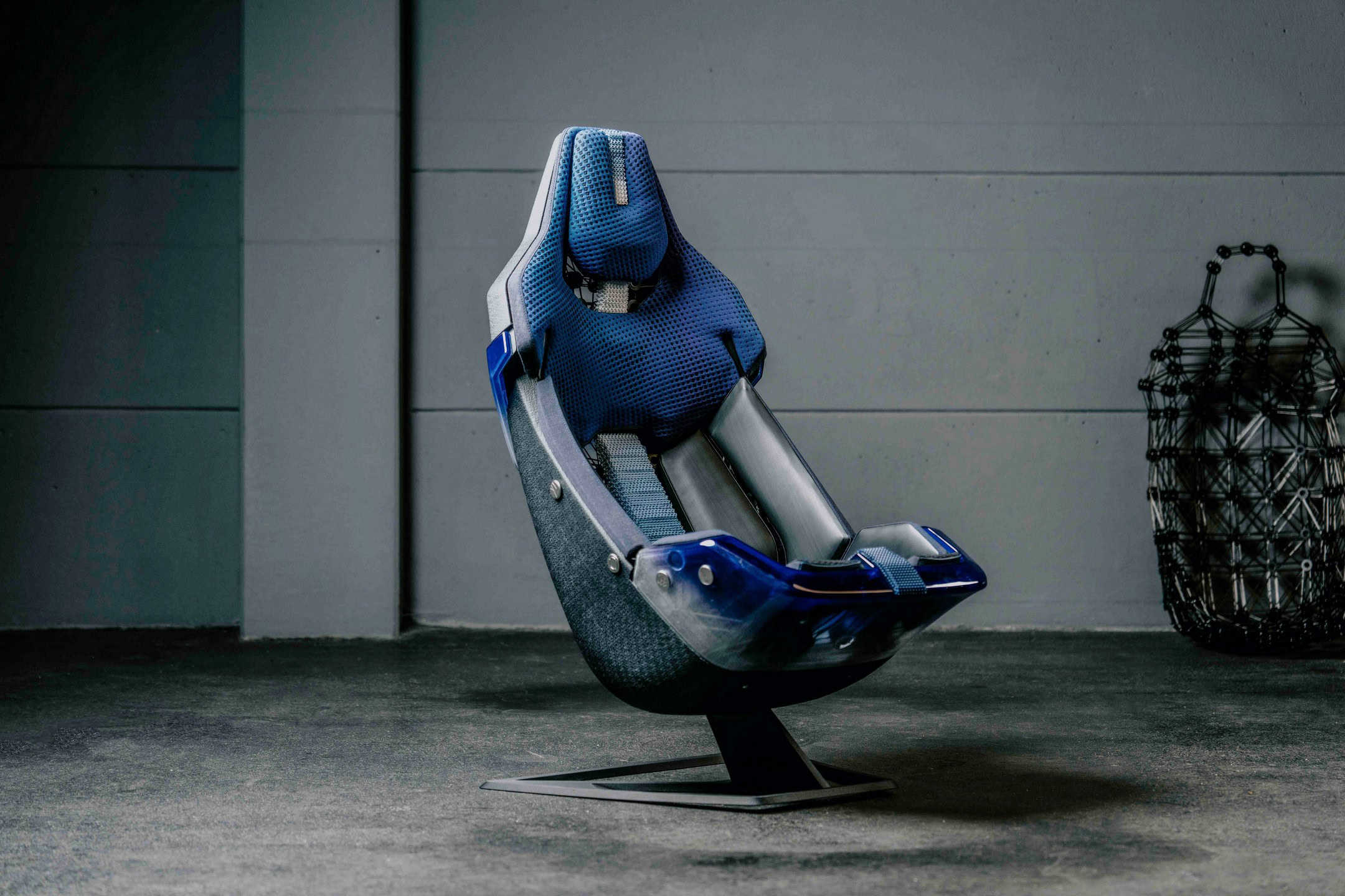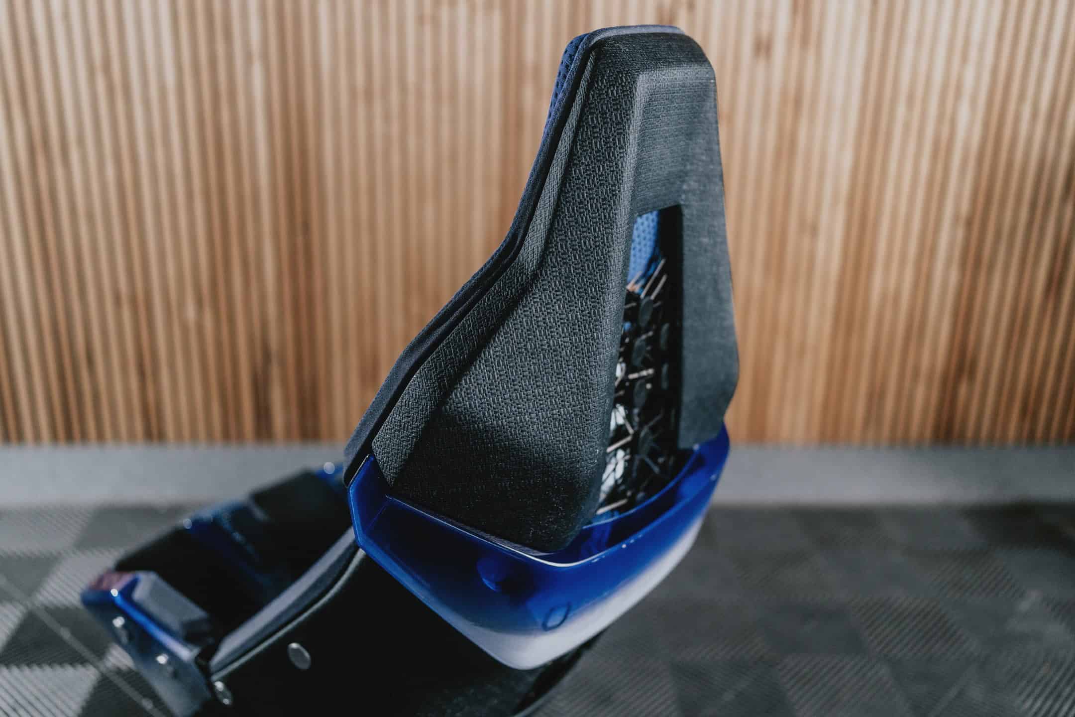 Compared to a regular carbon bucket seat found in a variety of M cars, this one has a 90% lower carbon footprint. Its eco credentials are represented by plant-based materials and the use of robotically-wound fiber composite seat support structures. Many of the bits and bobs that went into manufacturing the seat originate from recycled materials.