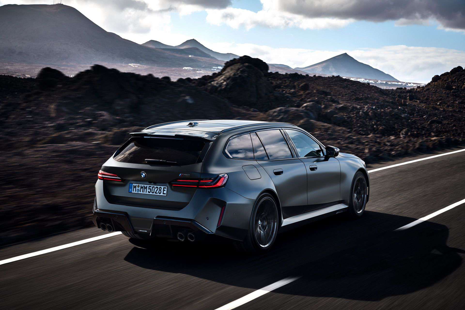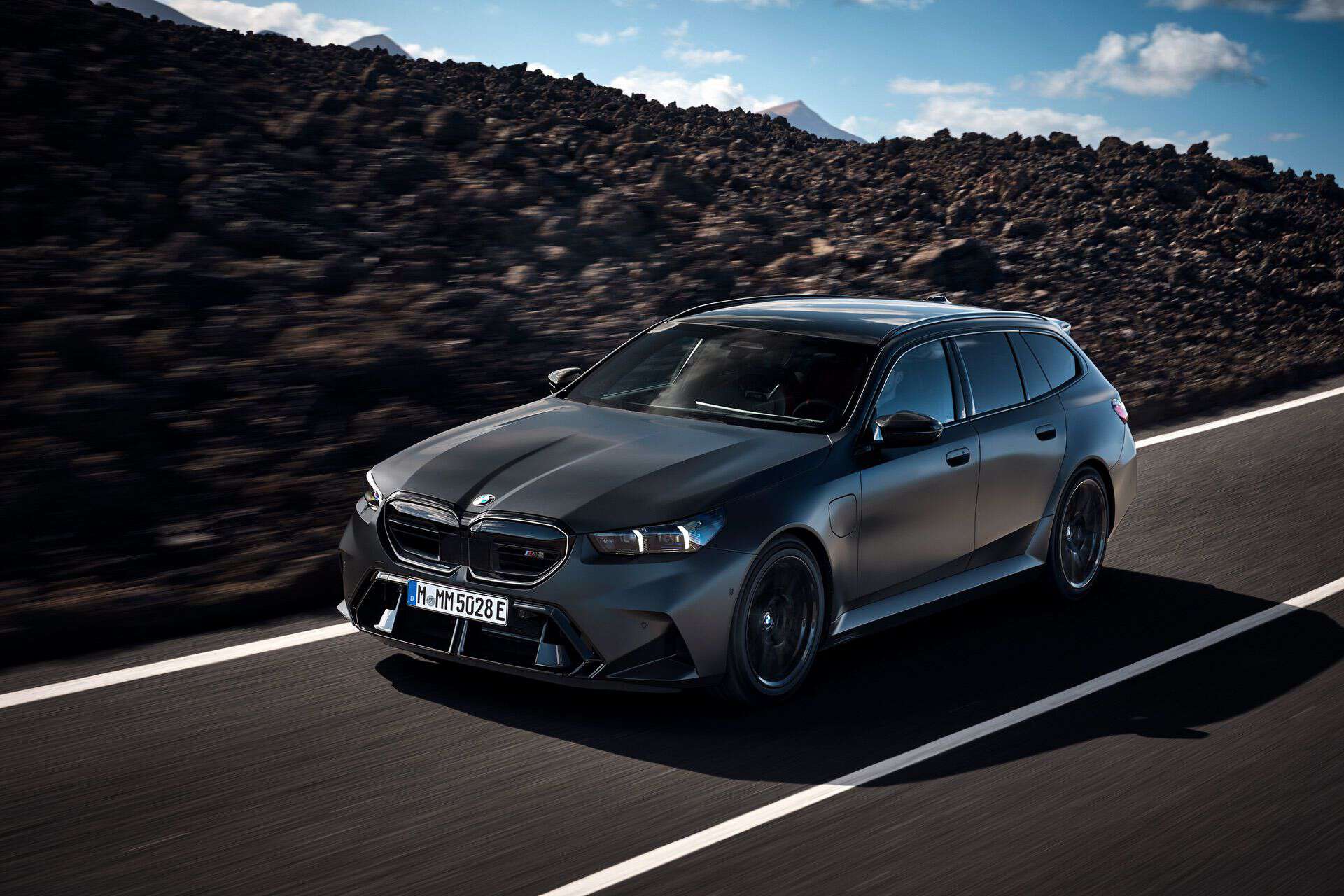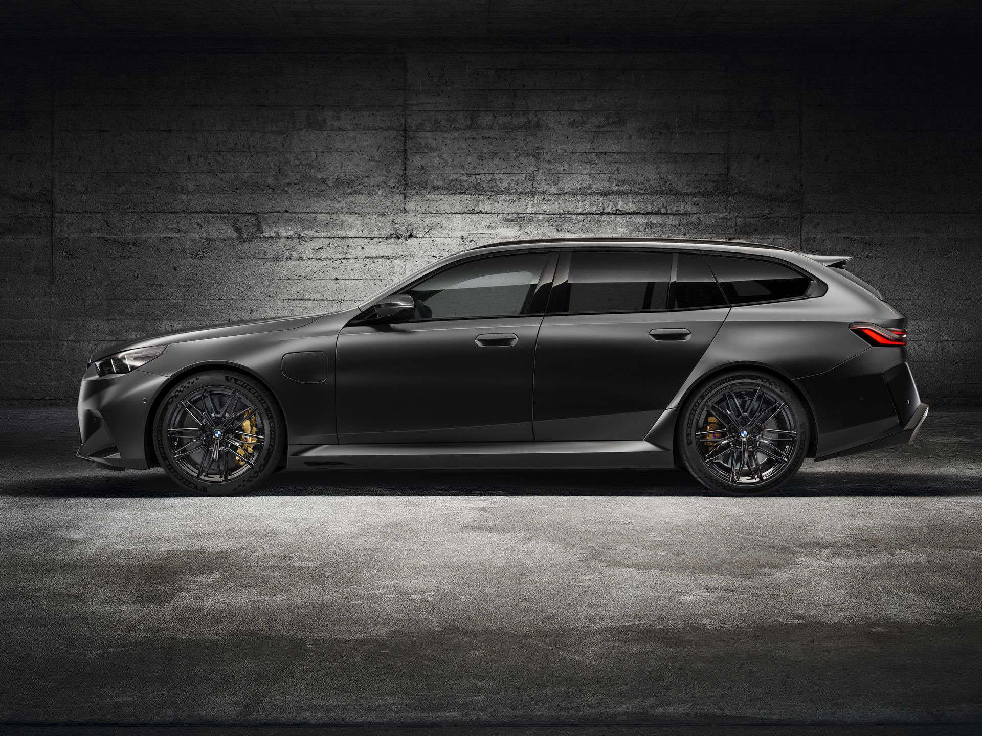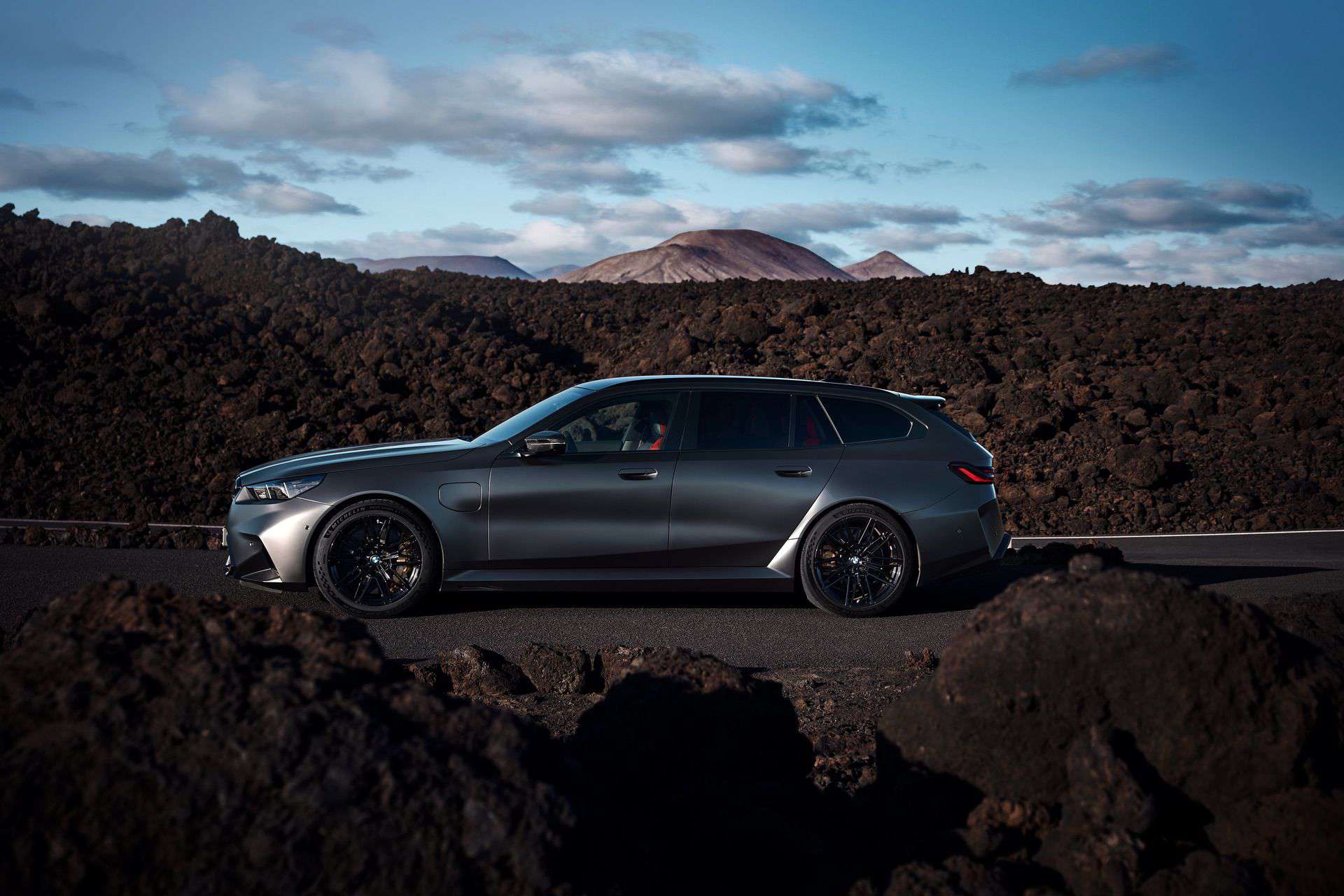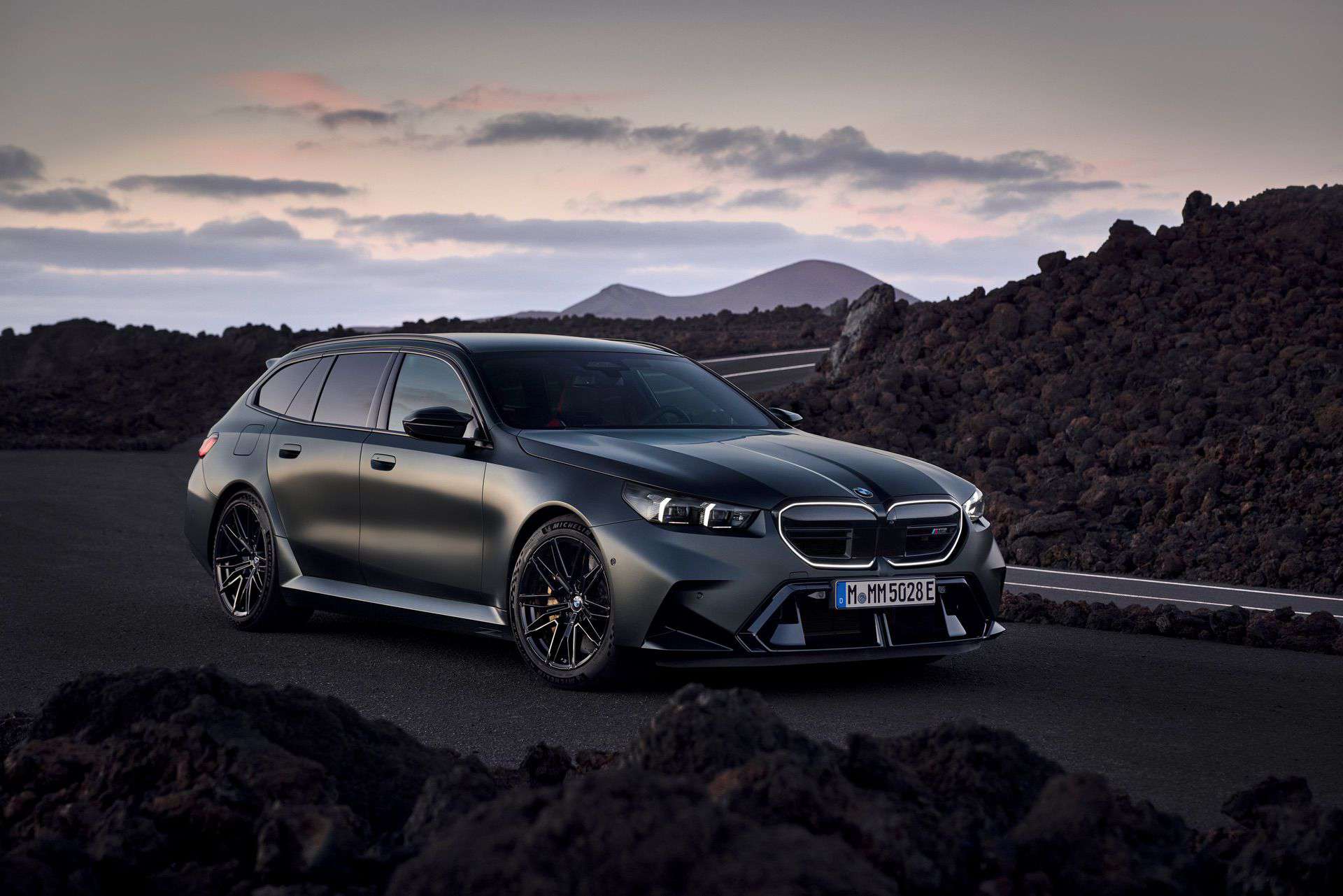 Let’s talk about customization options. BMW offers 10 body colors, but that number grows to 150 if we include Individual paints. Striking finishes such as Isle of Man Green, Marina Bay Blue, Frozen Deep Grey, and Storm Bay are confirmed. As for wheels, the Style 951M 20-inch front and 21-inch rear alloys have either a two-tone finish or an optional all-black look. The wheels come wrapped in 285/40 ZR20 front and 295/35 ZR21 rear high-performance tires. The M5 Touring also gets an optional wheel set that eschews traditional spokes in favor of a 3D-like effect.
