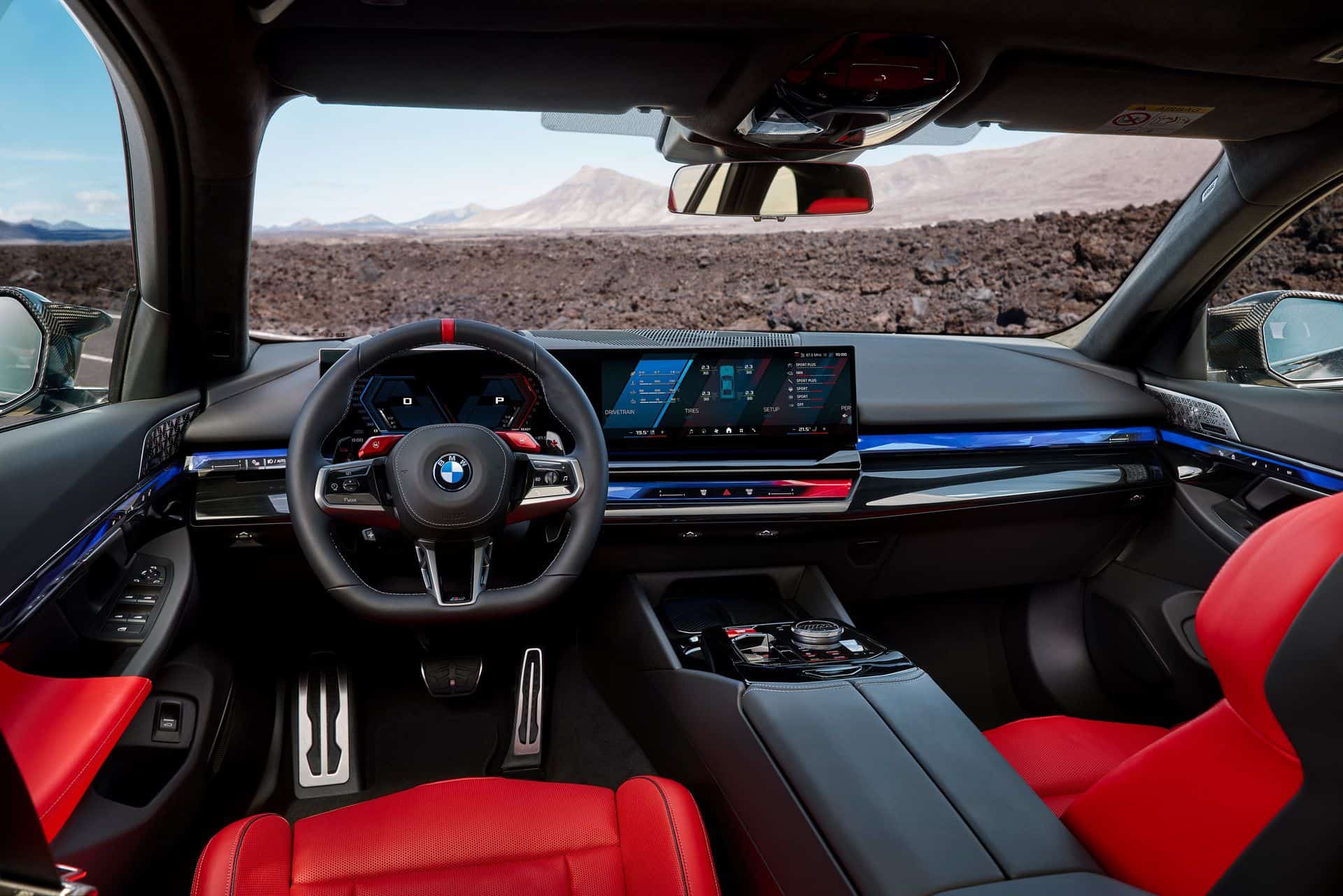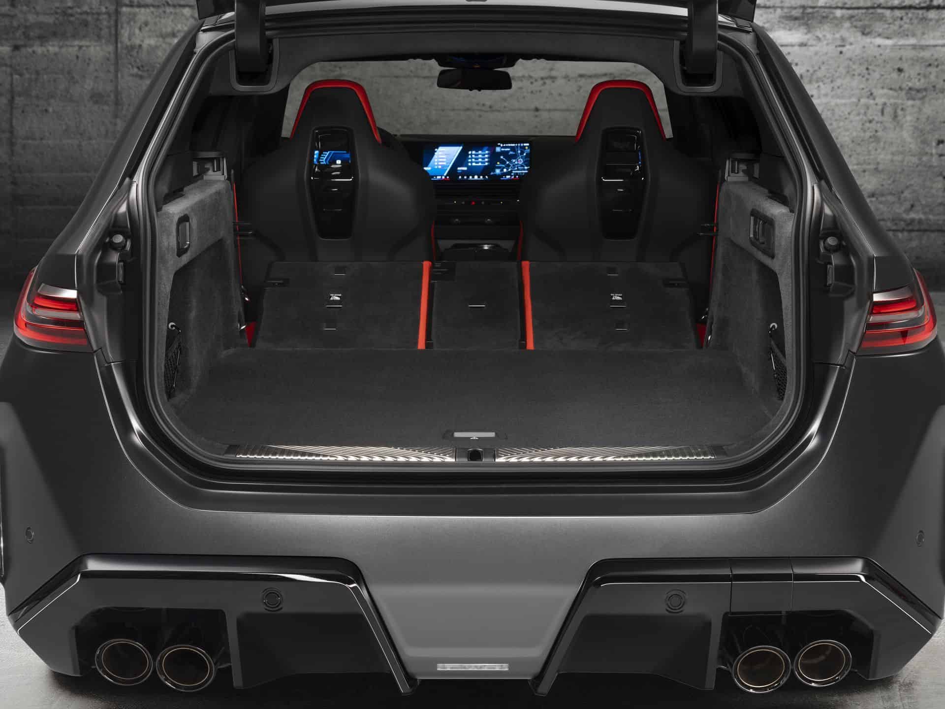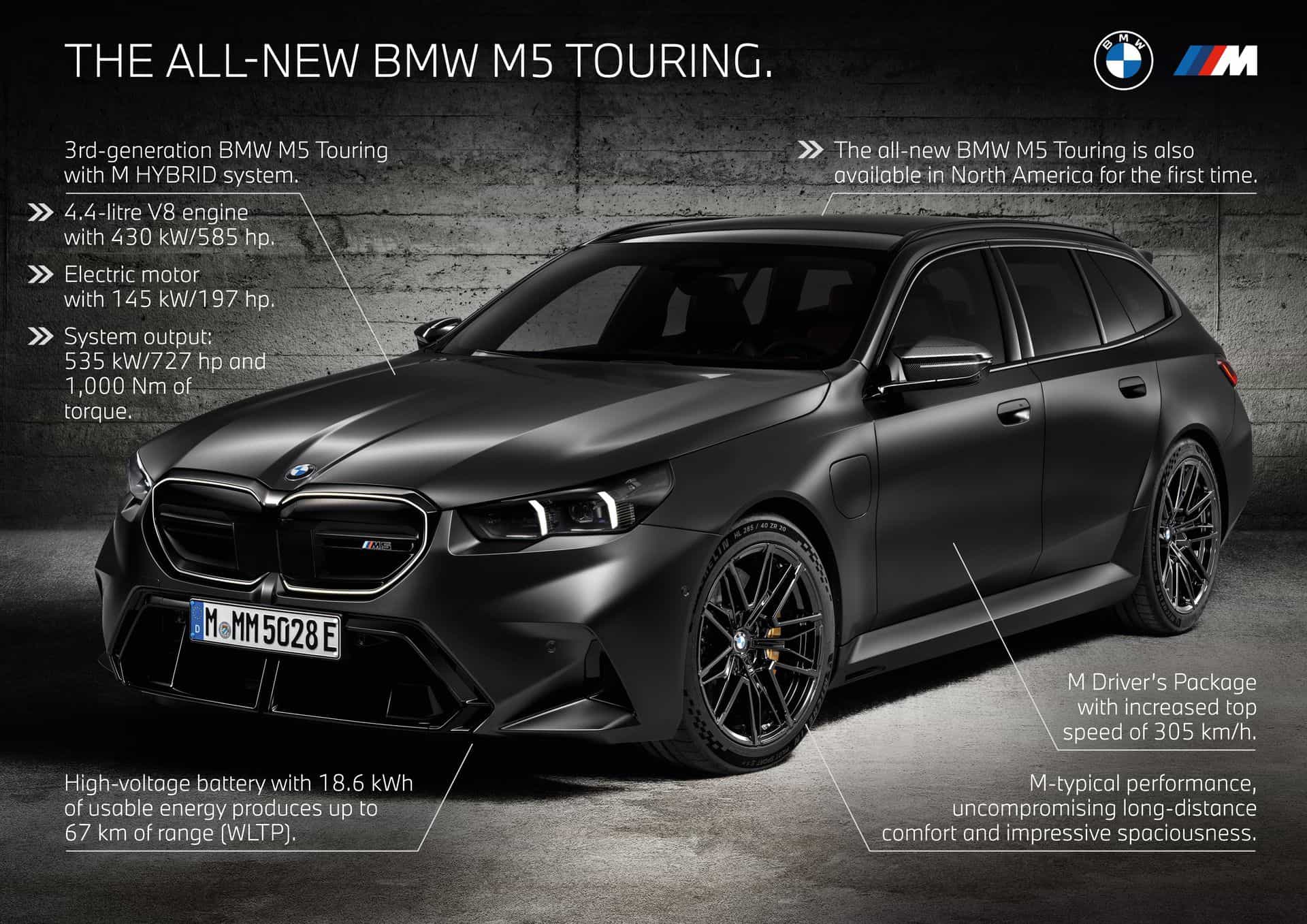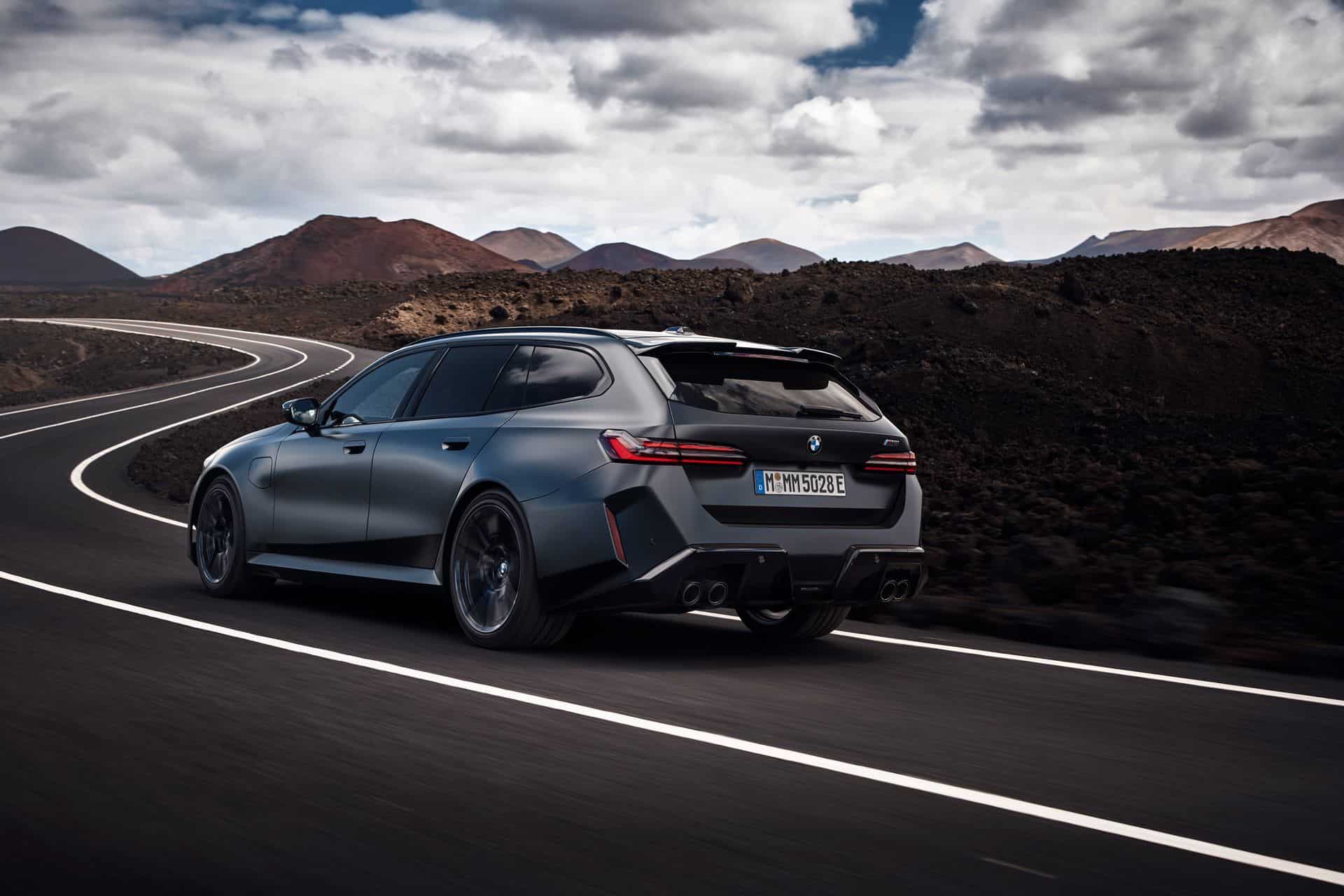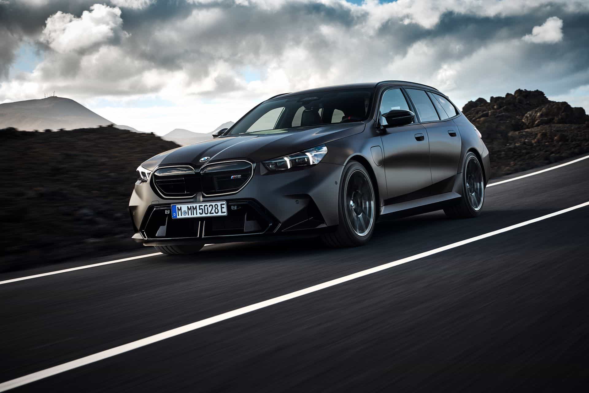 At the heart of the M5 Touring is the new S68 engine paired with an electric motor. The twin-turbo, 4.4-liter V8 produces a meaty 577 horsepower and 553 pound-feet (750 Newton-meters) of torque. Combined with the electric motor, the super wagon delivers a total system output of 717 hp (535 kW) and a mountain-moving 738 lb-ft (1,000 Nm).