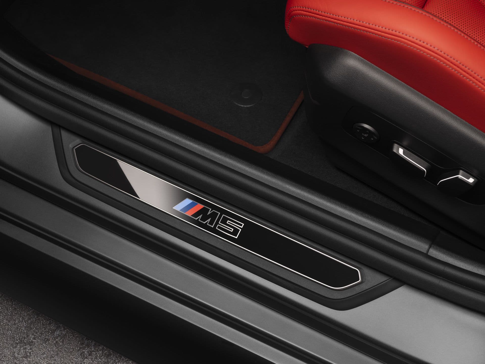 That flat-bottomed steering wheel of the new M5 Touring should look familiar by now, including its red 12 o’clock position. It can be optionally heated and comes bundled with gearshift paddles featuring a high-gloss black finish. The paddles come with red contours for the “+” and “-“ symbols. The iDrive 8.5 is standard, and so is the 18-speaker Bowers & Wilkins surround sound system.