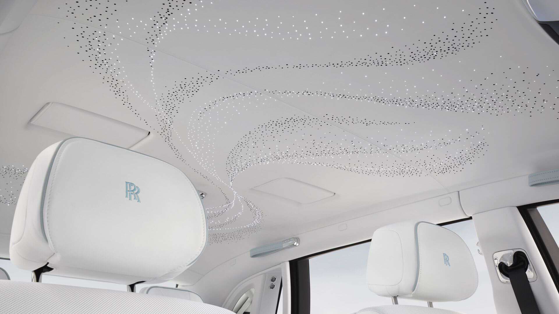 While Phantoms definitely have a certain presence on the outside, the inside is usually where things get seriously opulent. That’s certainly the case with the Phantom Scintilla. Designs and embroidery patterns inspired by the Spirit of Ecstasy adorn the cabin. Rolls says 36 sections of embroidery were constructed by Goodwood-based artisans, stitched together using more than 633,000 stitches and requiring a full forty hours to complete for each car.