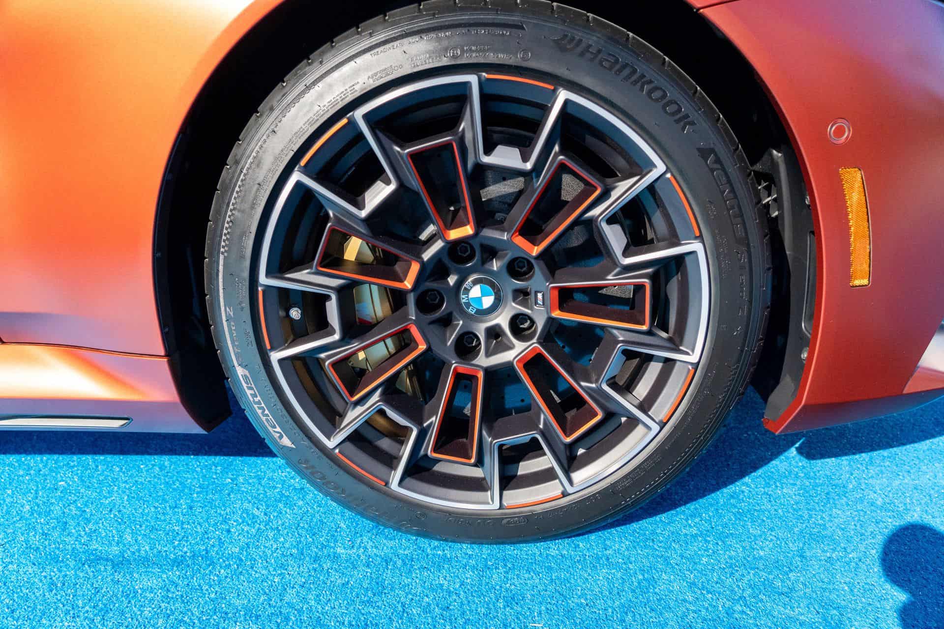 This exclusive model stands out with its BMW Individual Frozen Orange Metallic paint, inspired by the vivid hues of a Pebble Beach sunset. The paint was applied weeks in advance due to its scheduled discontinuation before M5 production began. The car also features hand-painted orange accents on its M Dual-Spoke Bicolor wheels, which are paired with M Carbon Ceramic brakes boasting Matte Gold calipers. The tech-forward interior is finished in a unique combination of Kyalami Orange and Silverstone Extended Merino leather, a color scheme crafted specifically for this model, with the Pebble Beach Concours d’Elegance logo and #1/1 inscriptions adorning the headrests and door sills.