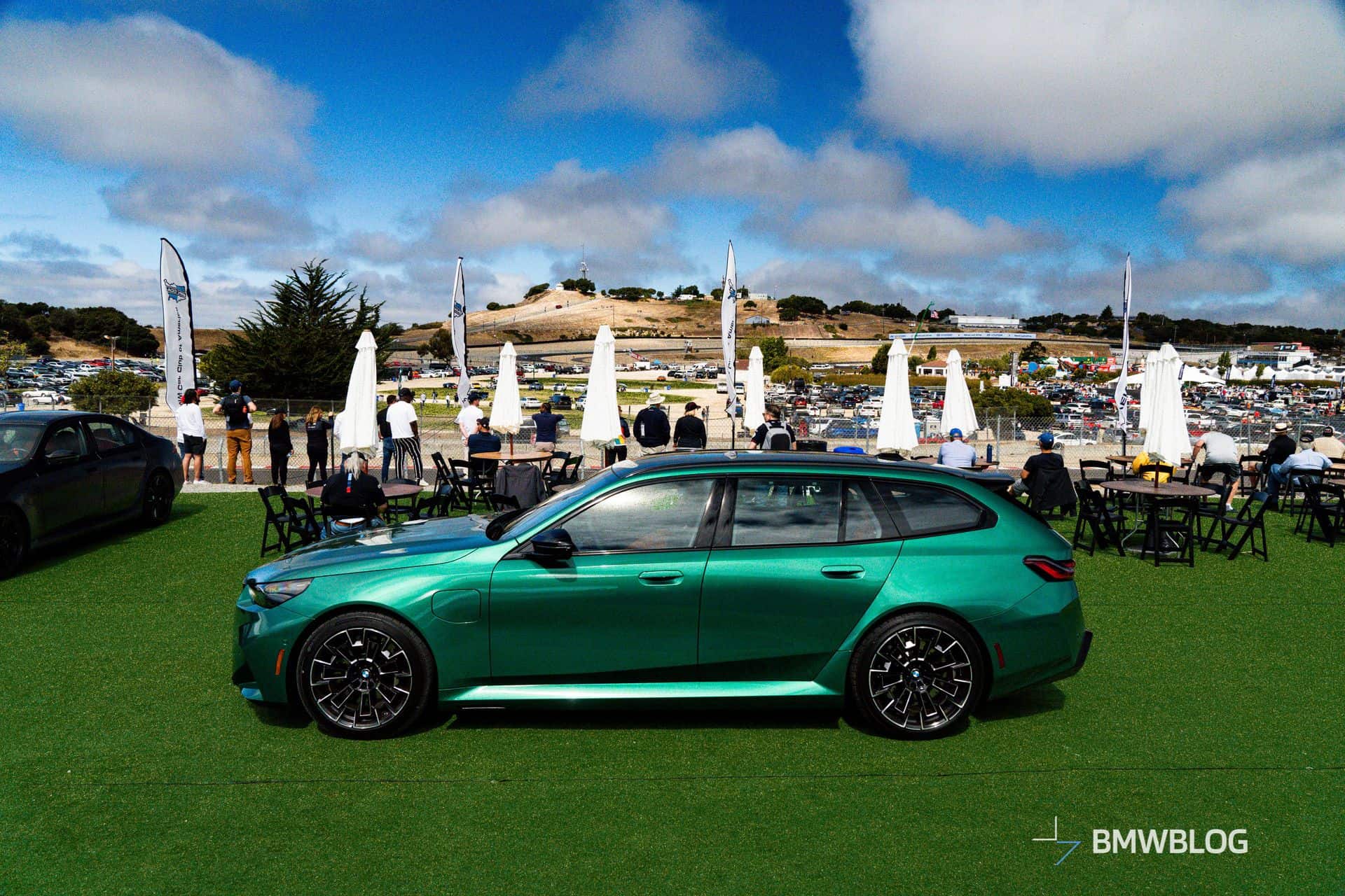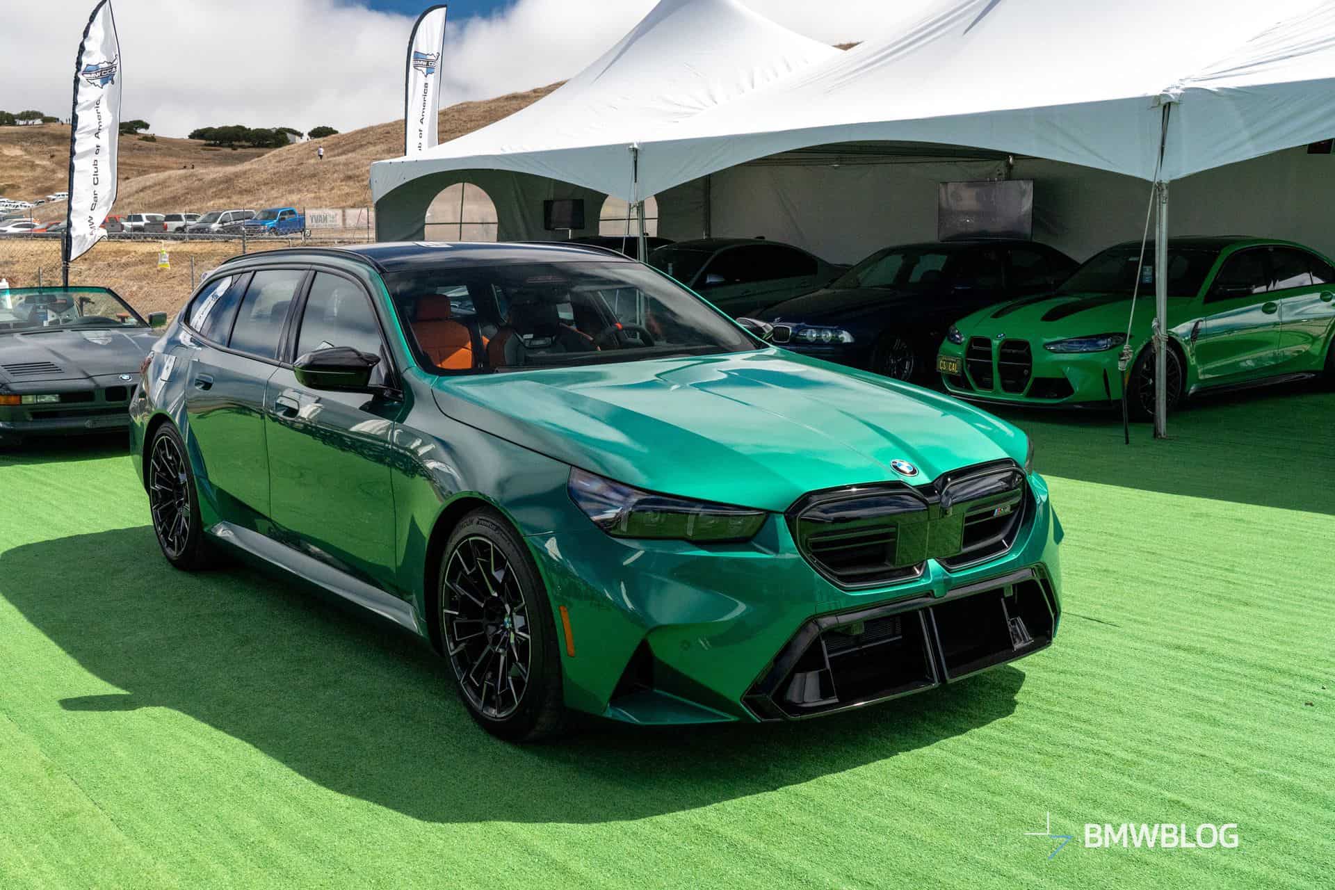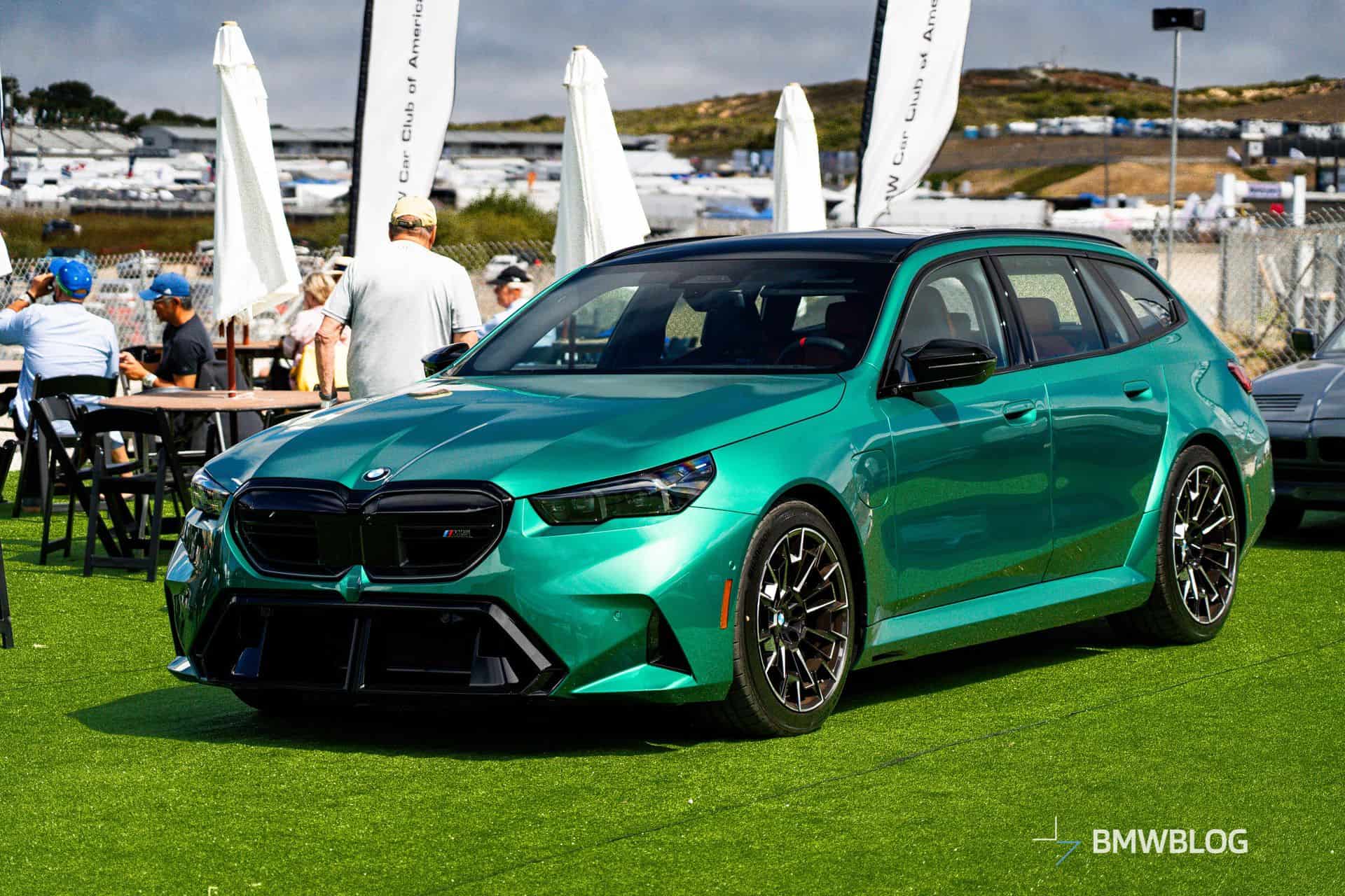 The M5 Touring’s reveal had the car hustling all over California this weekend. After its first formal introduction to the public at Pebble Beach, the monster wagon  – and its sedan counterpart – got hustled inland over to Laguna Seca. We, naturally, got up close and personal with the two to see what other details we could scope out.