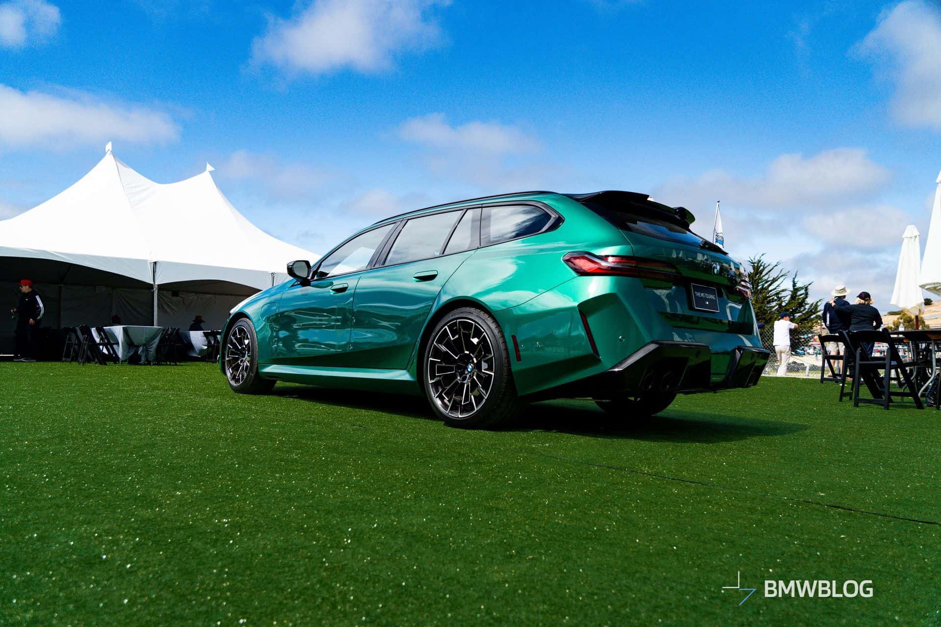 We get a good look at the Touring’s metallic paint. It wears Isle of Man Green metallic, which is quickly becoming a fan favorite. As it did in the leaked photos we saw, the Touring also wears 20- and 21-inch Style 952 M wheels. Other high-dollar options like the Carbon Package and ceramic brakes seem to missing, although we’re not sure the Touring will have the same options and packaging as the Sedan.