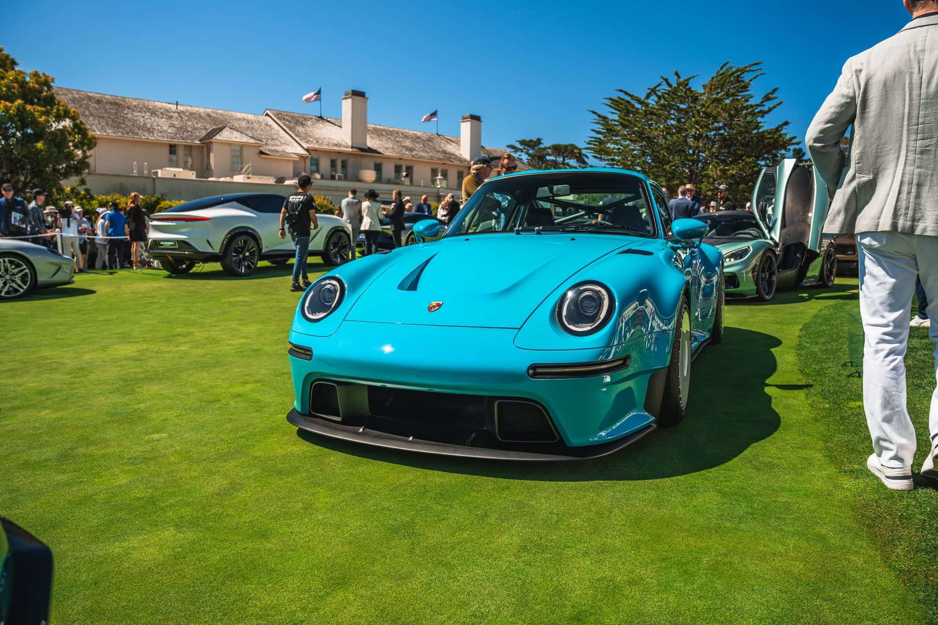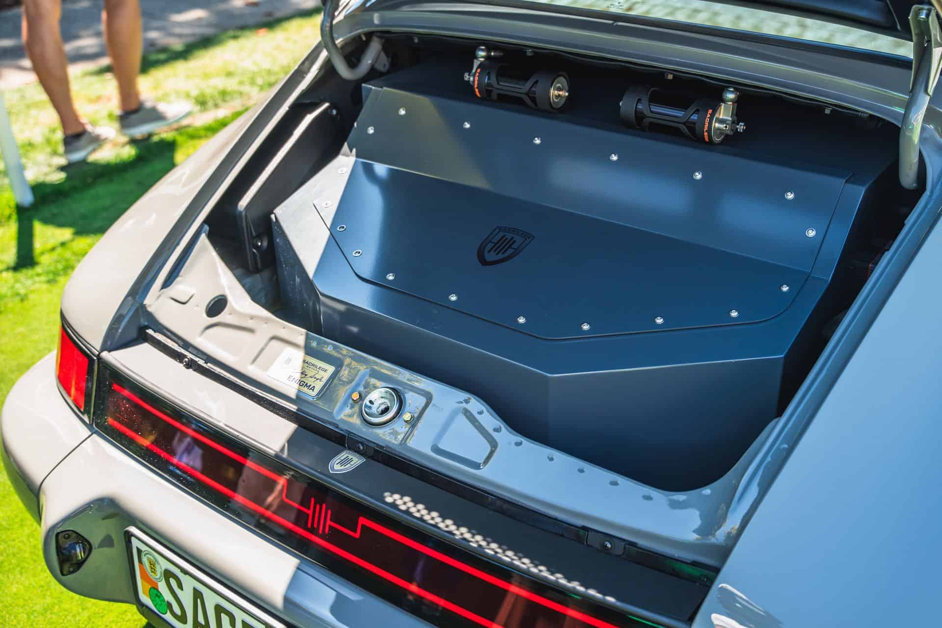 What’s any car show without a couple of Porsche 911 reimaginations? While Singer was absent, we got a good look at the Guntherworks GWR, a 993-based project wearing what appears to be Miami Blue paint. A 4.0-liter flat-six makes over 500 horsepower and revs to a wicked 9,000 rpm. Sacrilege Motors went a different route, electrifying their Arabian Grey painted 964. Dubbed “Enigma,” it also makes 500-some horsepower.