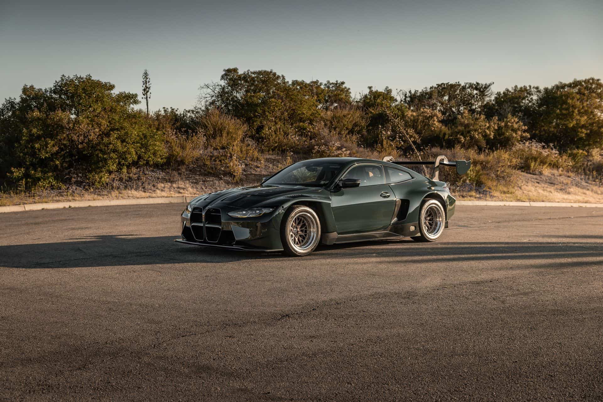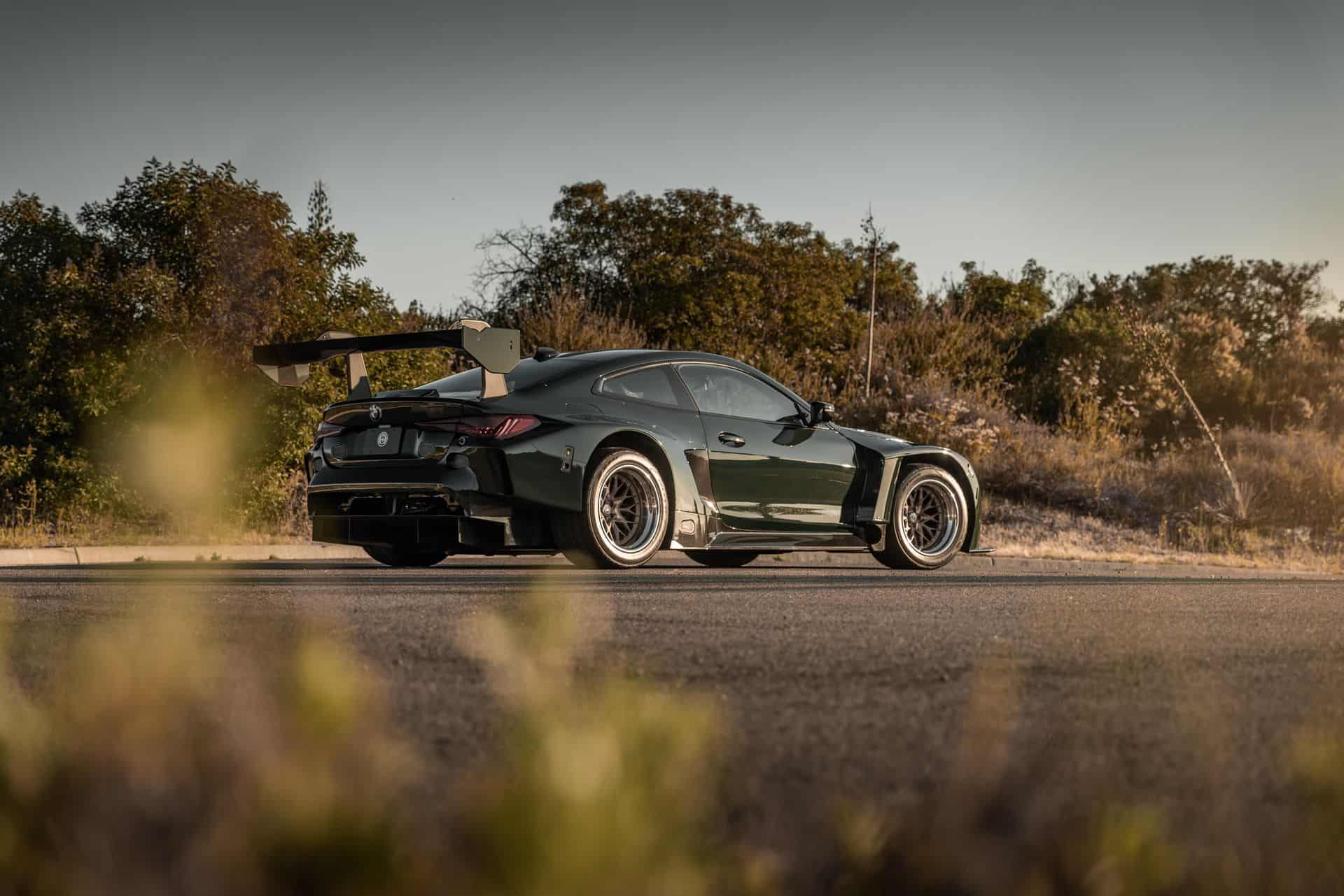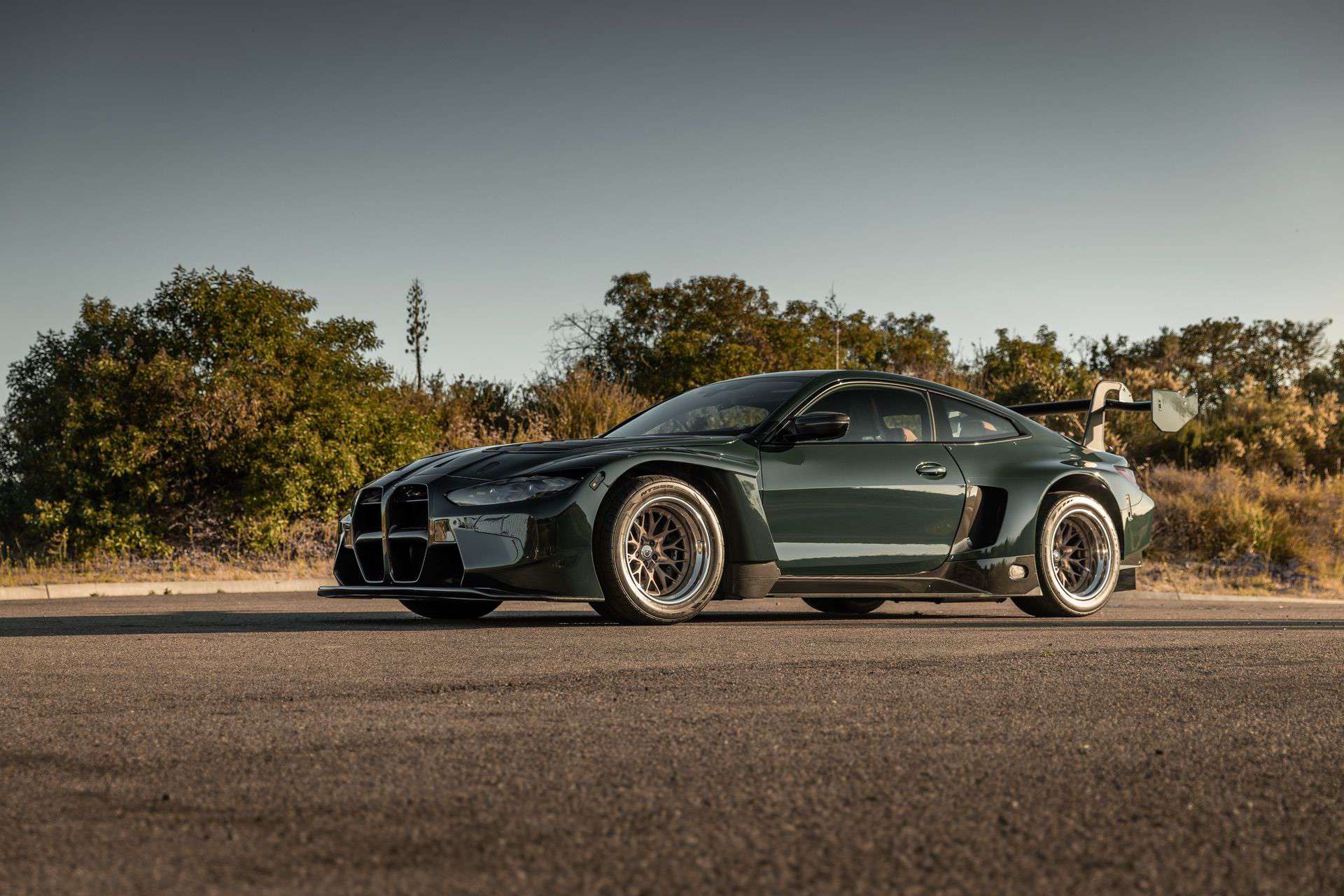 The British Racing Green finish is boldly contrasted by the Frozen Stone Champagne 520 HRE wheels. The idea behind this M4 Competition was to create a GT3-esque performance machine for the road. It does look more aggressive than a regular G82, thanks to this custom widebody. The car has been tastefully customized and it looks ready for the track.