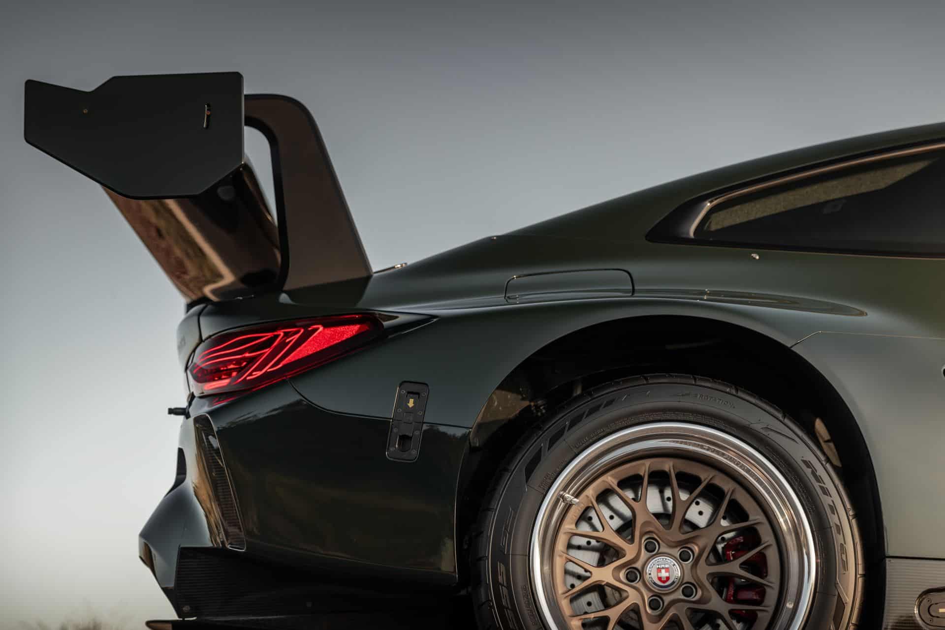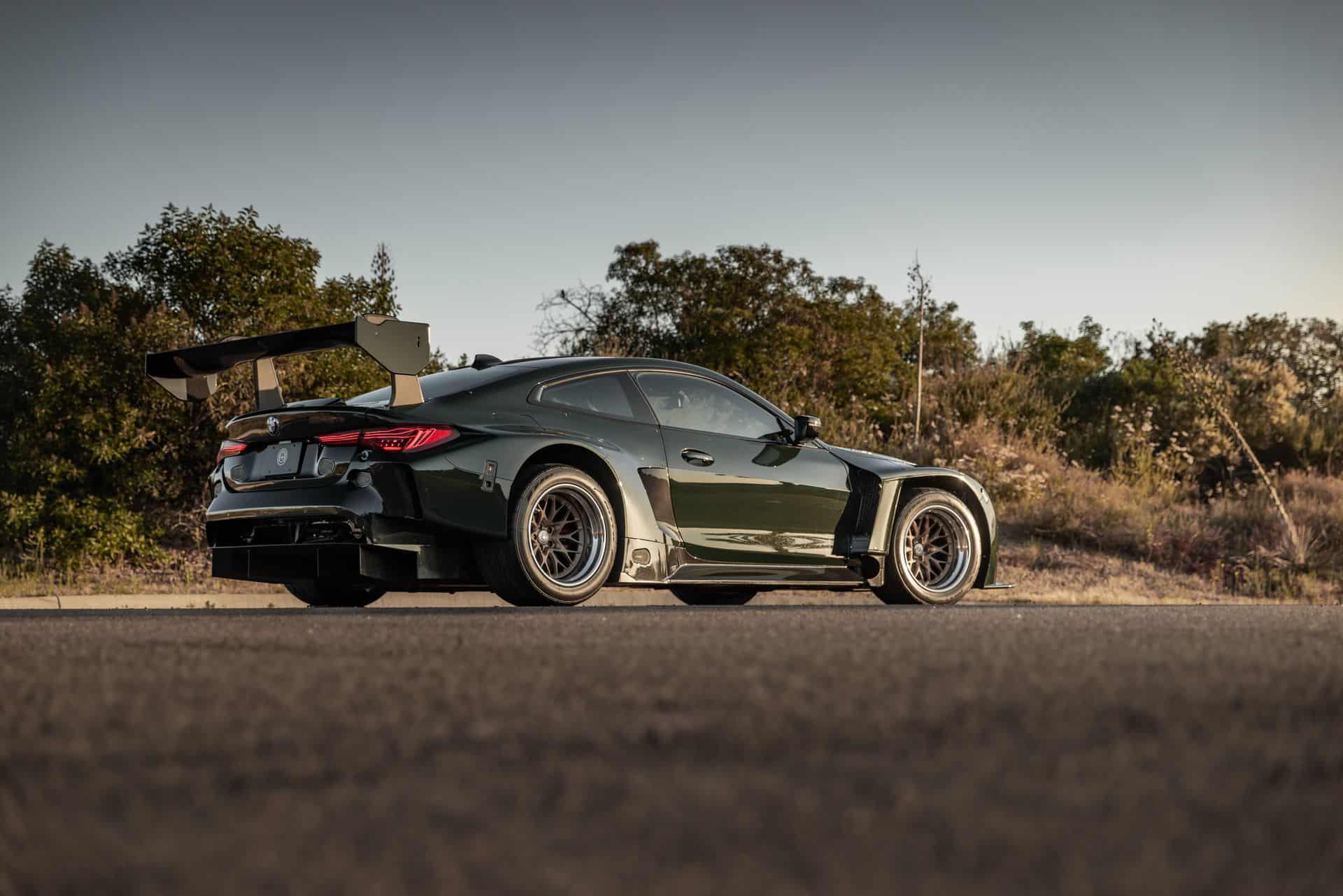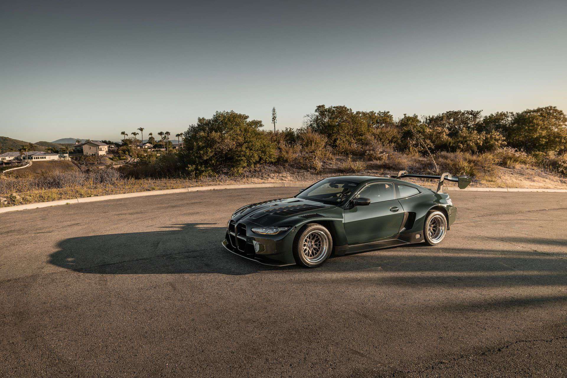 The British Racing Green finish is boldly contrasted by the Frozen Stone Champagne 520 HRE wheels. The idea behind this M4 Competition was to create a GT3-esque performance machine for the road. It does look more aggressive than a regular G82, thanks to this custom widebody. The car has been tastefully customized and it looks ready for the track.