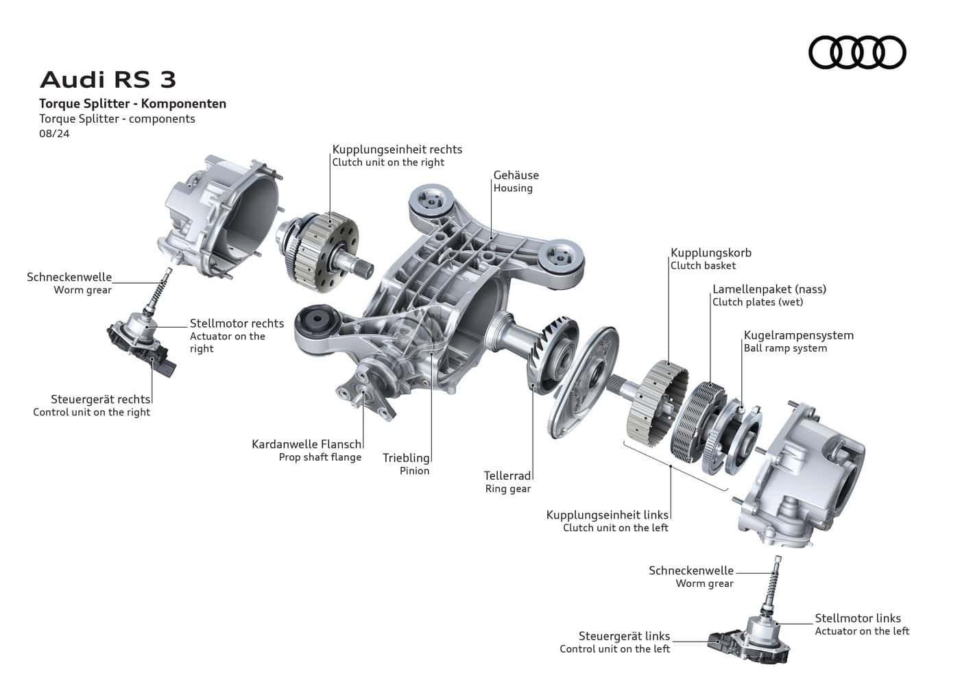 For 2025, the RS3 also gets grippier standard tires but enthusiasts can still opt for the Pirelli P Zero Trofeo R semi-slicks. Additional tweaks to the brake torque vectoring system diminish understeer, or so we’re being told. The adaptive dampers react even better now following a recalibration, while the torque splitter has been improved as well.