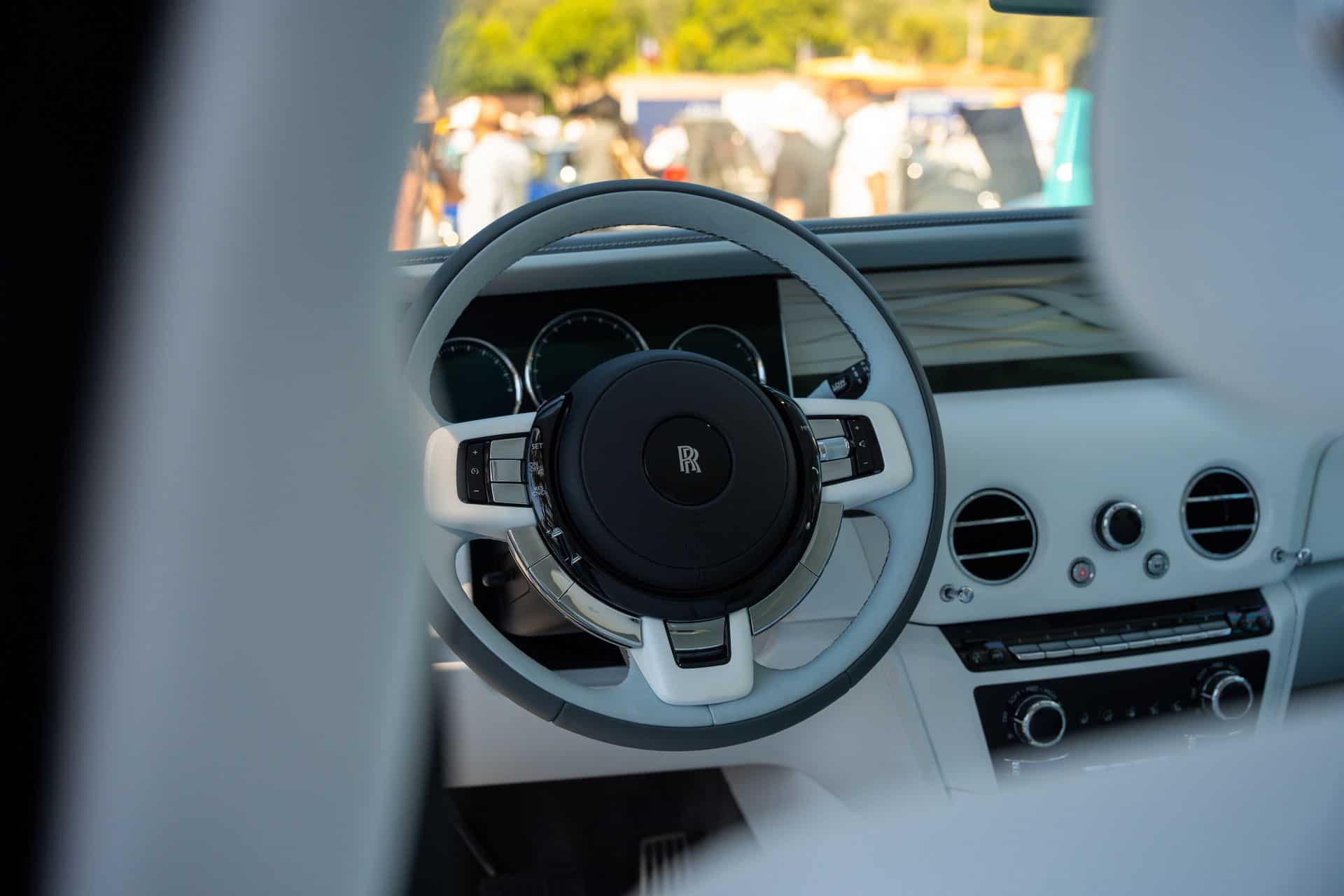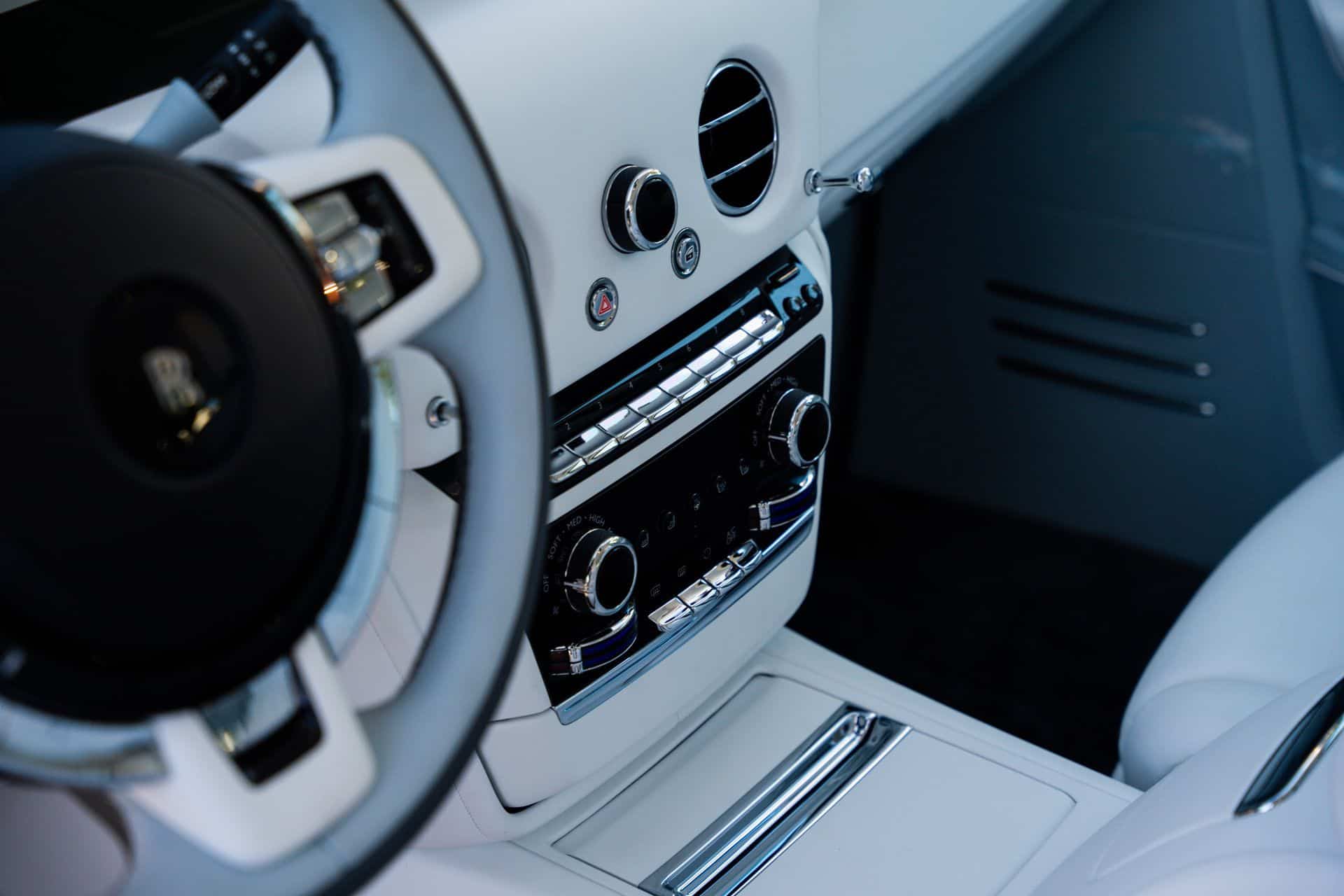 The exterior of the Phantom Scintilla features a two-tone Andalusian White and Thracian Blue finish, symbolizing the Mediterranean waters that inspired the original Spirit of Ecstasy. Rolls-Royce has pushed boundaries with new materials, introducing a ceramic finish on the Spirit of Ecstasy mascot, which emulates the translucence of fine marble.