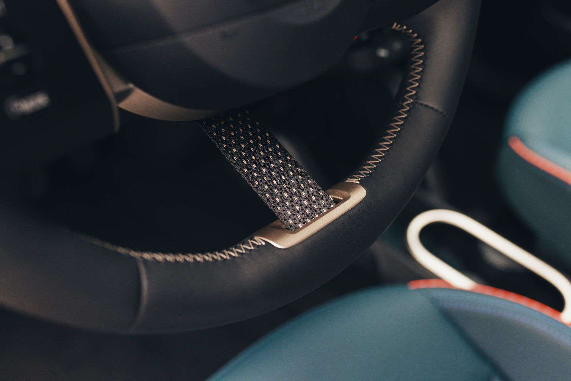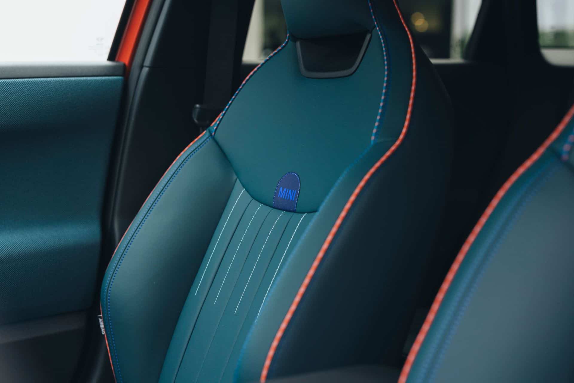 Inside, the Aceman borrows heavily from the Cooper’s interior, with the centerpiece being a 9.4-inch circular OLED screen that serves as the control hub for MINI’s version of the iDrive 9 infotainment system. Instead of a traditional digital instrument cluster, the Aceman offers an optional head-up display. The cabin is a vibrant mix of bold colors, intricate ambient lighting, and sustainable materials, including recycled polyester and synthetic leather. Real leather is not available, but the multi-colored knitted textile with red stitching adds a touch of flair to the interior.