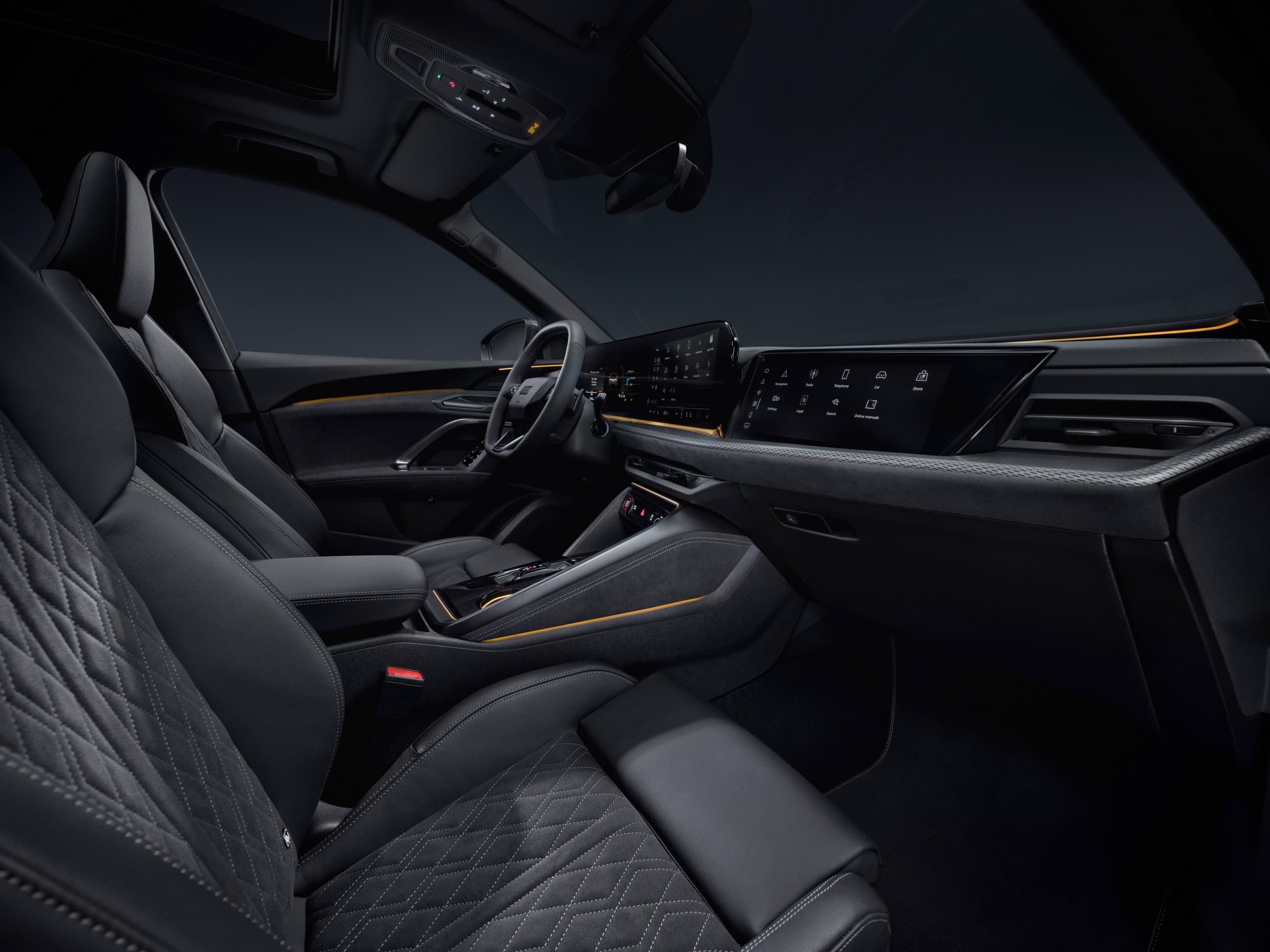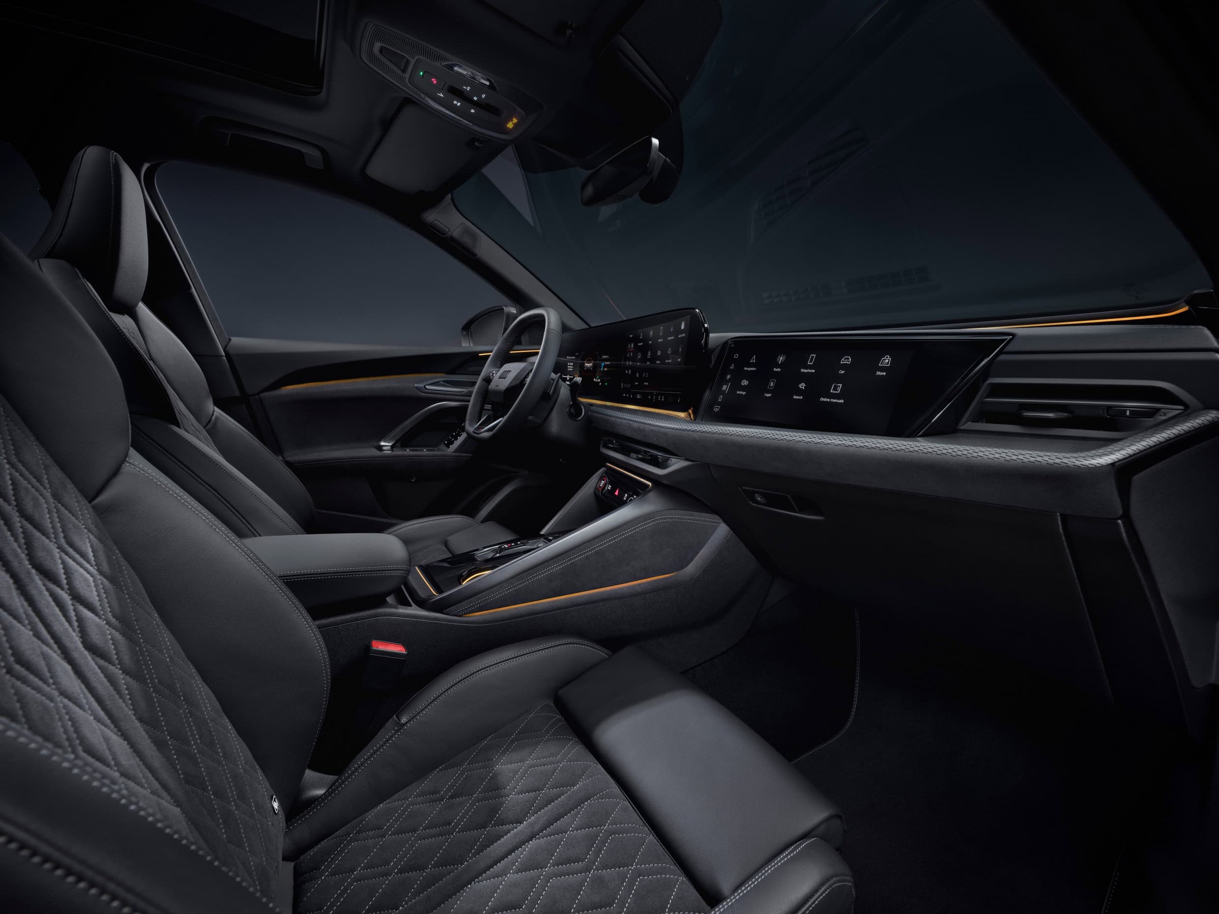 Step inside and the first thing you’ll notice will be the generous screen real estate. There’s an 11.9-inch digital instrument cluster, a 14.5-inch touchscreen serving as the infotainment, plus an optional 10.9-inch display for the passenger. Without that third screen, there’s just a simple piece of trim sticking out from the dashboard. Let’s just say it won’t look great. Much like BMW, Audi is reducing the number of physical buttons it puts inside the newest models.
