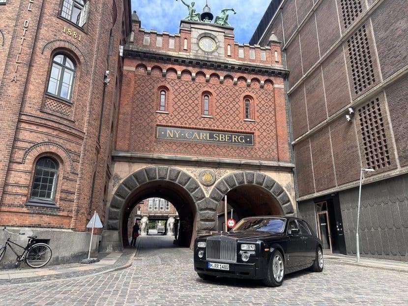 The brisk pace of the V12 colossus abruptly ends beyond the Danish border, with the speedometer needle showing less enthusiasm than it had an hour before. The attention that the Rolls-Royce Phantom VII, available from 2003, commands here on the roads, in parking lots, and at filling stations is noticeably greater than in Germany. The E45 takes us southeast via Odense and Ringsted to Copenhagen. Here, in the bike-friendly Danish capital, not just the hotel parking garage in the city center feels cramped—the mighty Rolls-Royce takes up two parking spaces in a row, just as it did near Potsdam.