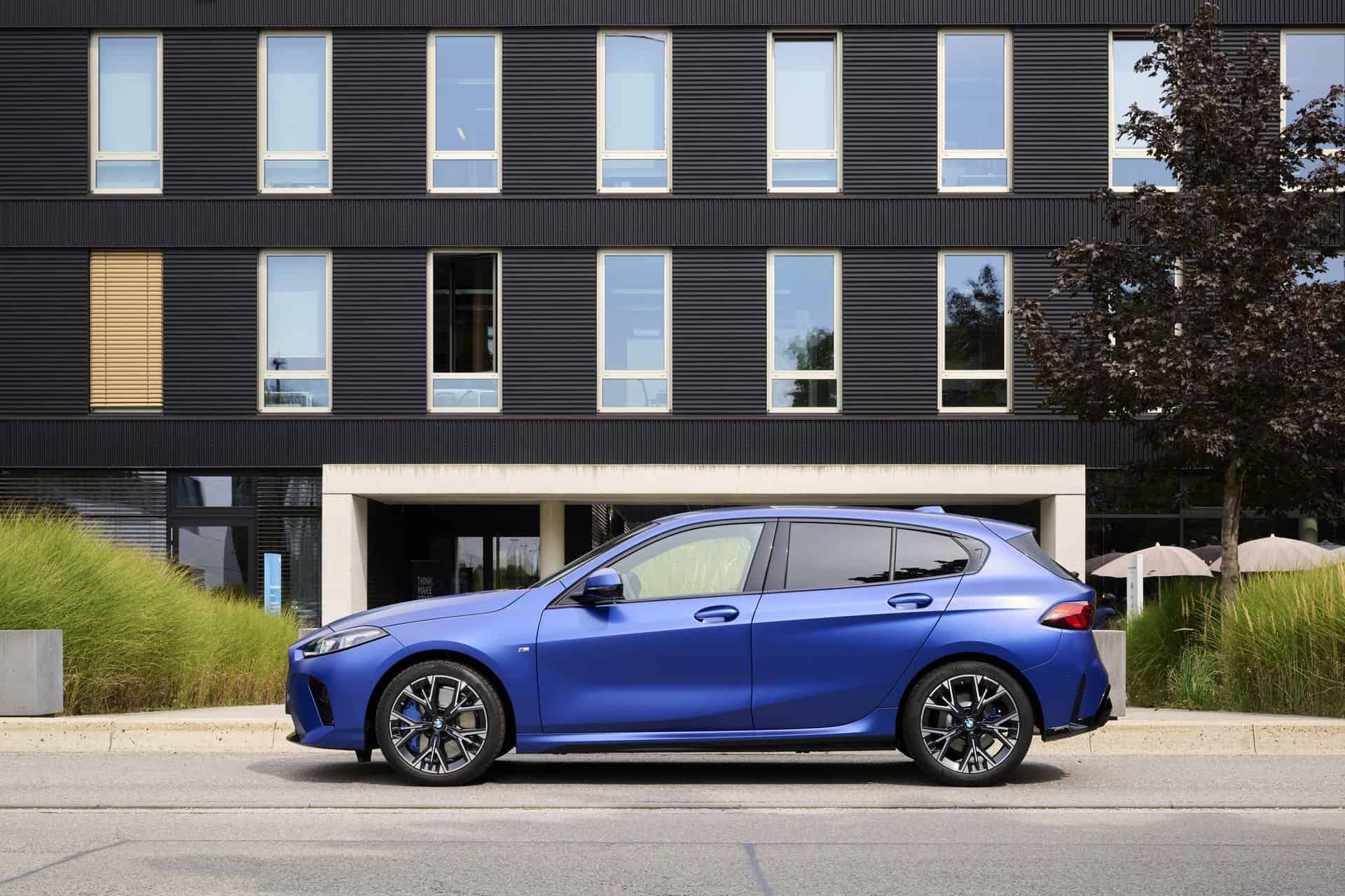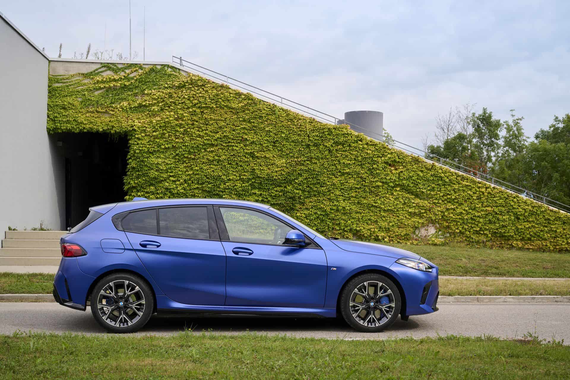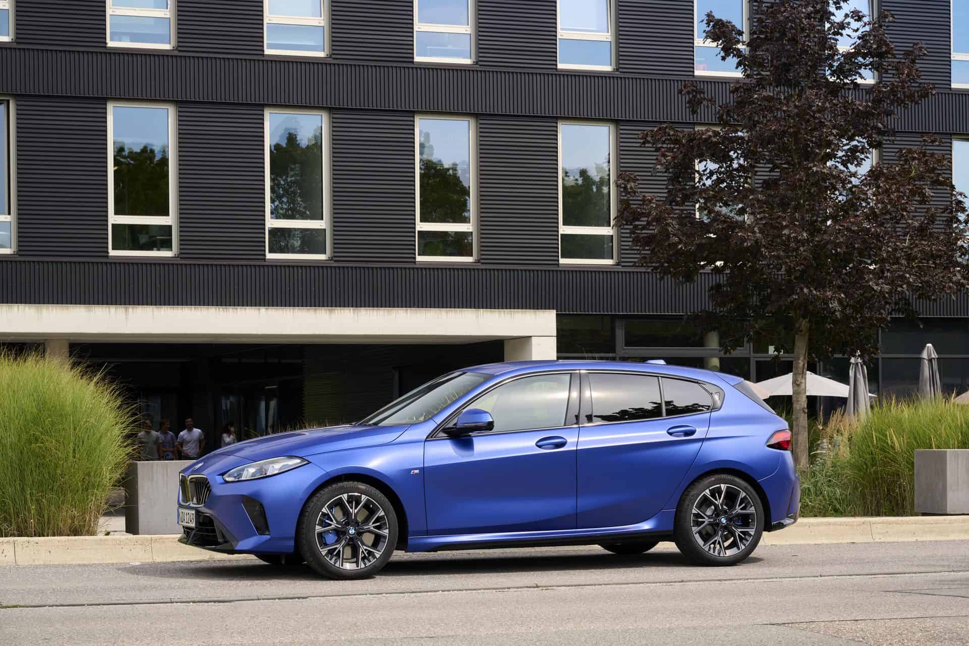 BMW has been offering Individual paint options for the 1 Series for about three years. You’ll be glad to hear the transition from the F40 to the F70 isn’t changing that. The compact five-door hatchback can be ordered with fancy colors, even this lowly 120. It’s a base three-cylinder version with the M Sport Package finished in Frozen Portimao Blue.