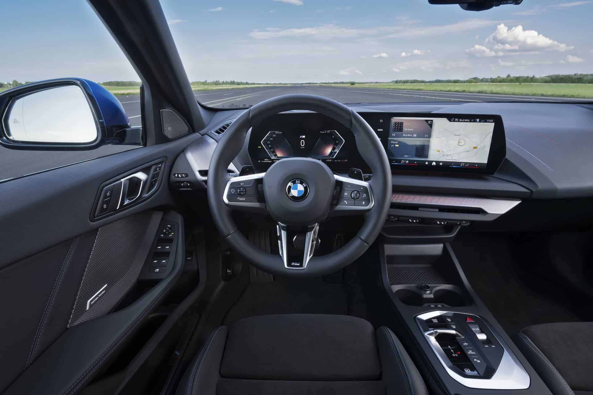 All flavors of the 1er get that small gear selector for the seven-speed, dual-clutch automatic transmission. Don’t go looking for the iDrive controller since it’s gone as well. While the exterior gives the impression of a Life Cycle Impulse for the previous model with X2-esque taillights, the cabin is all-new. It’s the latest BMW to embrace minimalism by getting rid of most physical controls.