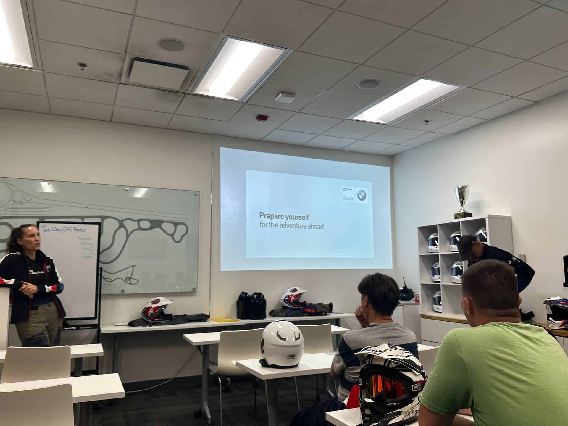 Day one began at 8:00am for check-in and orientation, and also to meet our instructors: Ricardo Rodriguez (BMW Motorrad Chief Instructor), Wendy Naessens (our lead instructor and wearer of multiple hats at the Performance Center), and the abovementioned Terry Smith (who performed most of our demonstrations). Samantha “Sam” Lane also served in an essential support role throughout the class (and whose guidance ultimately saved my bacon more than once).