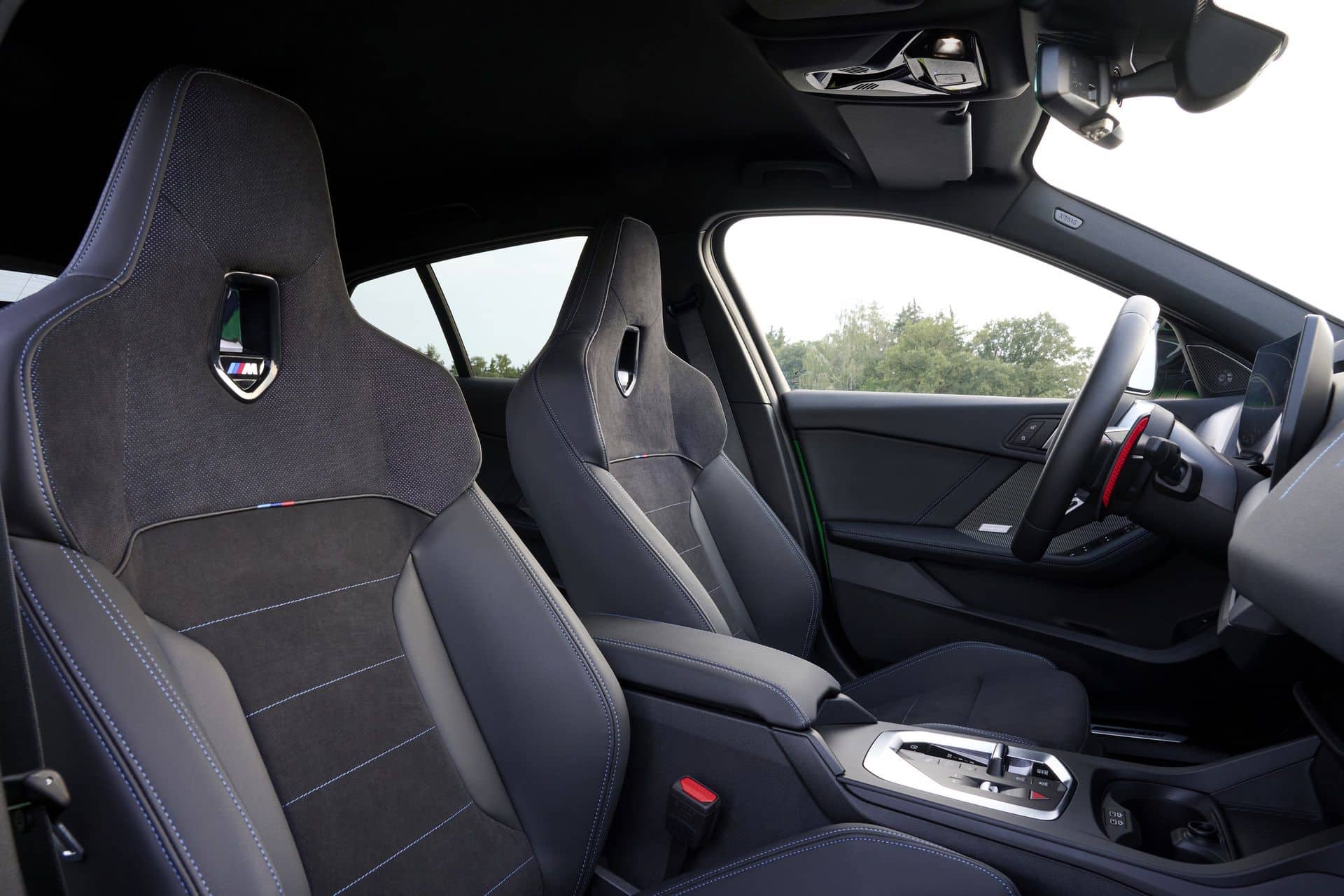The M Sport seats, finished in Alcantara, offer excellent support and comfort even after hours of driving. For those looking for an eco-friendly option, BMW offers a leather-free seat option called “Veganza.” The spaciousness of the interior remains typical for a 1 Series, meaning it’s not a large car, but it offers enough room for a couple of suitcases and some backseat passengers—though taller occupants may find rear legroom a bit tight.