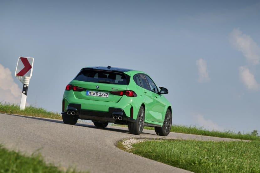The side view has not changed much, if at all. It has a similar shape as the F40 generation, but it gains things like rocker panels and a number 1 imprinted in the kink. The 19-inch forged wheels, part of the optional M Technology Package, complete the hot hatch stance, along with M sport brakes, which can be specced in gray, red, black, or blue calipers.