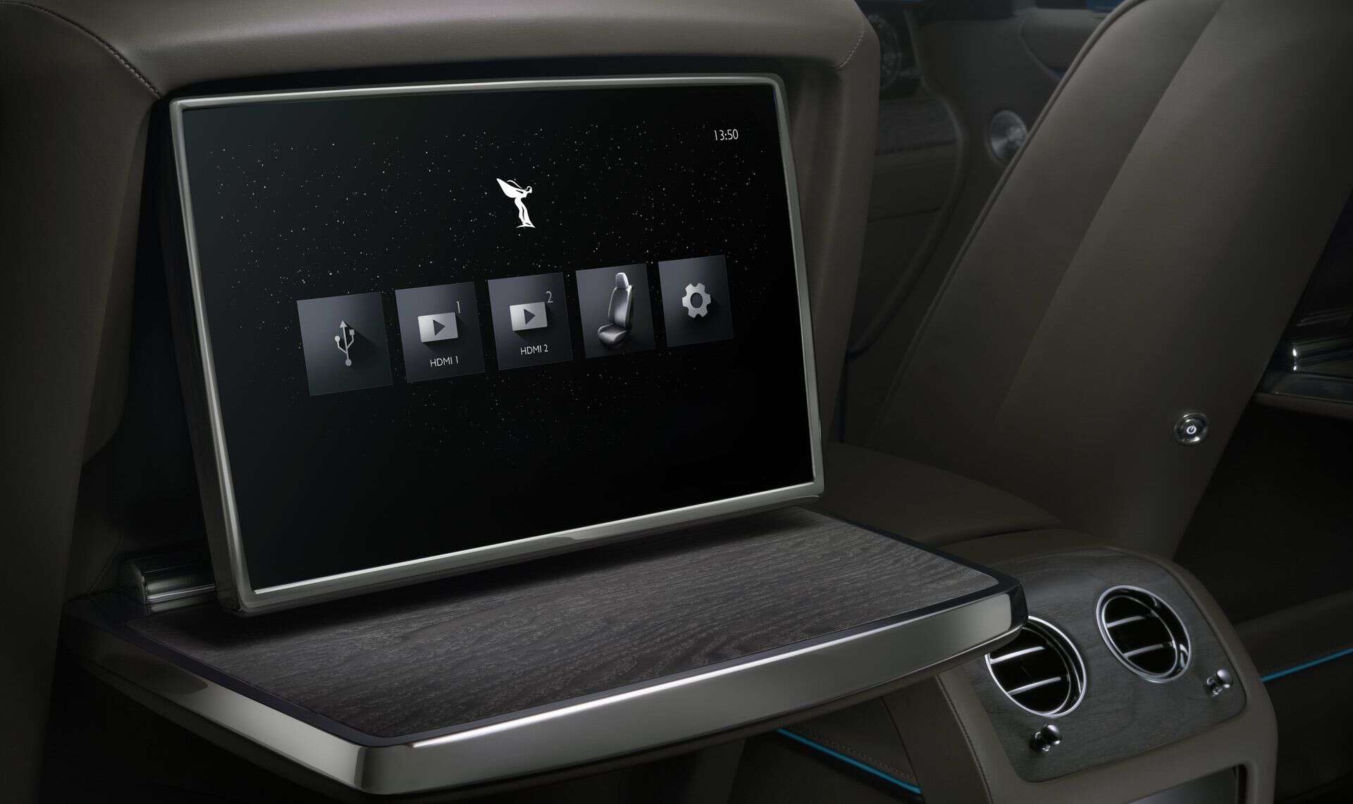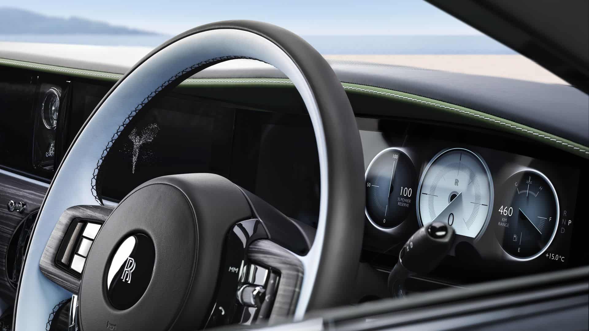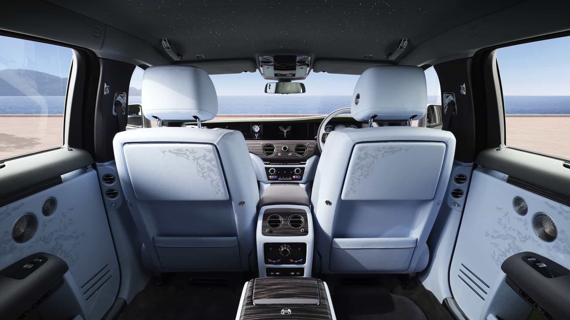 For the Series II, Rolls-Royce tweaked the 18-speaker sound system by installing a 1,400-watt amplifier. Elsewhere, the dashboard hosts a revised analog clock and a solid stainless-steel figurine of the Spirit of Ecstasy with a mirror-polished finish. Because it’s illuminated and sits on a matte black back panel with high gloss side panels, the light reflects, creating an elegant soft glow.
