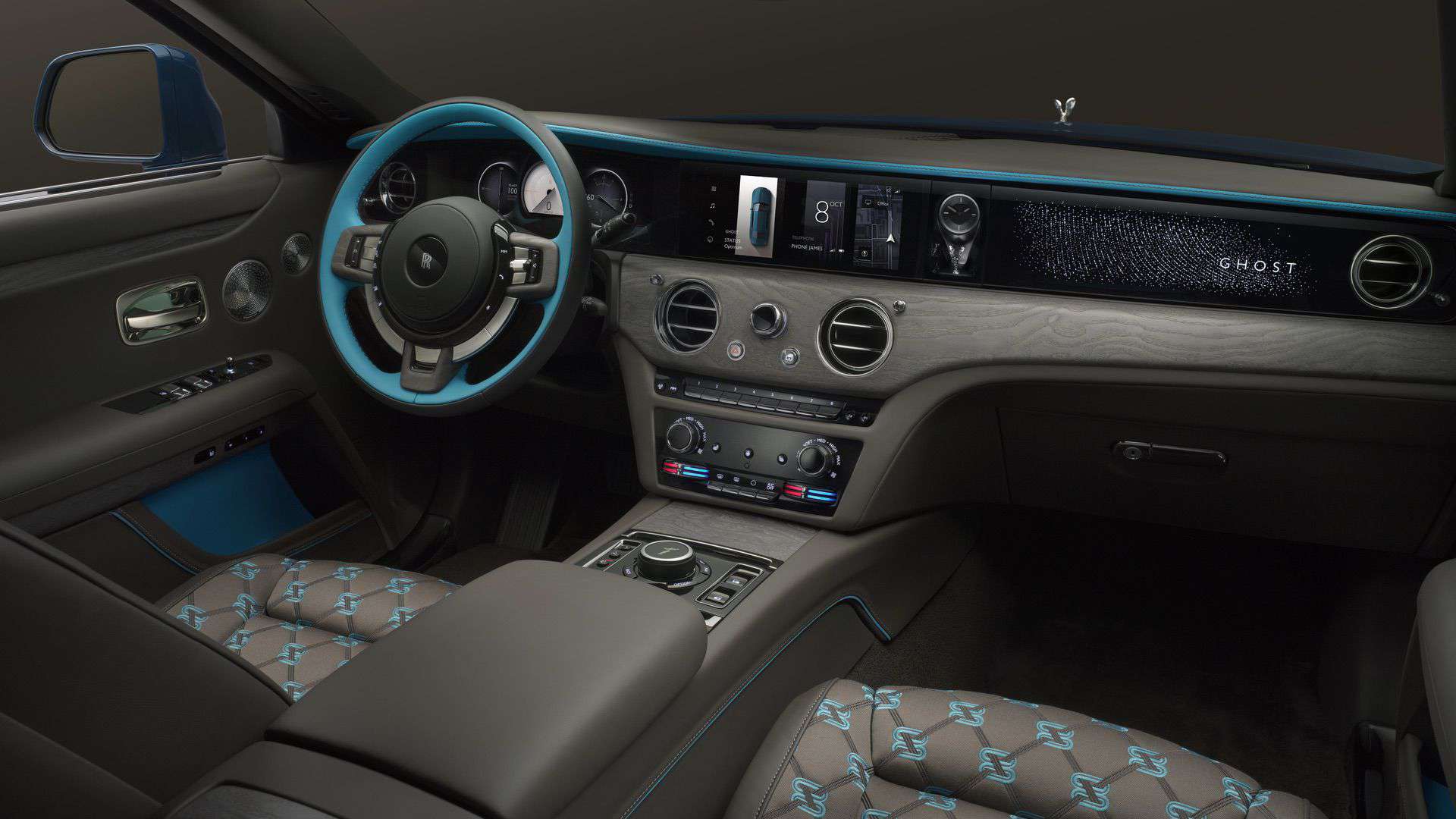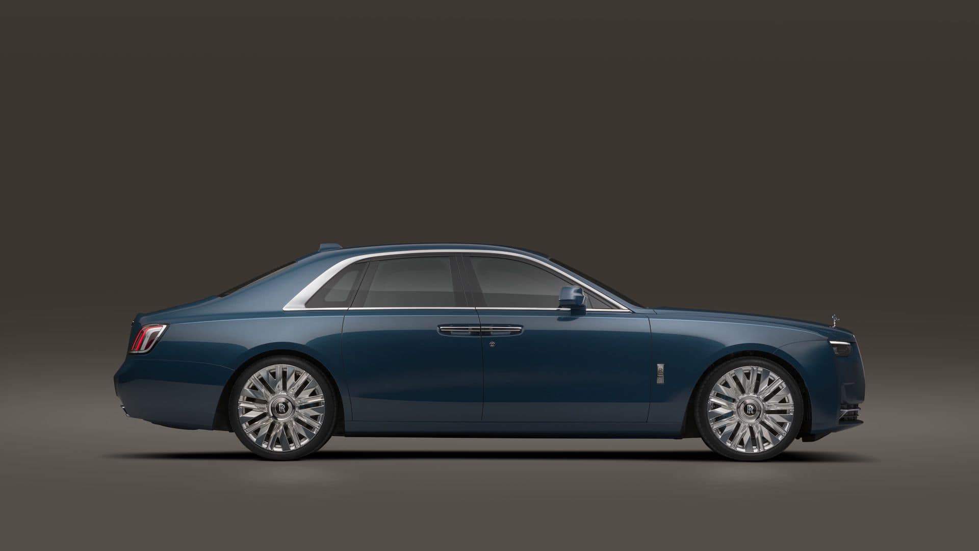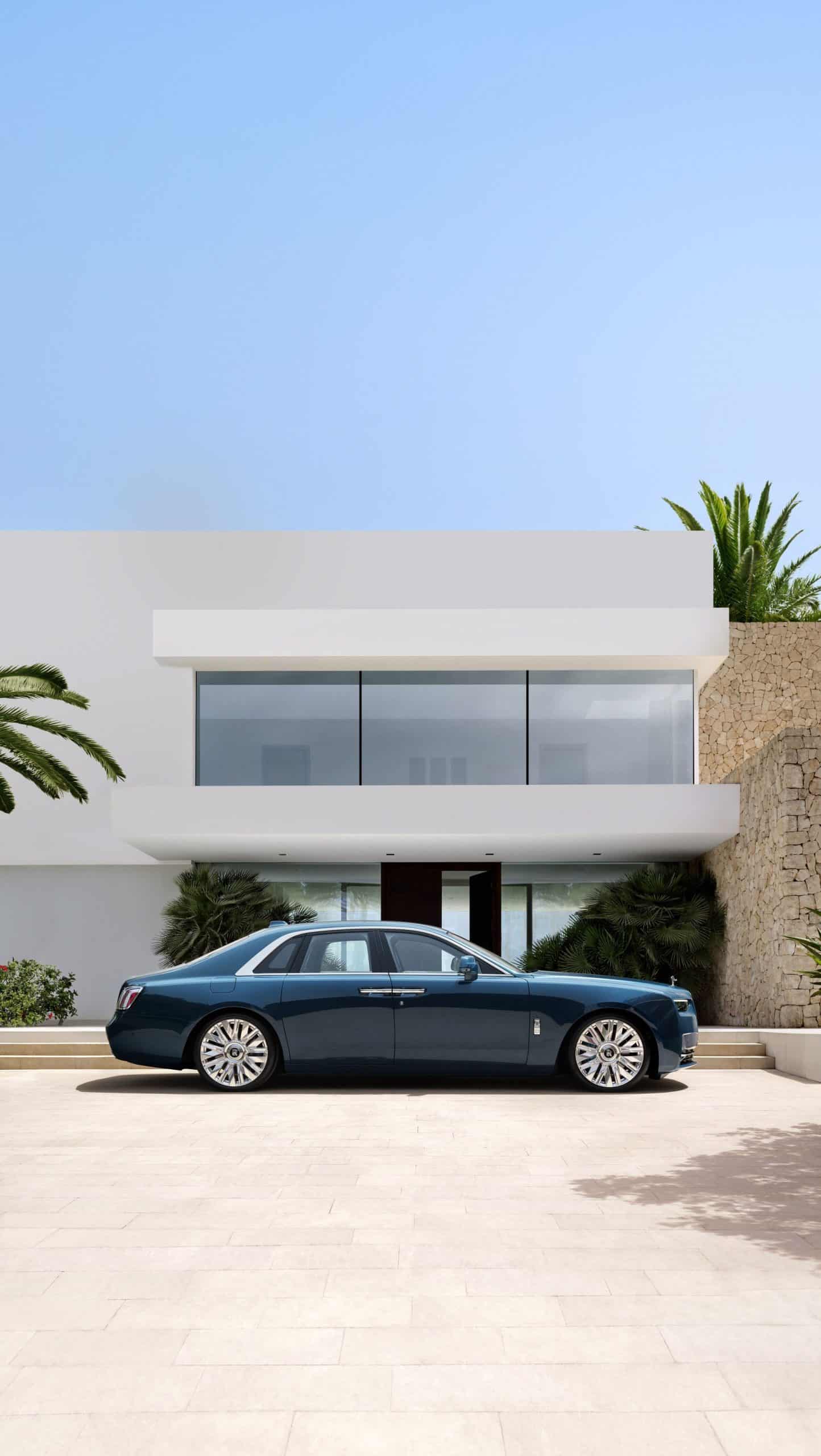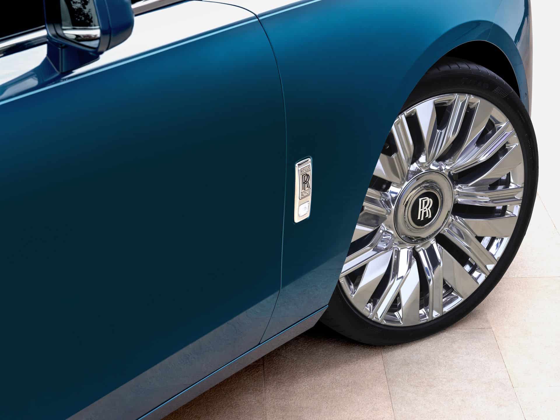 Since this is only a facelift, the profile hasn’t changed. However, there are a couple of new 22-inch wheels with a nine-spoke design. One of them has a fully polished finish while the other is partially polished. At the rear, the taillights have new graphics derived from the Spectre, RR’s first electric coupe. Because more than 44,000 colors apparently weren’t enough already, the 2025 Ghost is also offered in this fresh Mustique Blue hue.