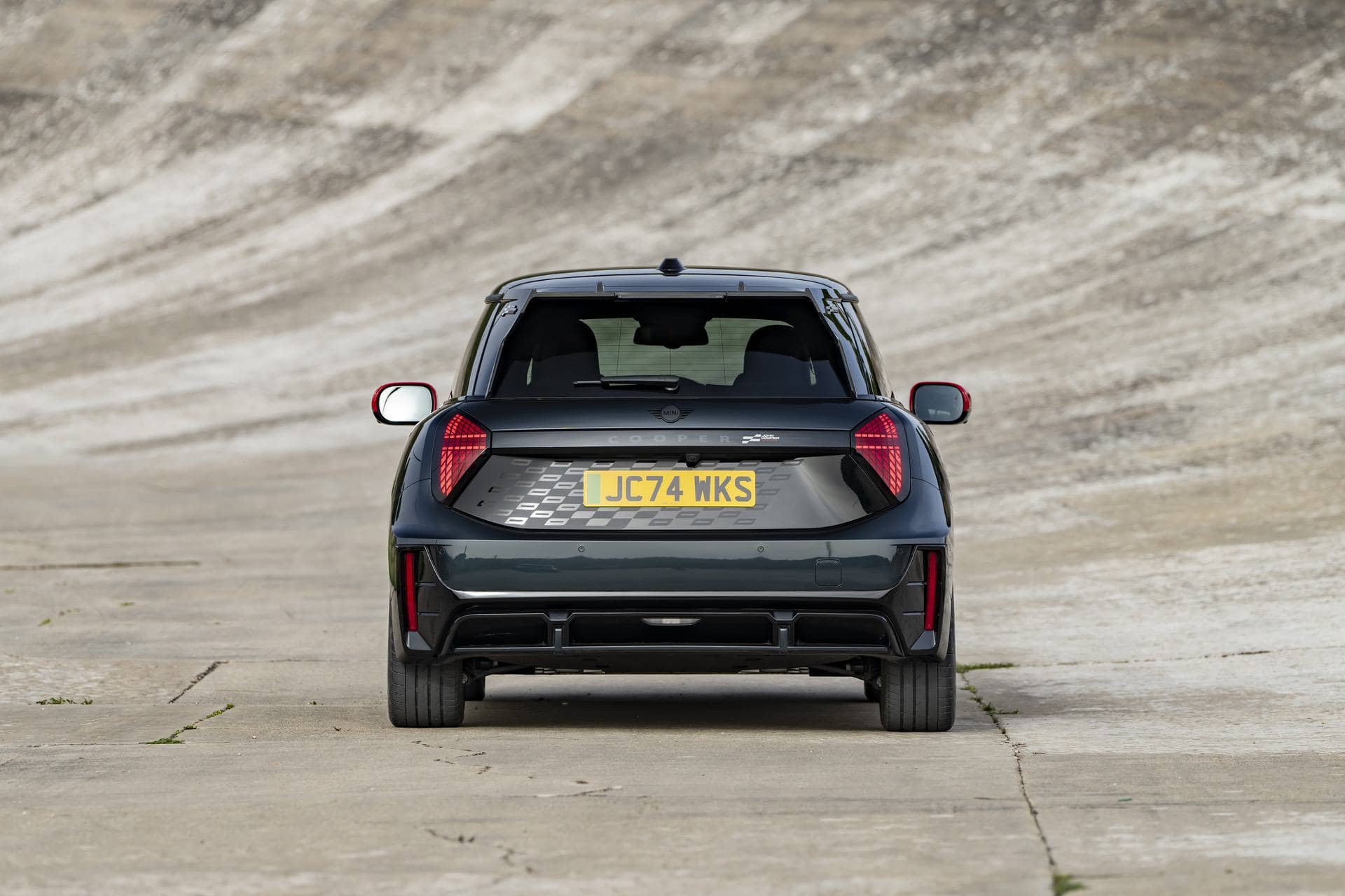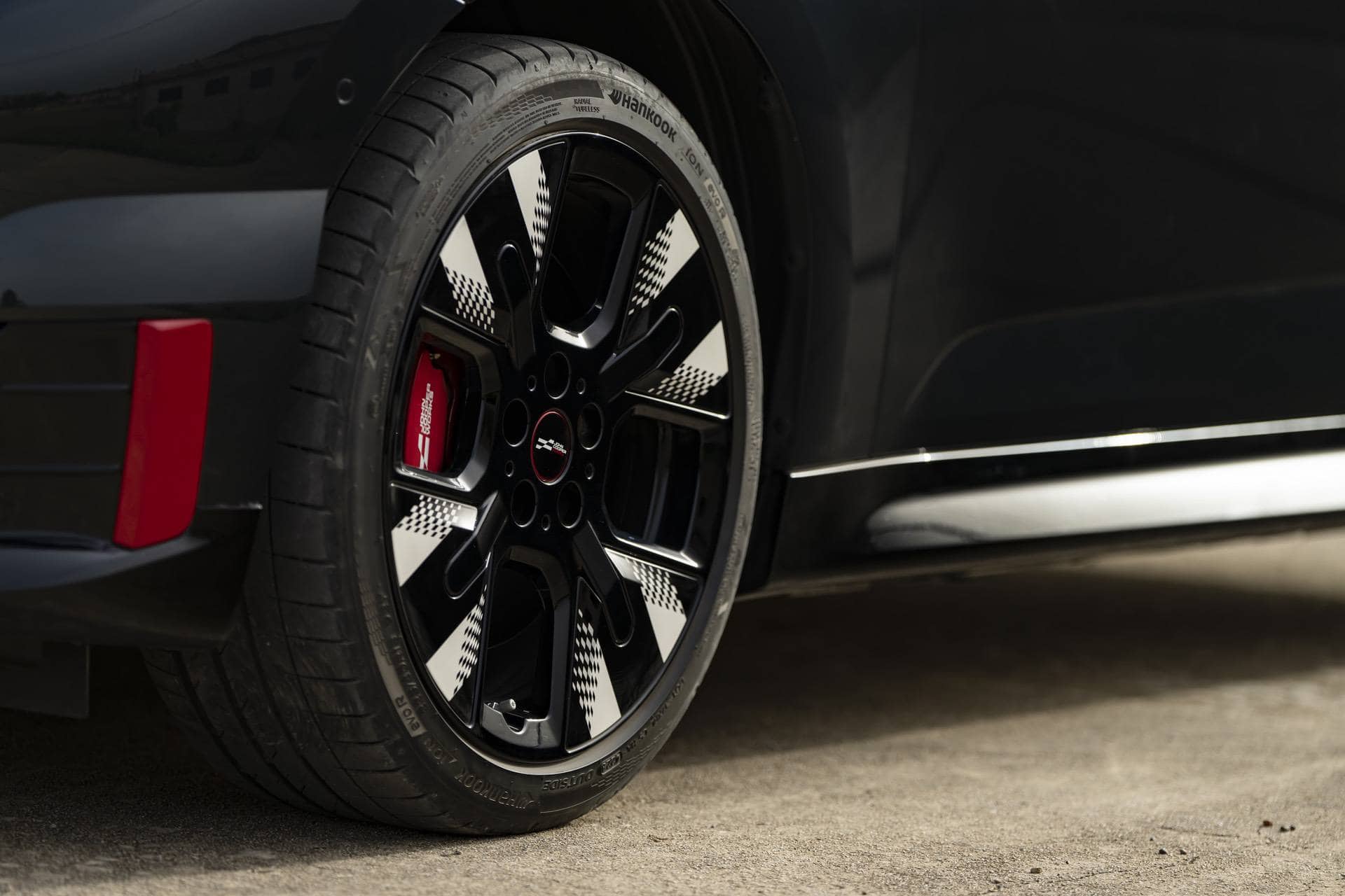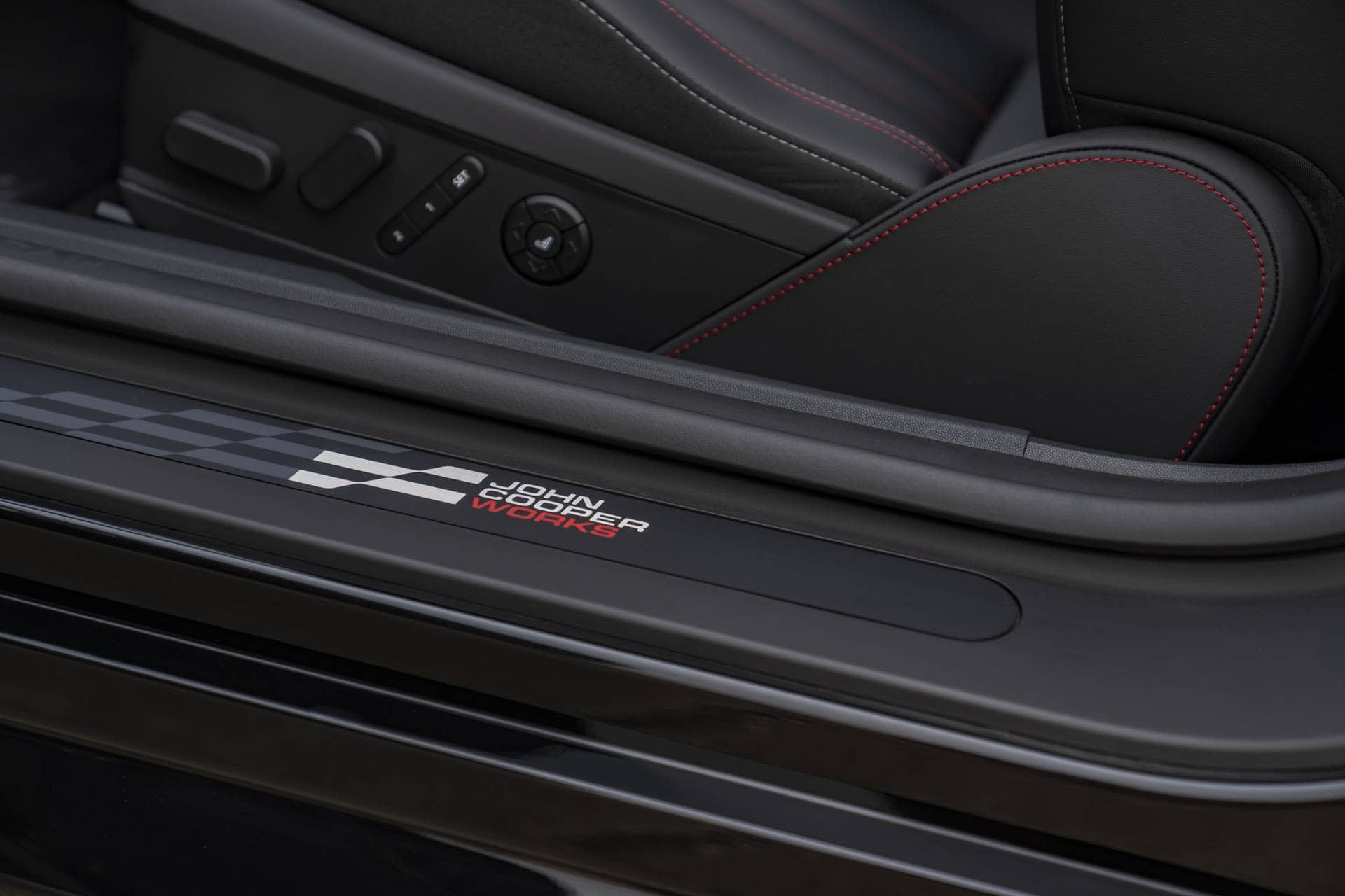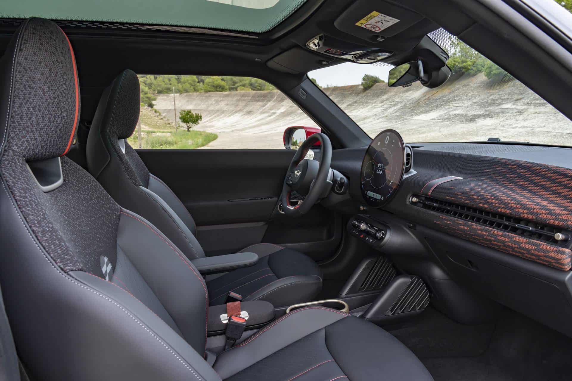 As you can imagine, the design is essentially carried over from the namesake John Cooper Works trim level. We are noticing more JCW logos and red accents along with a chequered flag motif on the tailgate. In addition, MINI installs 18-inch aero wheels available exclusively on the flagship model. The interior is also instantly familiar but with ambient lighting for the panoramic roof. This feature is also reserved for the true JCW model.