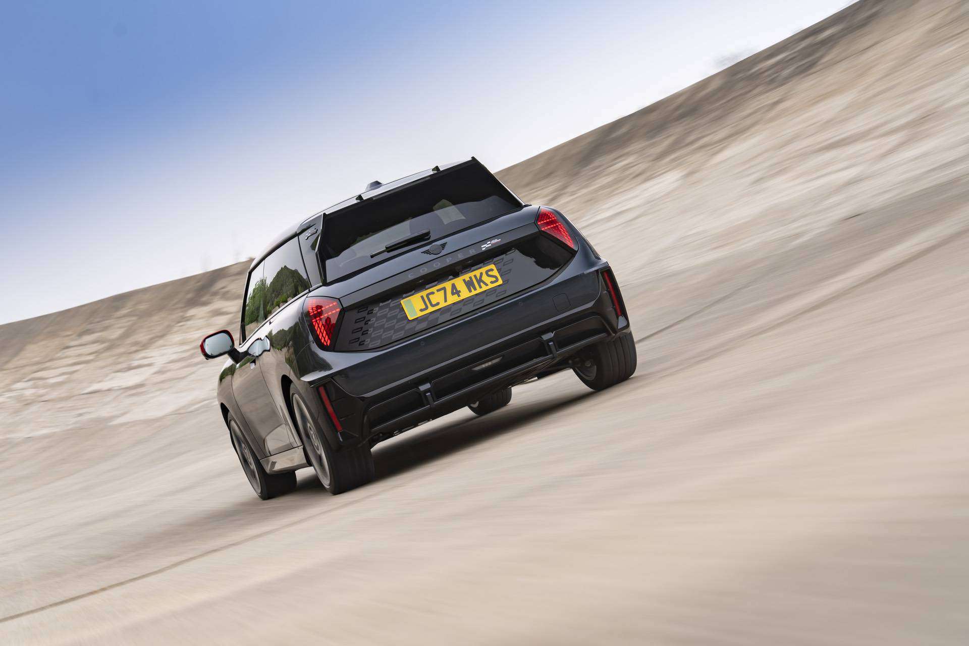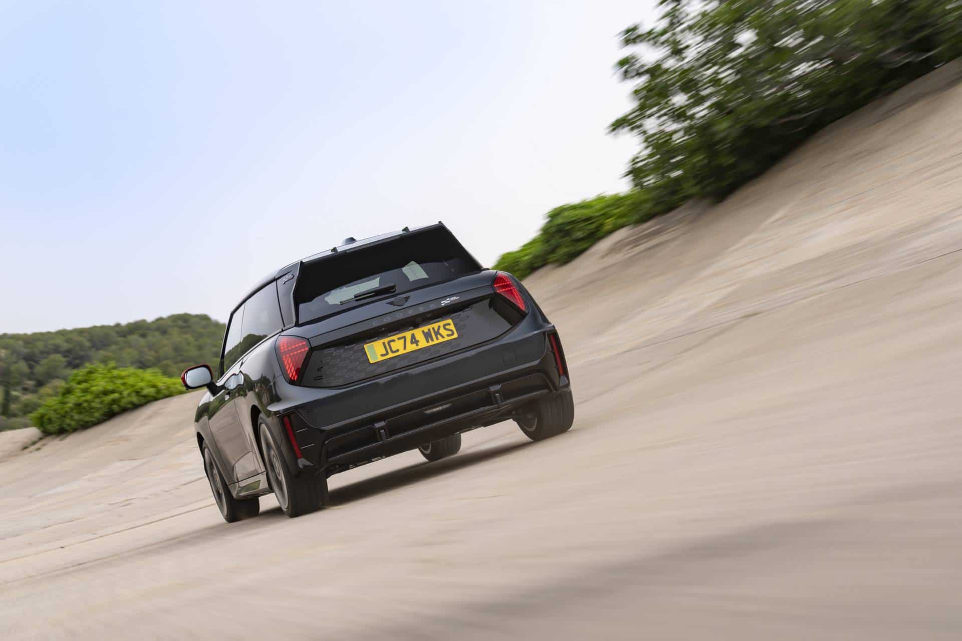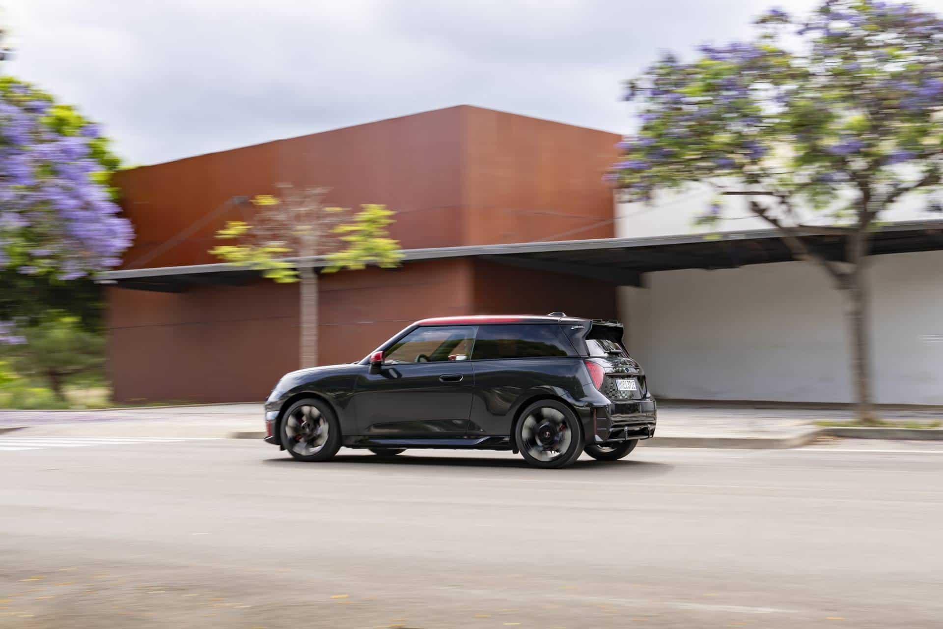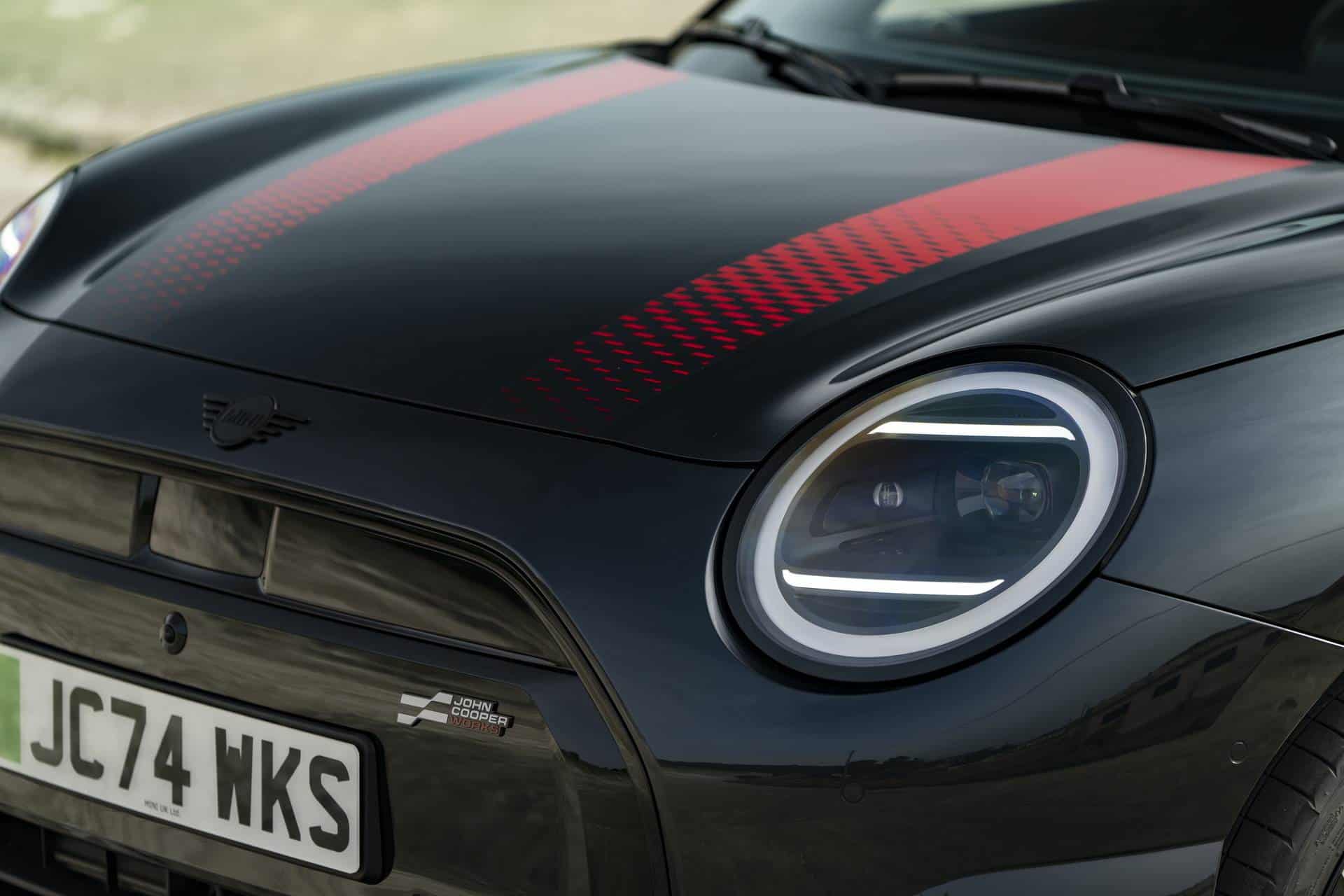 As you can imagine, the design is essentially carried over from the namesake John Cooper Works trim level. We are noticing more JCW logos and red accents along with a chequered flag motif on the tailgate. In addition, MINI installs 18-inch aero wheels available exclusively on the flagship model. The interior is also instantly familiar but with ambient lighting for the panoramic roof. This feature is also reserved for the true JCW model.
