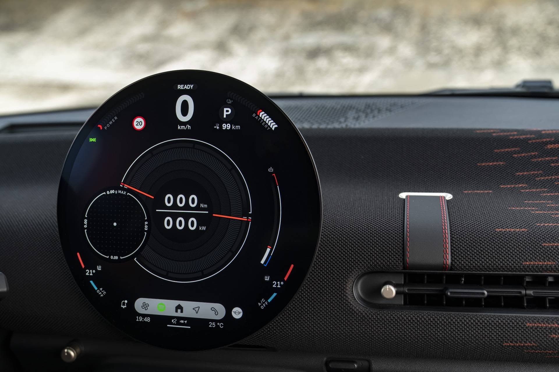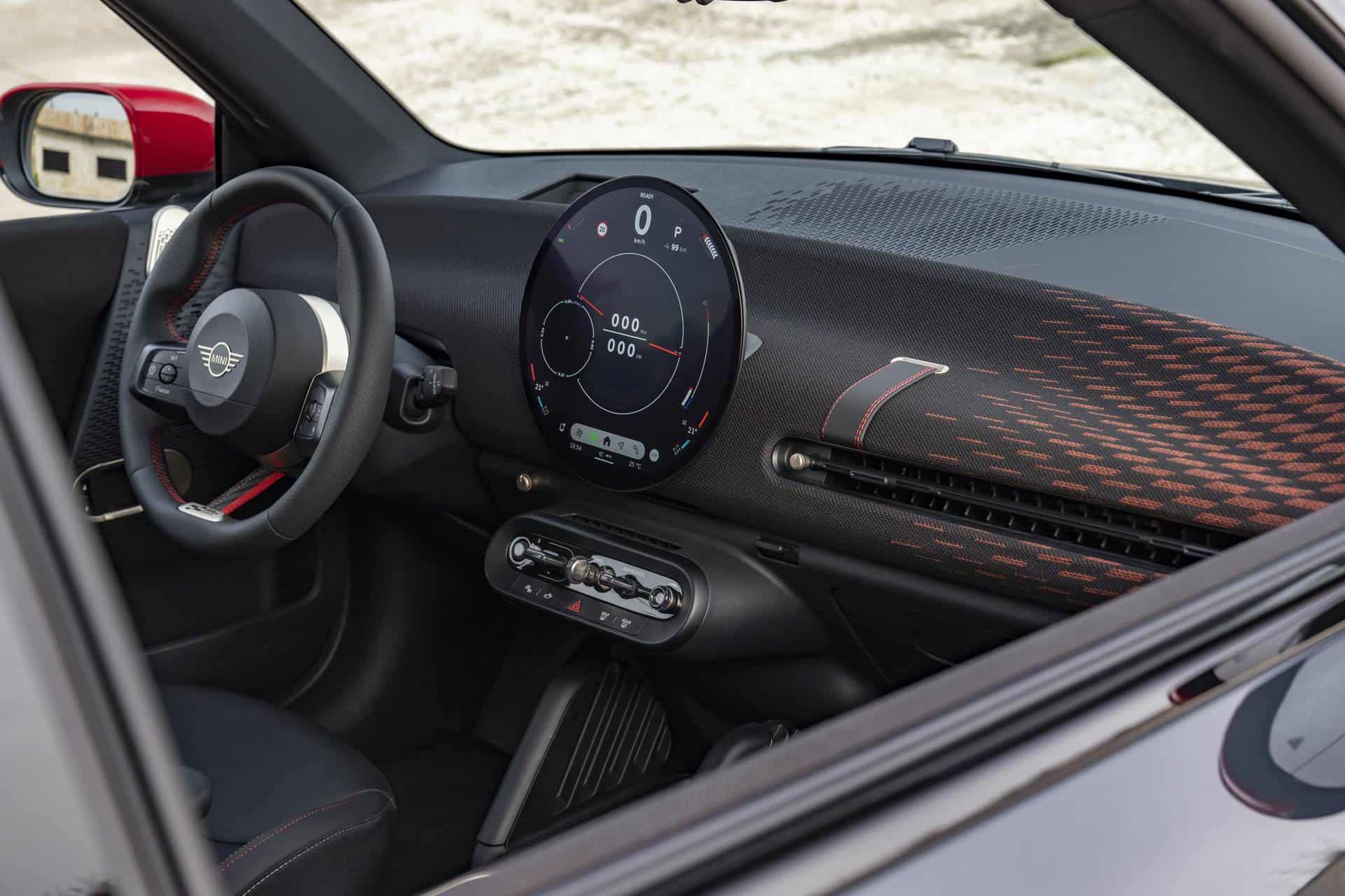 One neat feature the JCW version has is an electric boost function that unlocks a temporary 27 hp (20 kW). It’s activated by using the boost paddle on the steering wheel and is ideal for overtaking or when you just want quicker acceleration. MINI also fits the range-topping electric three-door hatchback with chunkier brakes and upgraded tires for extra grip.