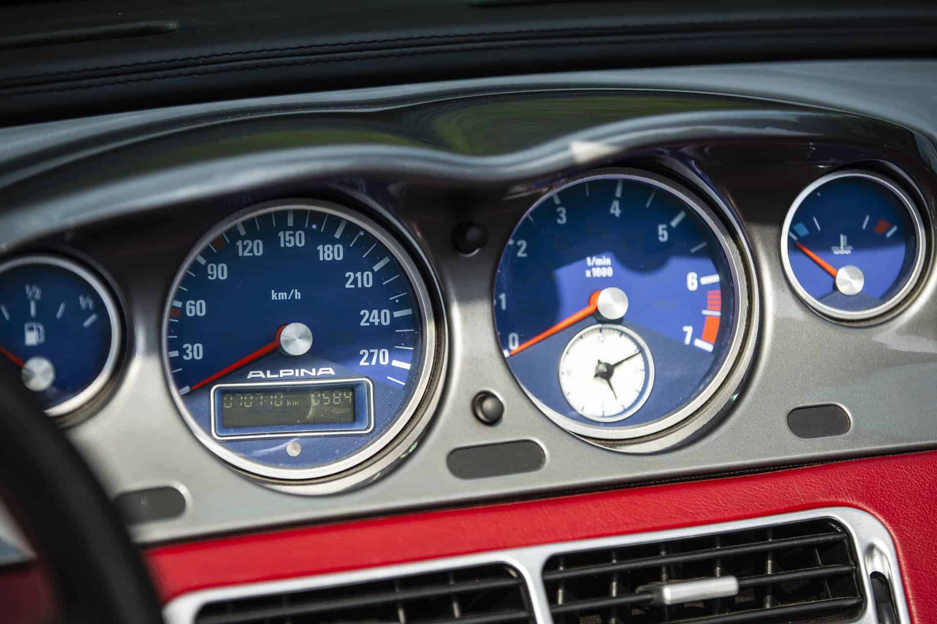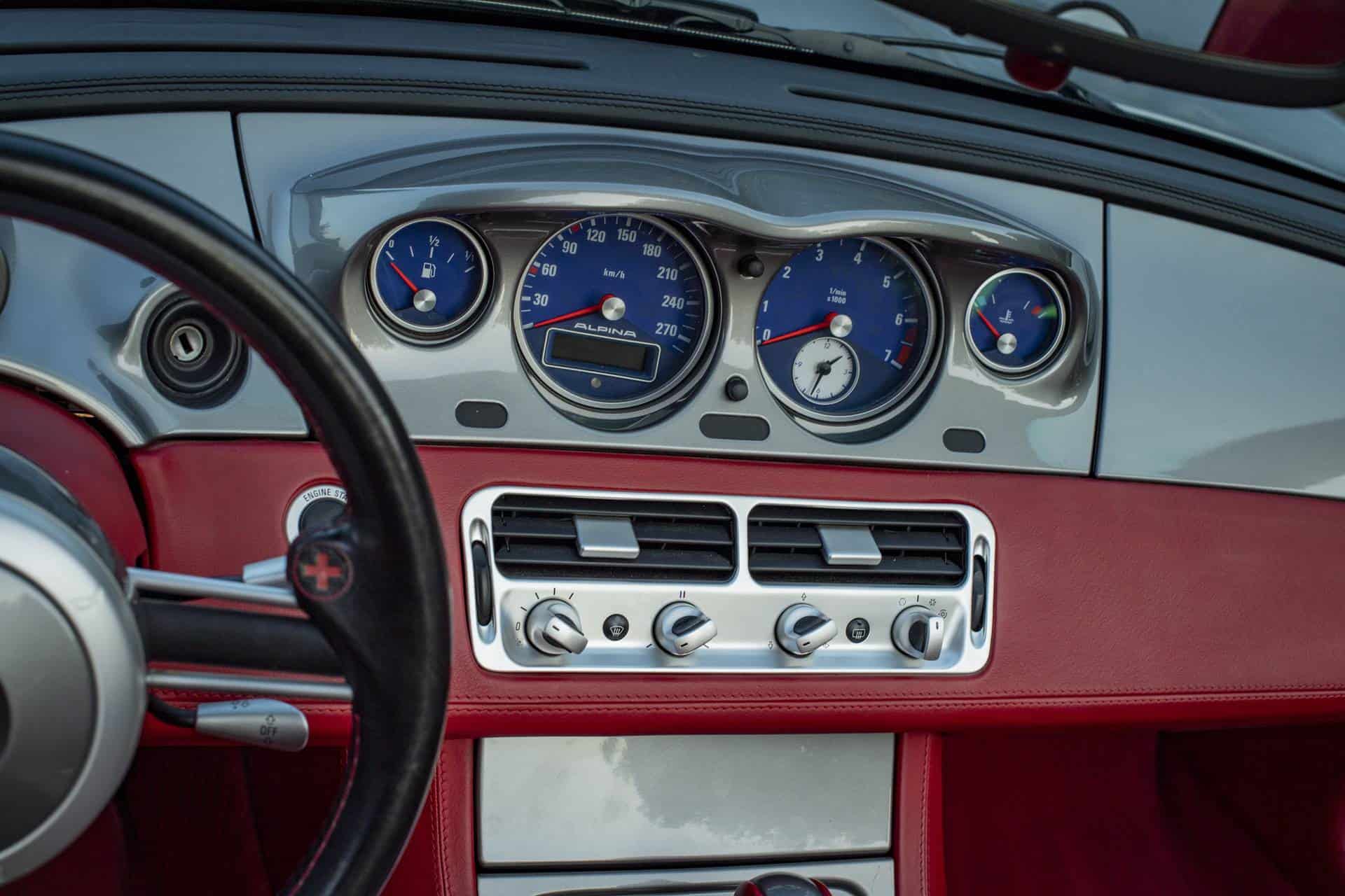 In the end, ALPINA produced only 555 units – each numbered via a plaque in the cockpit. The car got special gauges and badging to go along with the substantial changes under the sheet metal. The steering wheel is adorned in ALPINA-colored stitching, and of course the Roadster V8 has the odd “Switch-Tronic” shift buttons that most modern ALPINA models get in lieu of paddles. Perhaps most recognizable are the Ronal-sourced ALPINA 20-inch triple-spoke wheels.