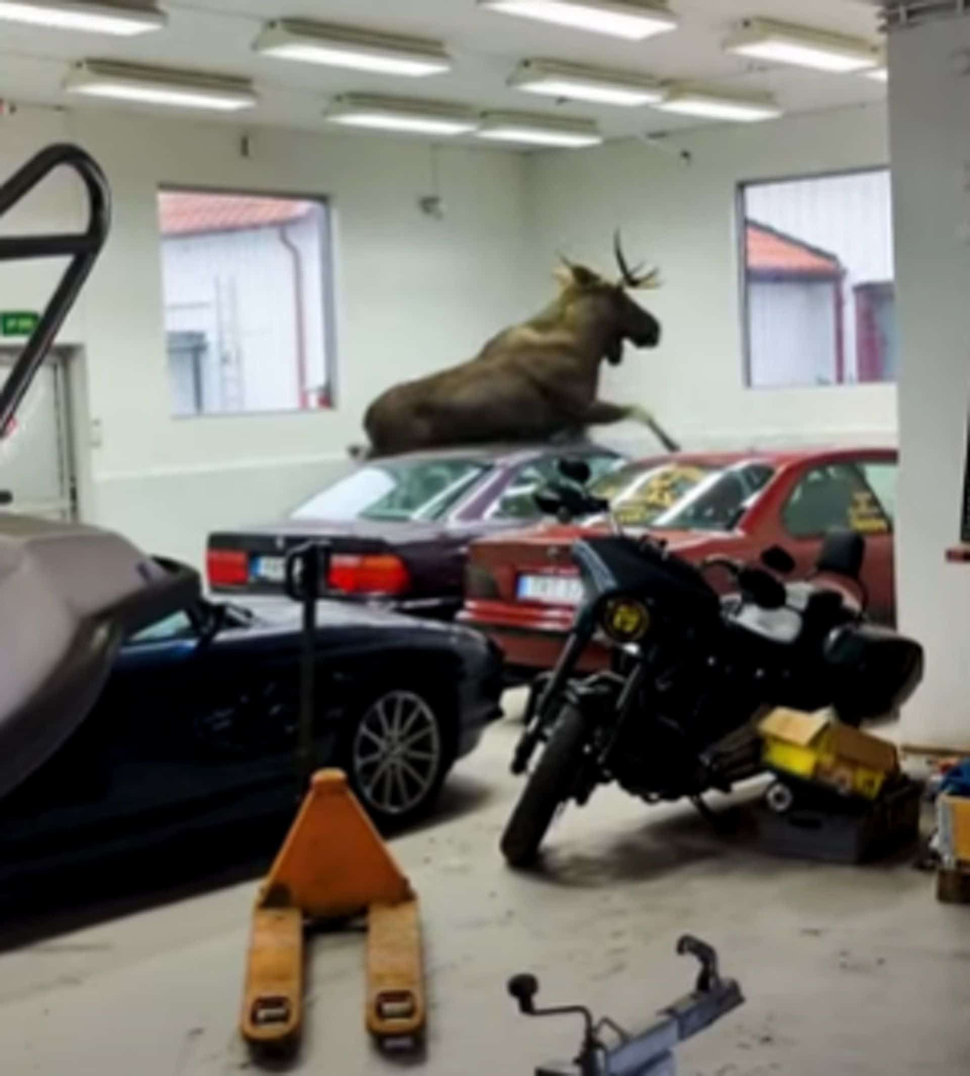 You’ve probably heard of the moose test that involves making evasive maneuvers to assess a car’s handling. Well, this is a different type of moose test, a more literal one. A specimen of the largest member of the deer family wreaked havoc inside a facility of BMW specialist Schmiedmann in Sweden. The moose on the loose damaged not one but two BMW 8 Series E31s.