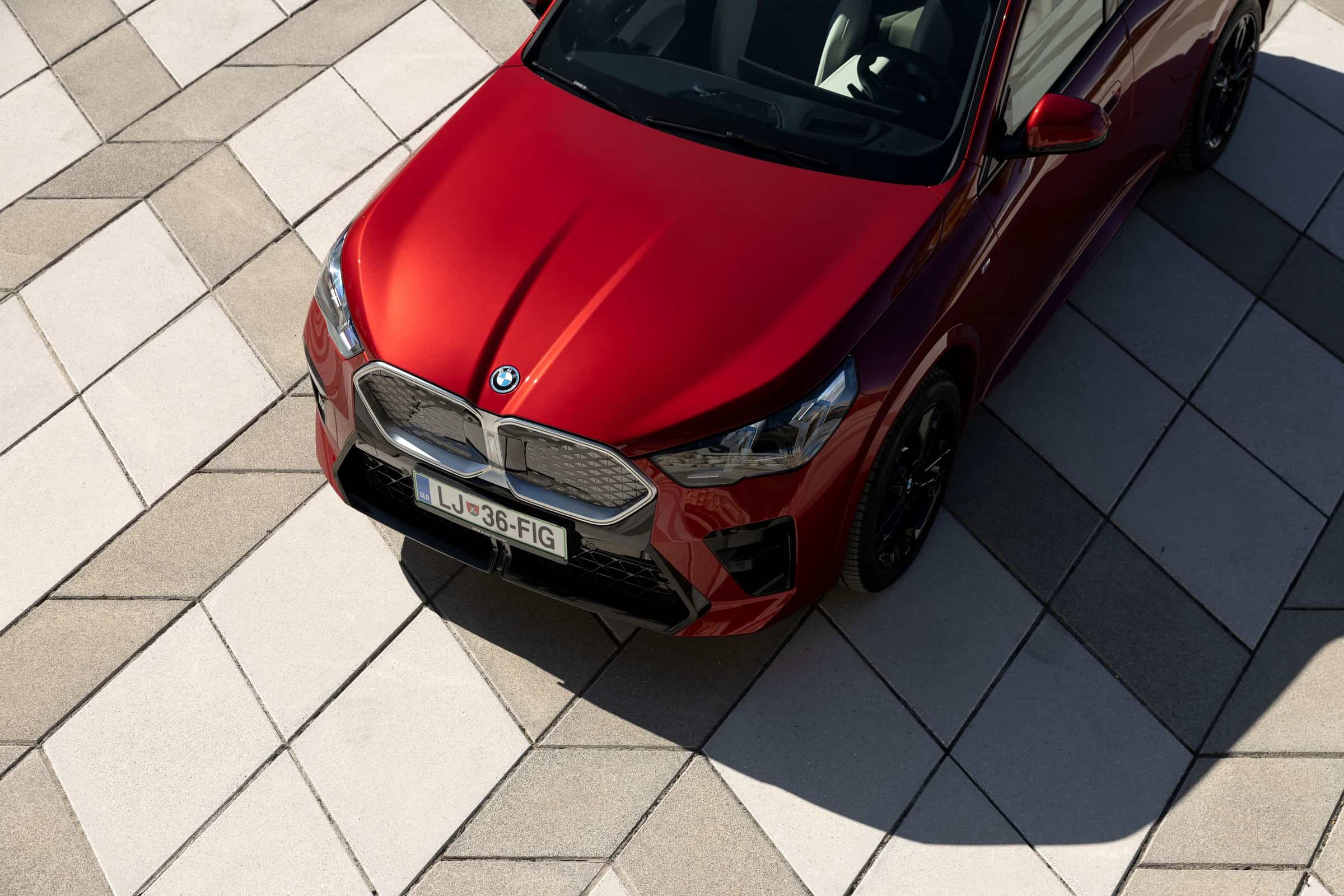 The iX’s front design, based directly on the 2018 Vision iNext concept, features slim, upright headlights with minimal arrow-shaped LED daytime running lights. This marked a true departure from the angel eyes that fans traditionally associated with BMW. Connecting seamlessly into the kidney grille, the headlights resemble the 2015 (F25) X3 design. Designers gave this electric model the largest-ever “self-repairing” kidney grille, with hood creases sculpted to emphasize the imposing front fascia.