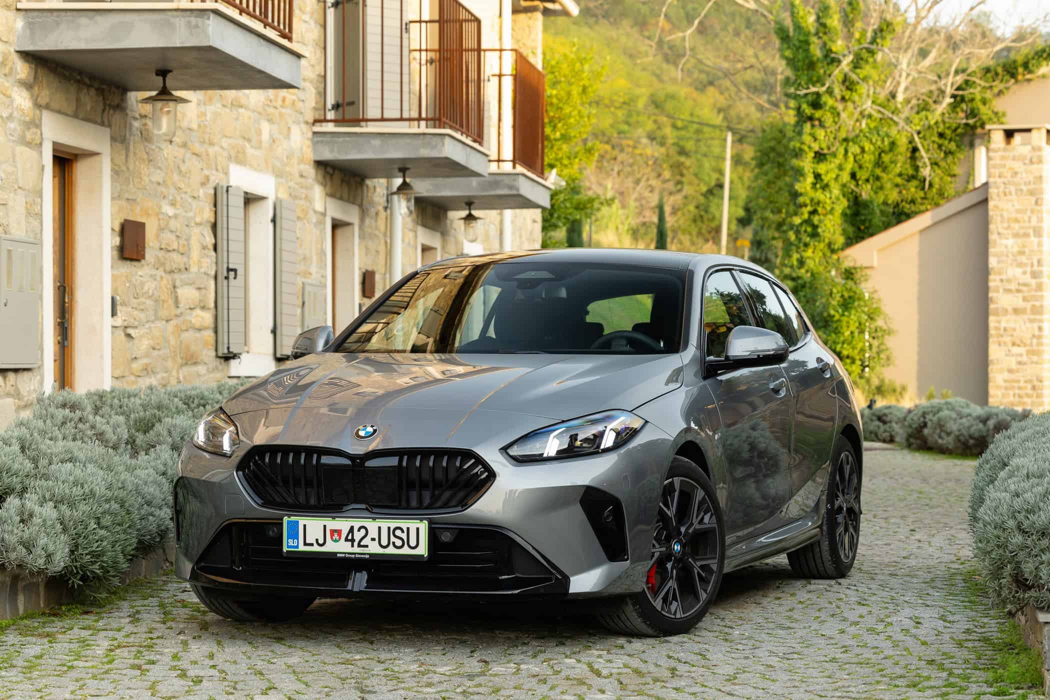 Posing for the 1 Series’ launch in Slovenia, this 120 hatch painted in Skyscraper Grey has the M Sport brakes with red calipers. Some would argue the Shadowline accents are a must, especially the black kidney grille to conceal the quirky design. This car also happens to have adaptive headlights featuring a matrix glare-free high beam.