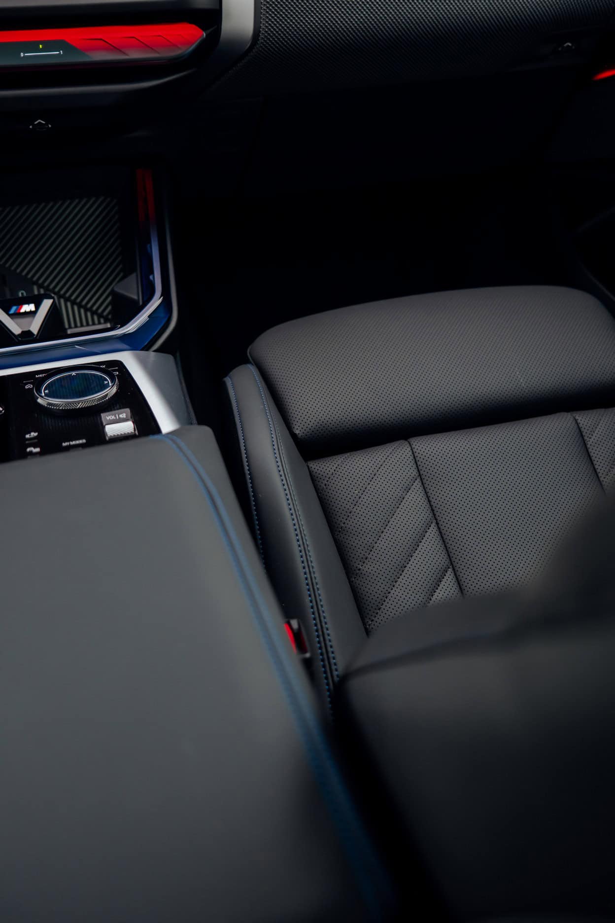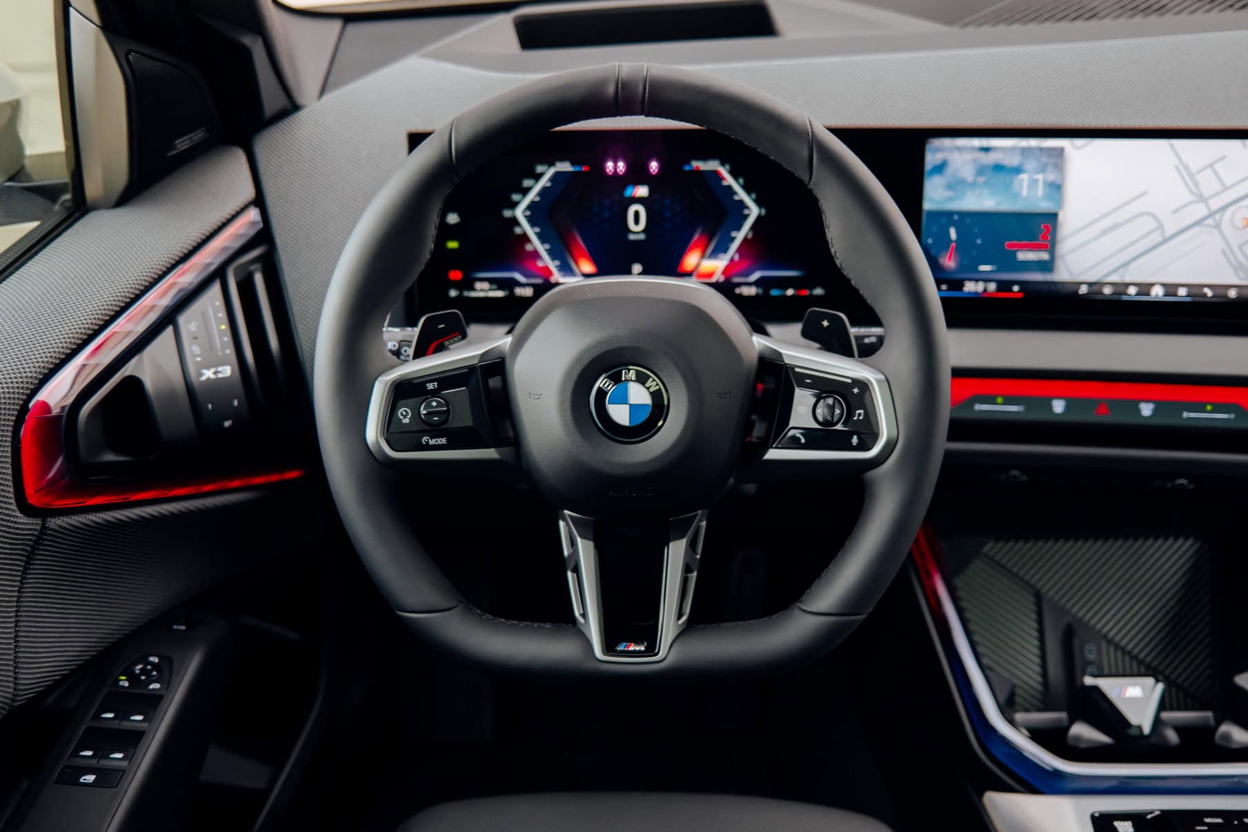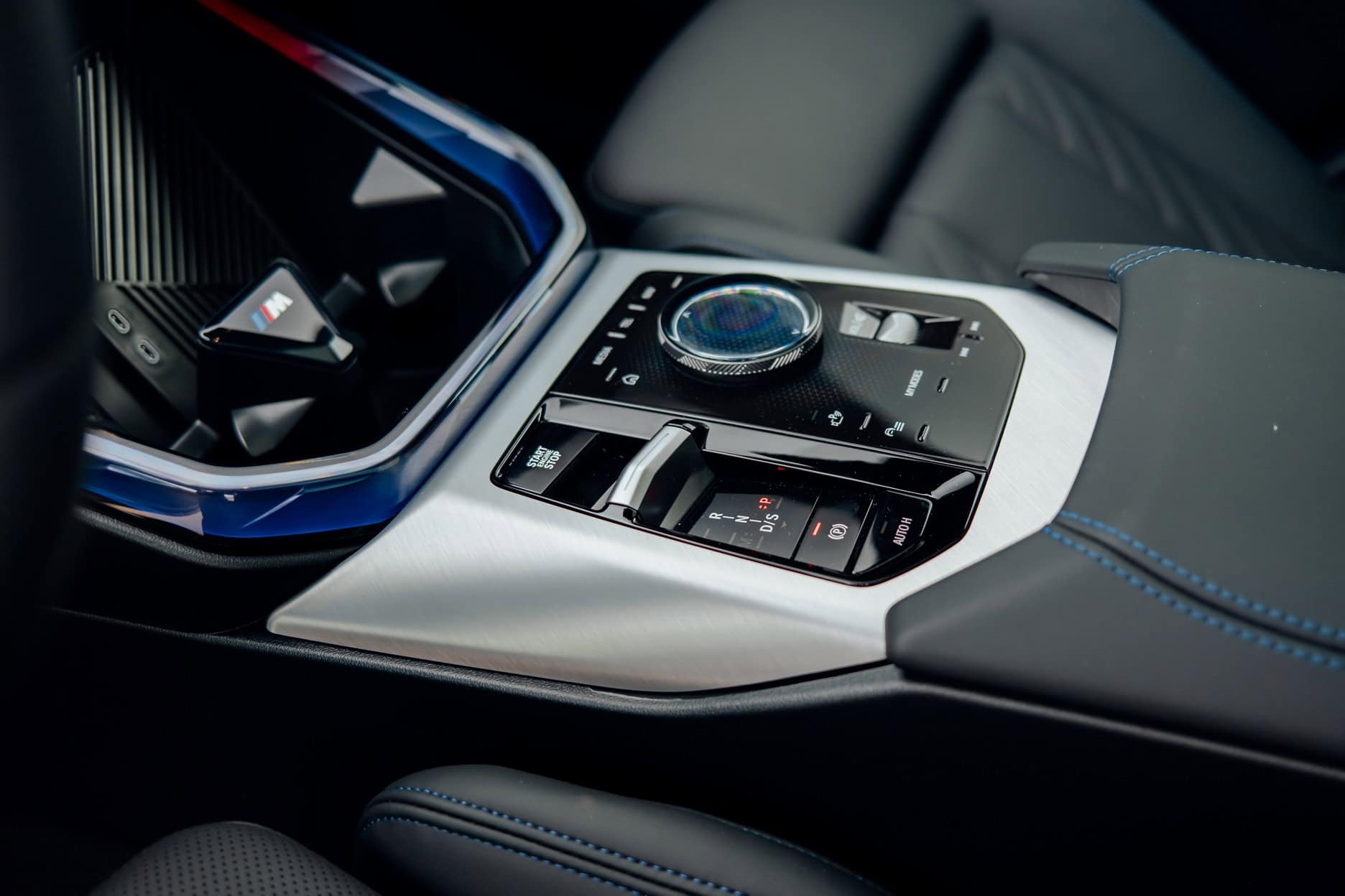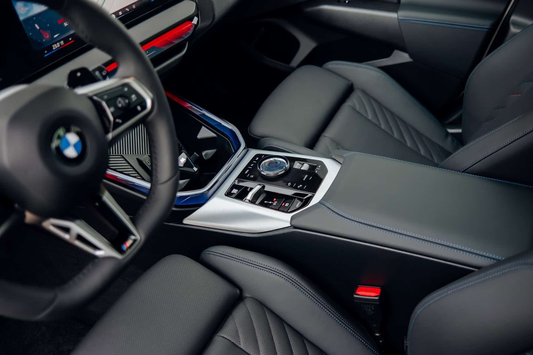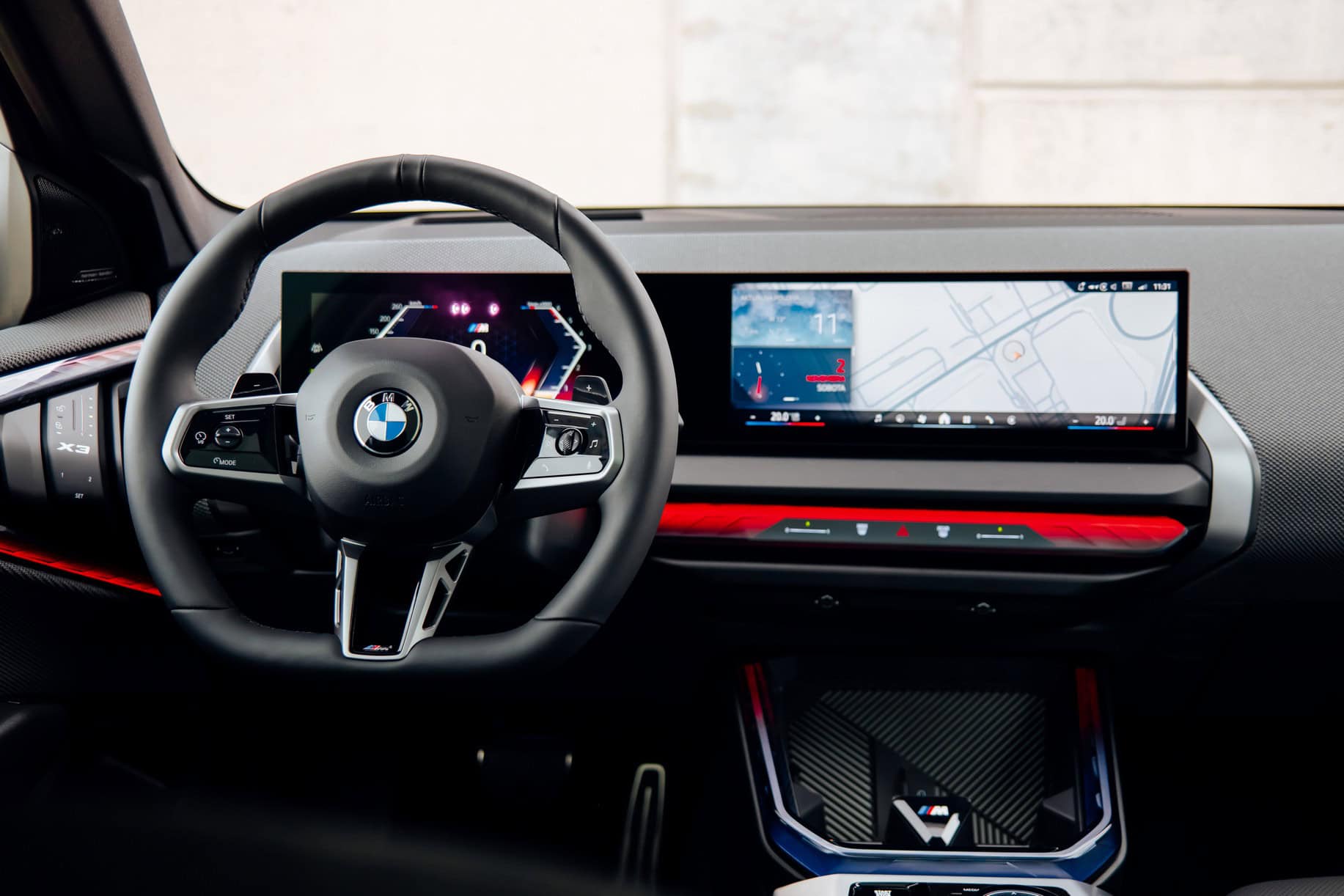 Inside, BMW opted for a combination of Veganza (vegan leather) and Alcantara for the upholstery. From electric front seats to rear sun blinds, this X3 G45 comes in a generously equipped configuration. BMW doesn’t install the iDrive controller in any other model that runs on Operating System 9. It’s likely the first and last vehicle to combine the physical dial with the Drive 9.