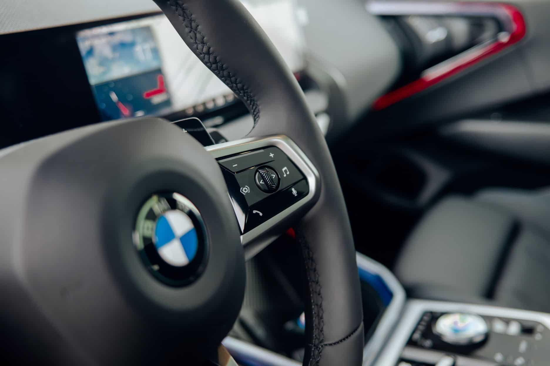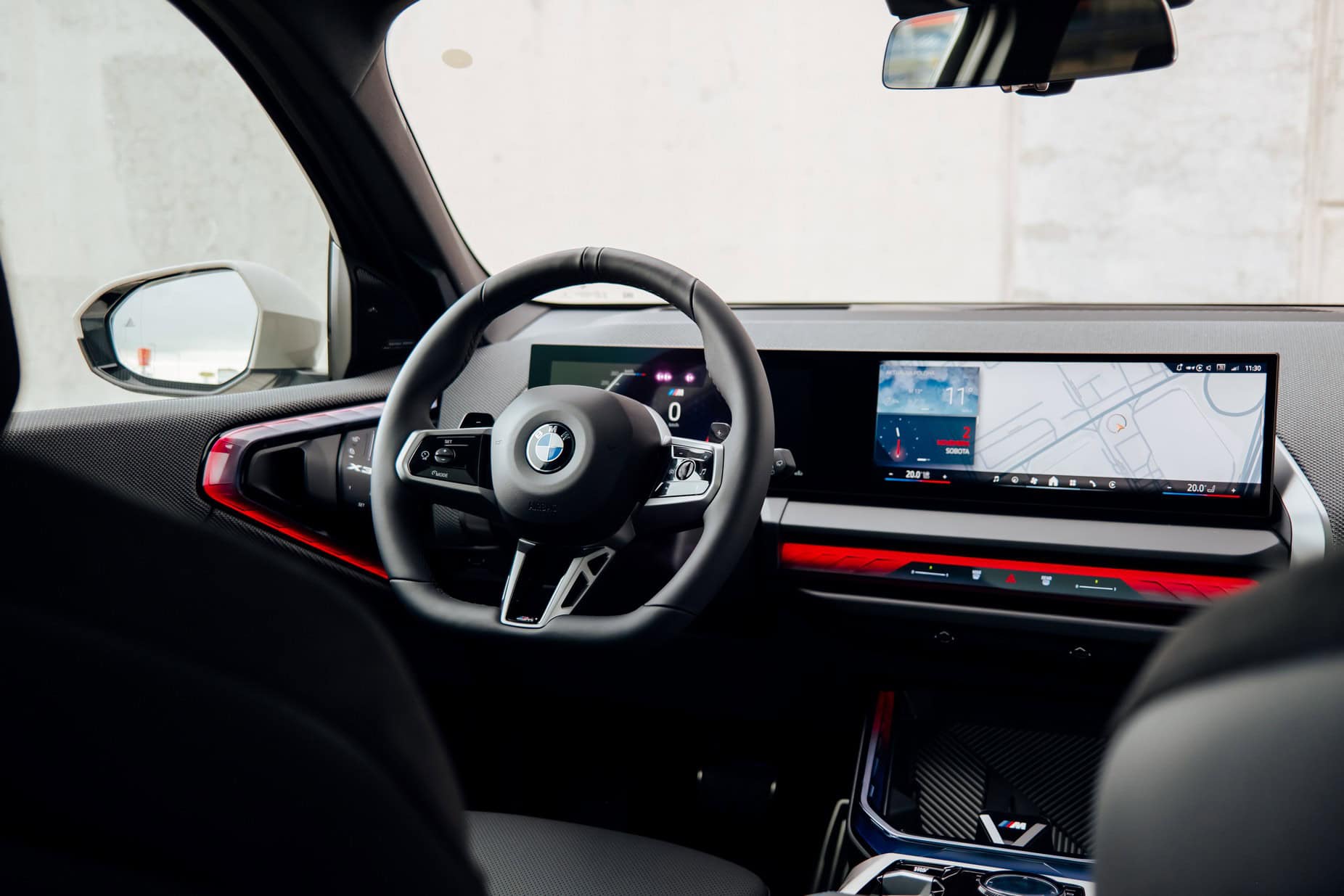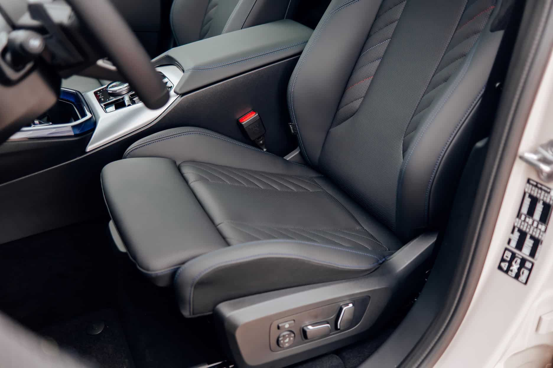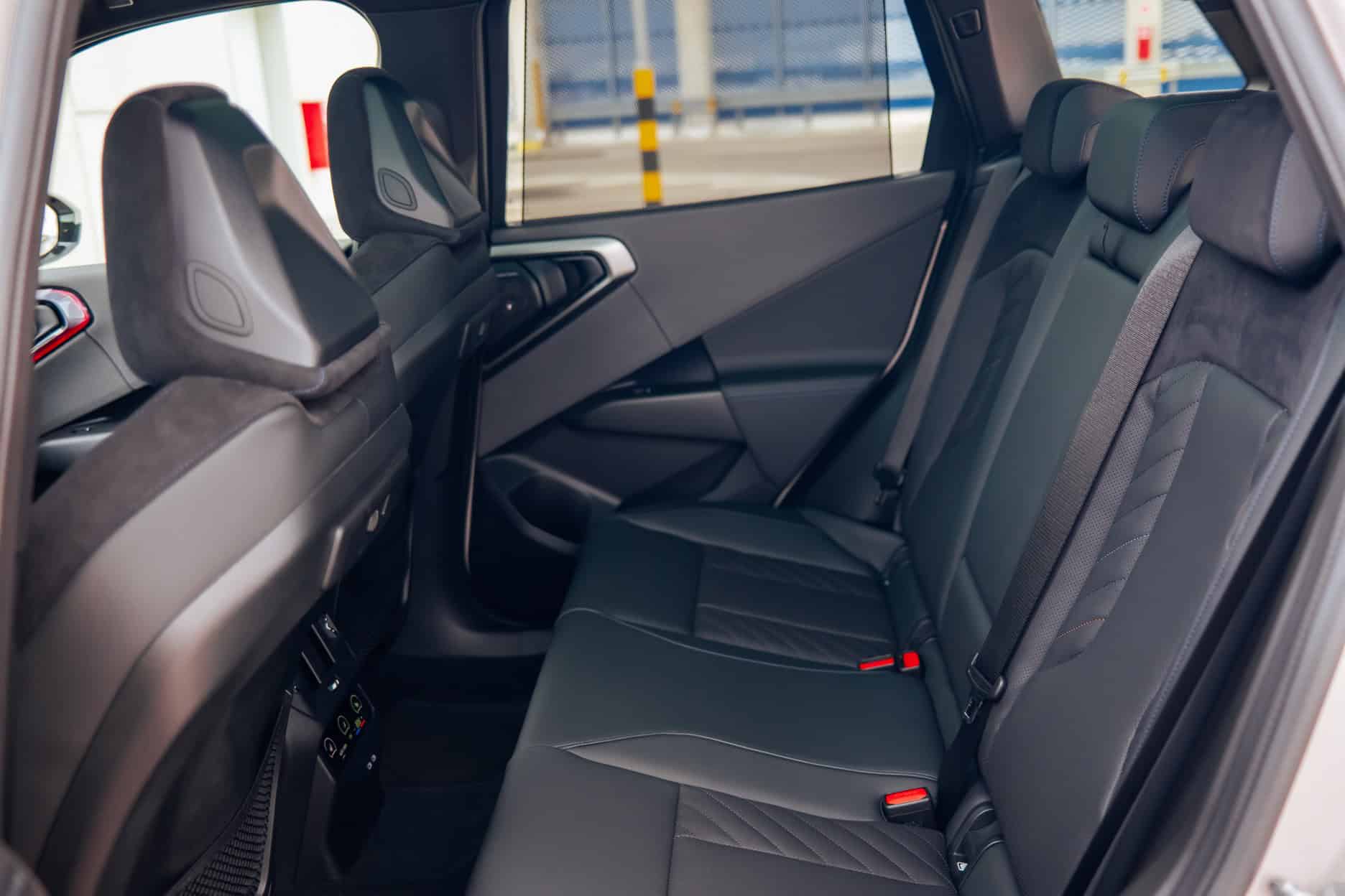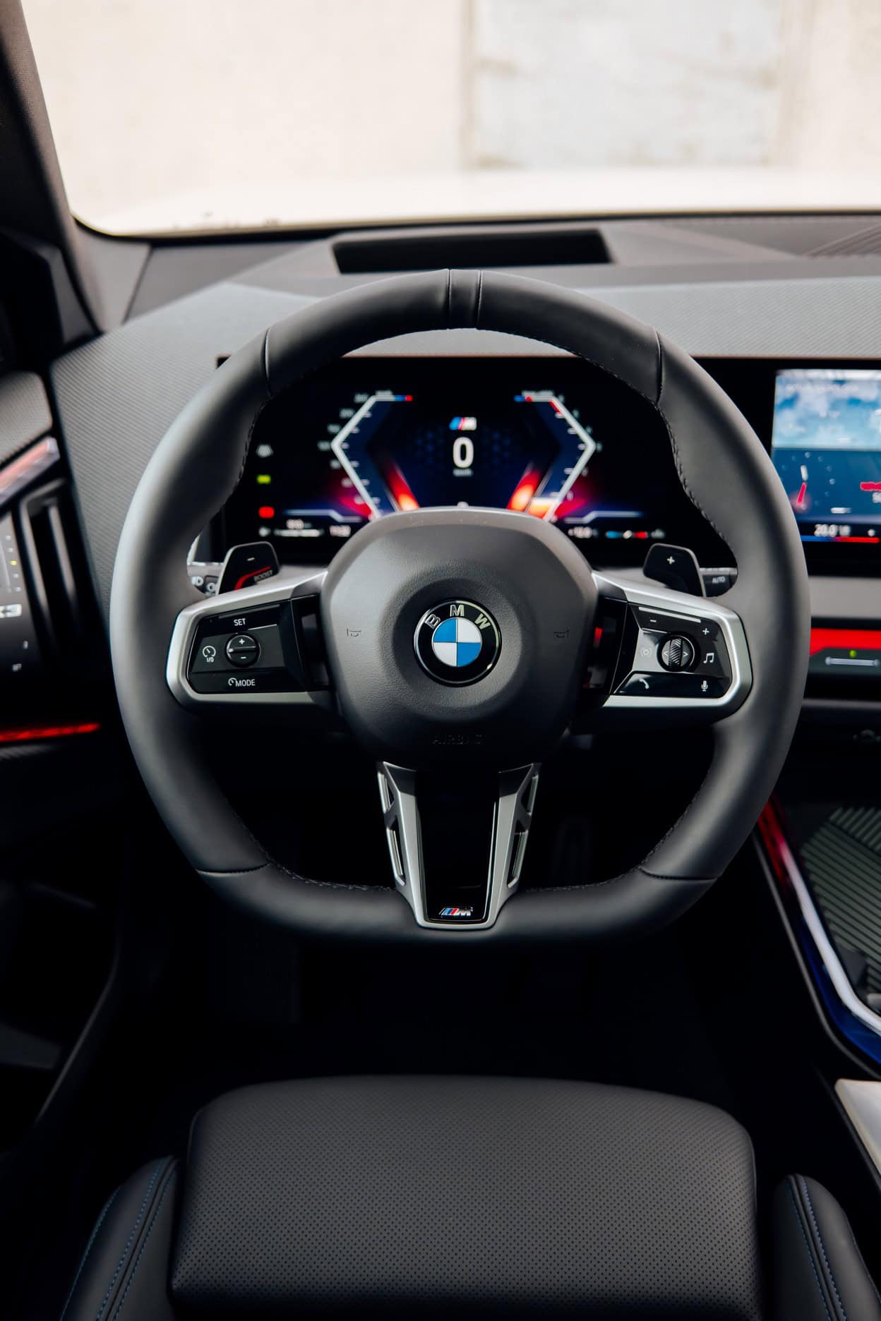 Inside, BMW opted for a combination of Veganza (vegan leather) and Alcantara for the upholstery. From electric front seats to rear sun blinds, this X3 G45 comes in a generously equipped configuration. BMW doesn’t install the iDrive controller in any other model that runs on Operating System 9. It’s likely the first and last vehicle to combine the physical dial with the Drive 9.