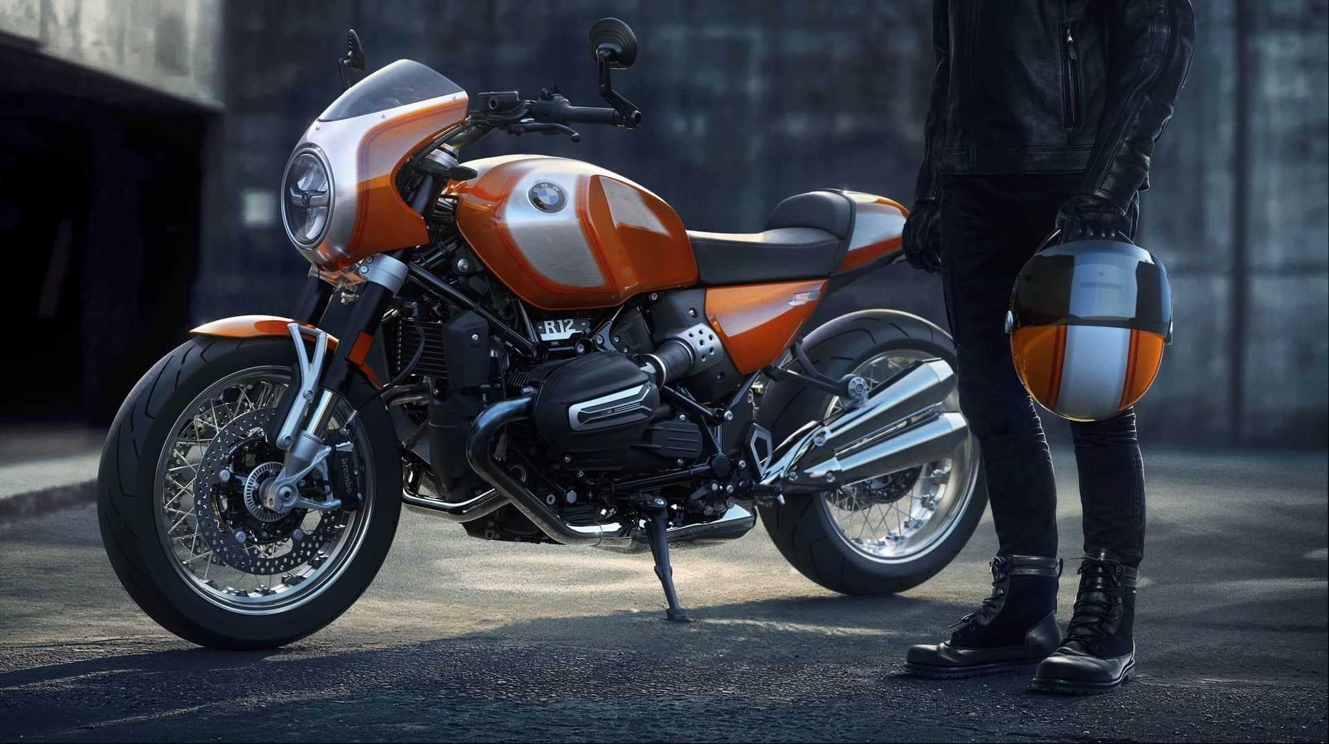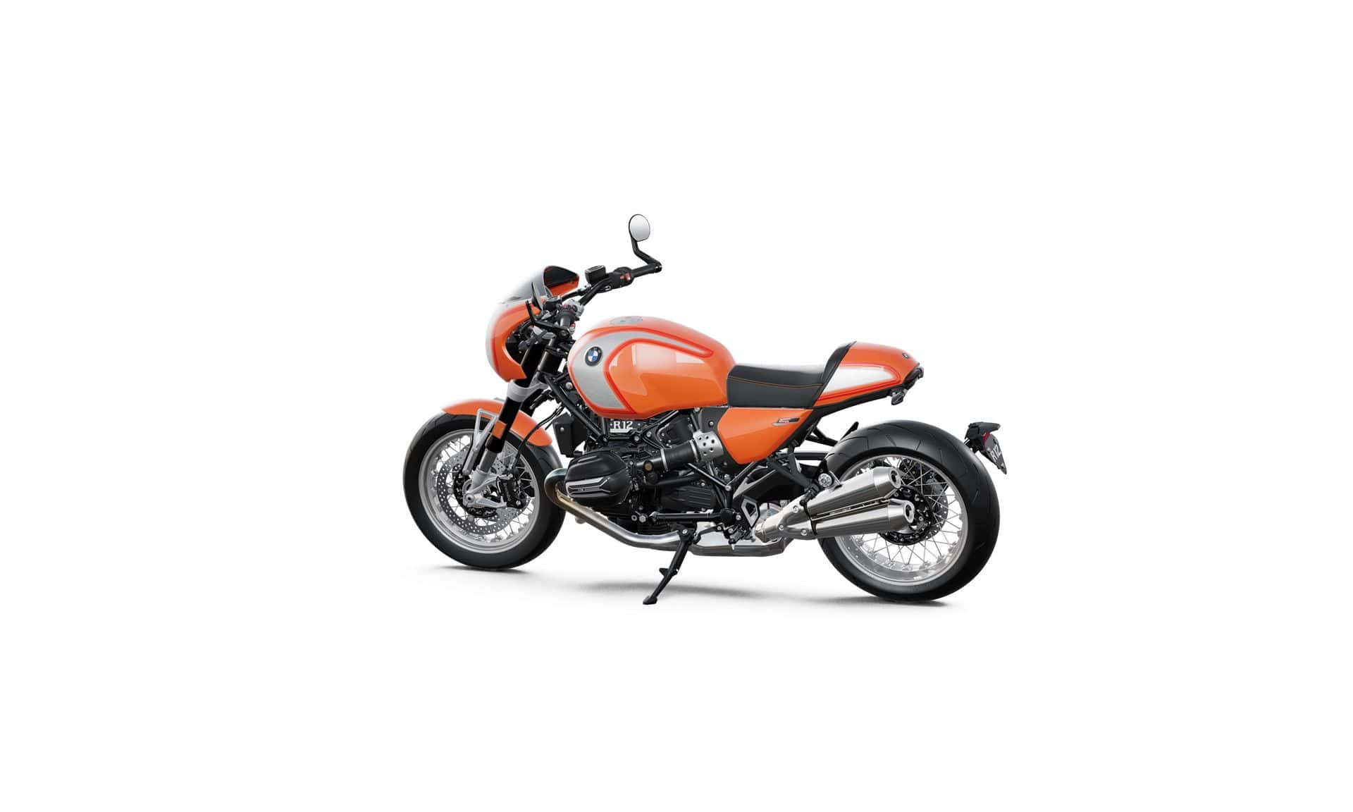 The new BMW R 12 S channels the soul of its predecessor while integrating modern technology. Building on the platform of the R 12 nineT, it reimagines the legendary motorcycle with design cues that pay homage to the R 90 S. Its Lava Orange Metallic paint finish evokes the iconic Daytona Orange of 1975, while features like a handlebar-mounted cockpit fairing with a tinted windshield, red double coach lines, and brushed aluminum accents provide a retro aesthetic with contemporary flair.