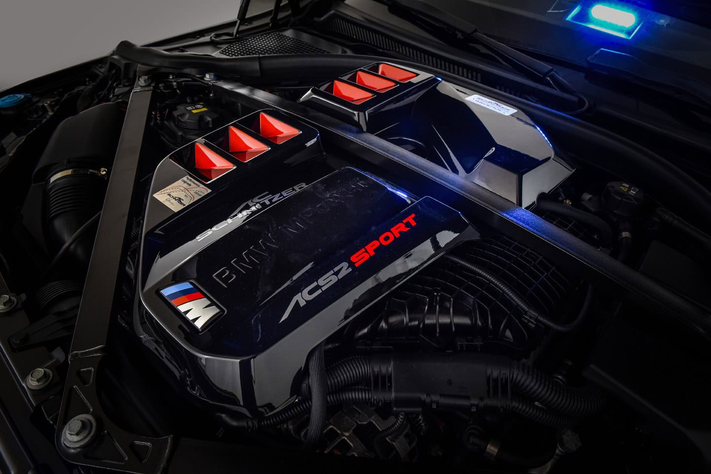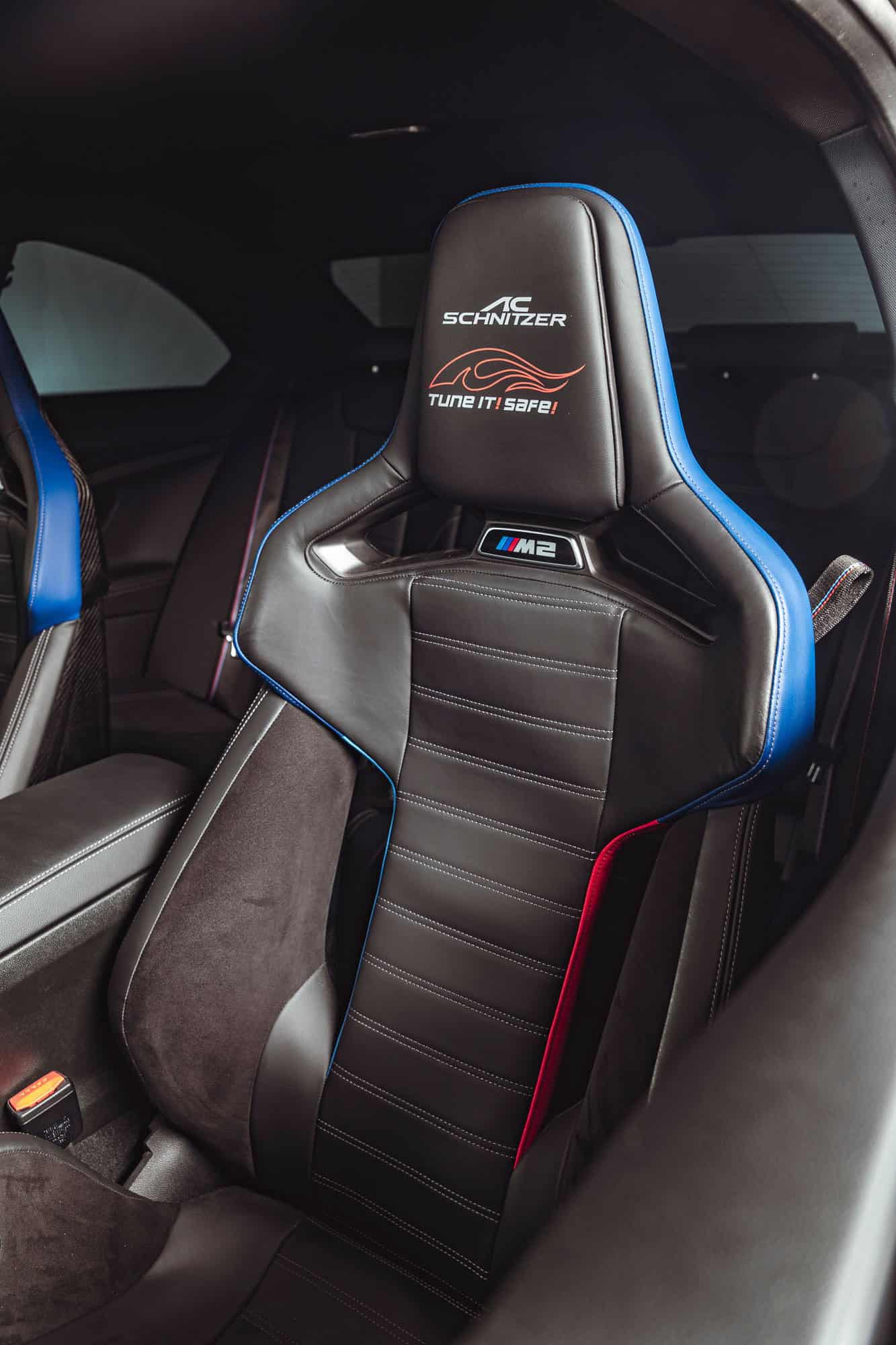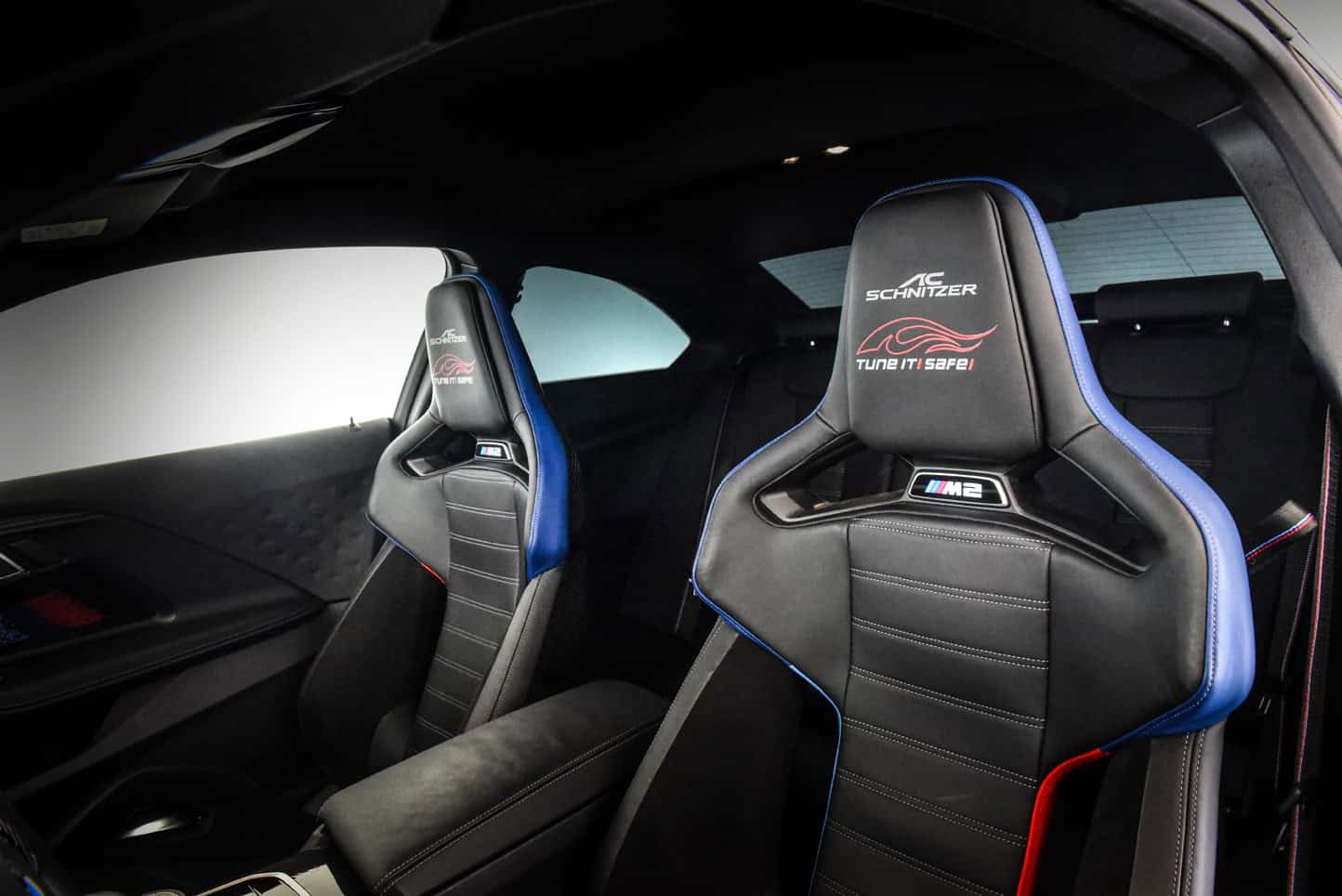 Underneath the custom engine cover featuring the biggest M logo we’ve ever seen is a reworked S58 engine. The twin-turbo, 3.0-liter inline-six now pumps out 553 horsepower and 650 Newton-meters (479 pound-feet). AC Schnitzer worked on an M2 with the eight-speed automatic transmission rather than the six-speed manual. That makes sense given the extra torque the manual would have a hard time coping with.