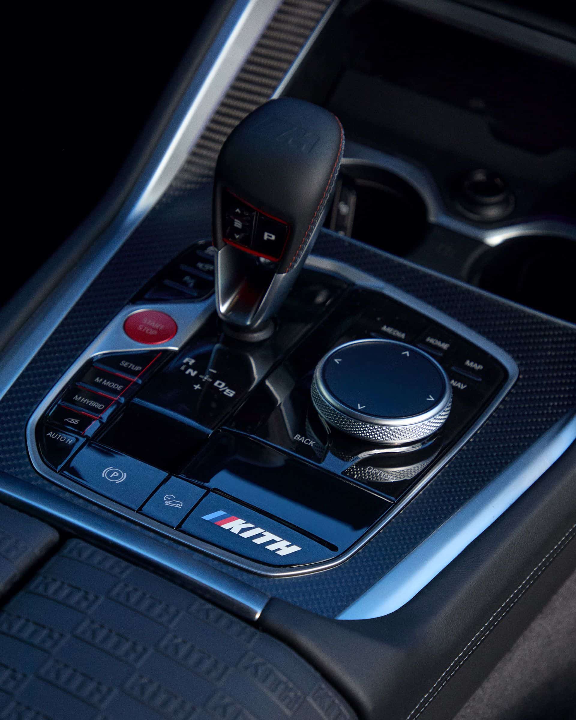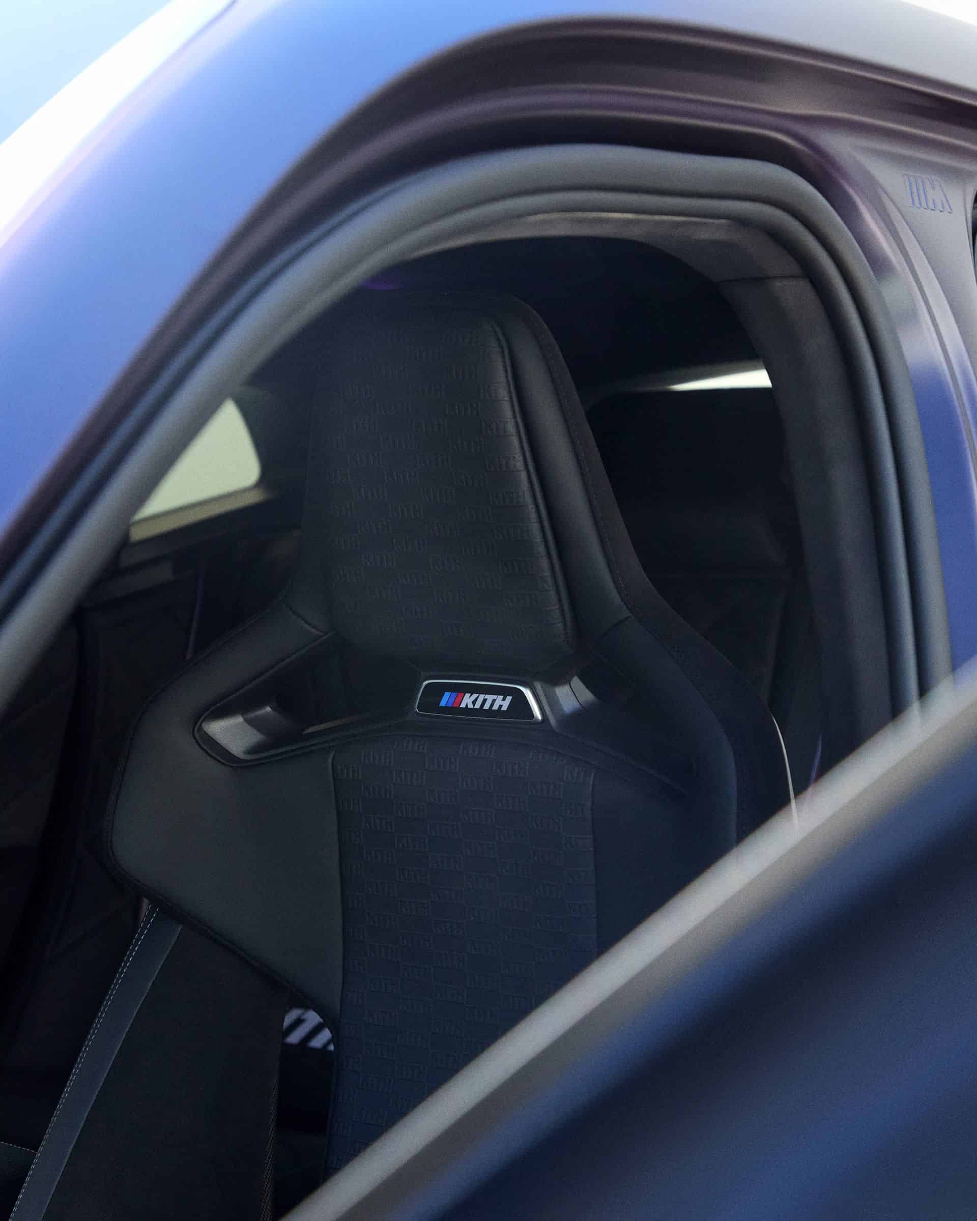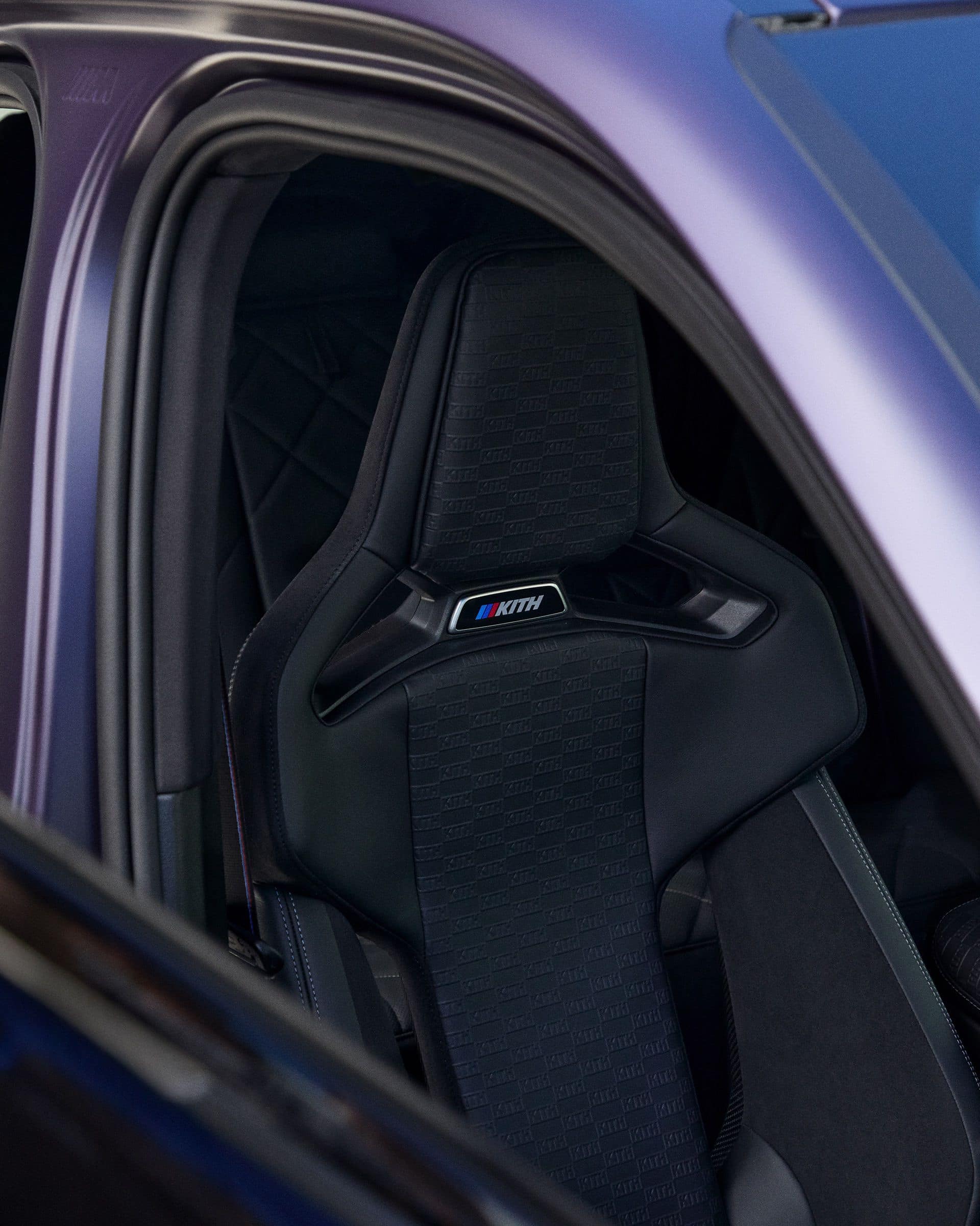 The purple/violet motif continues with the daytime running lights and the kidney grille’s illuminated contour. There are even purple Kith LEDs beneath the headlights, plus illuminated Kith logos running along the sides of the car. The fashion house’s monogram continues inside where the concept features carbon bucket seats. Unfortunately, the limited-run production version has the regular M multifunction seats instead.