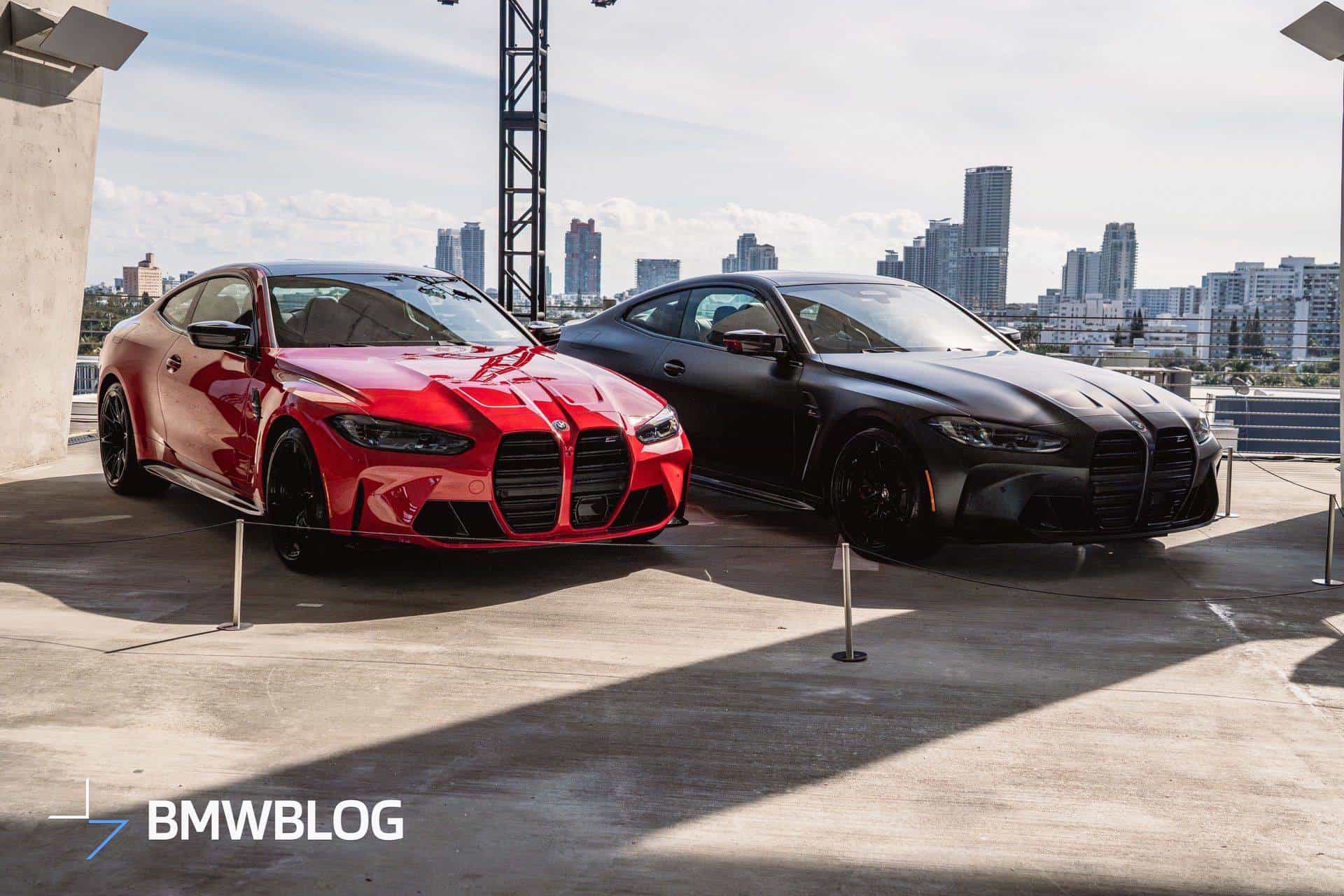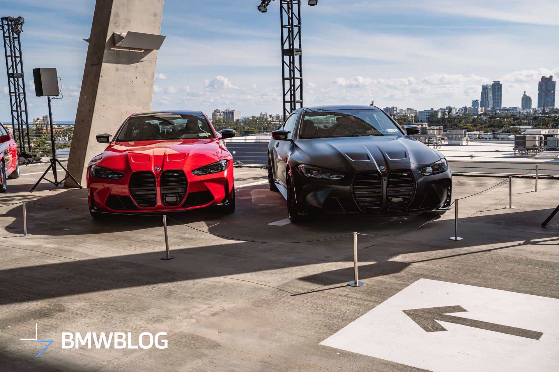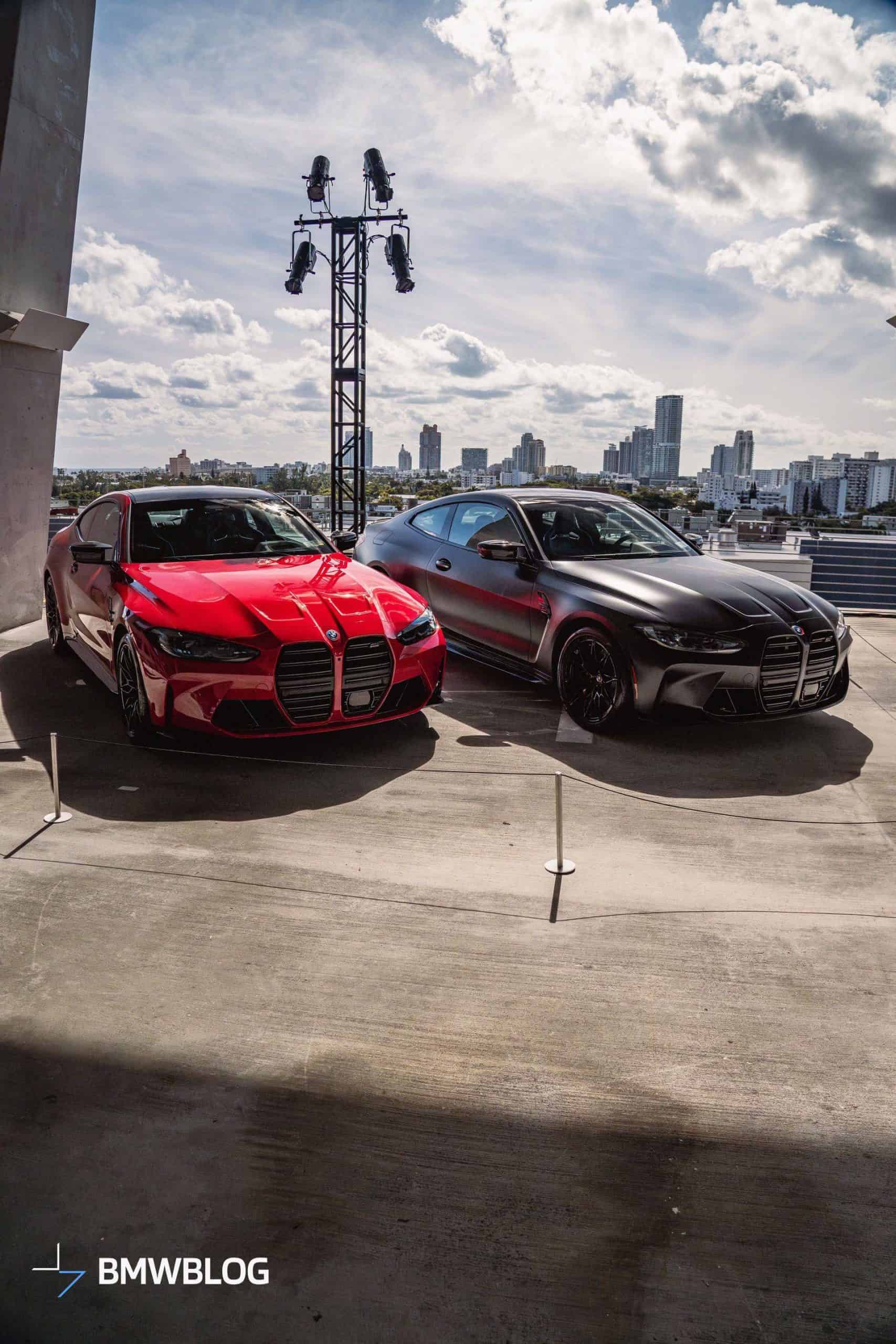 The Design Study in motion. This is one of the 150 G82 M4 Competition x Kith cars, sitting right next to the genesis of the project, Fieg’s Cinnabar Red M4. The Frozen Black paint was one of three choices – Frozen Dark Silver and Frozen Brilliant White were the other two – and hides a twin-turbo inline-six under the hood producing 510 horsepower. Atop the carbon fiber roof panel is a large Kith motorsport-inspired graphic.