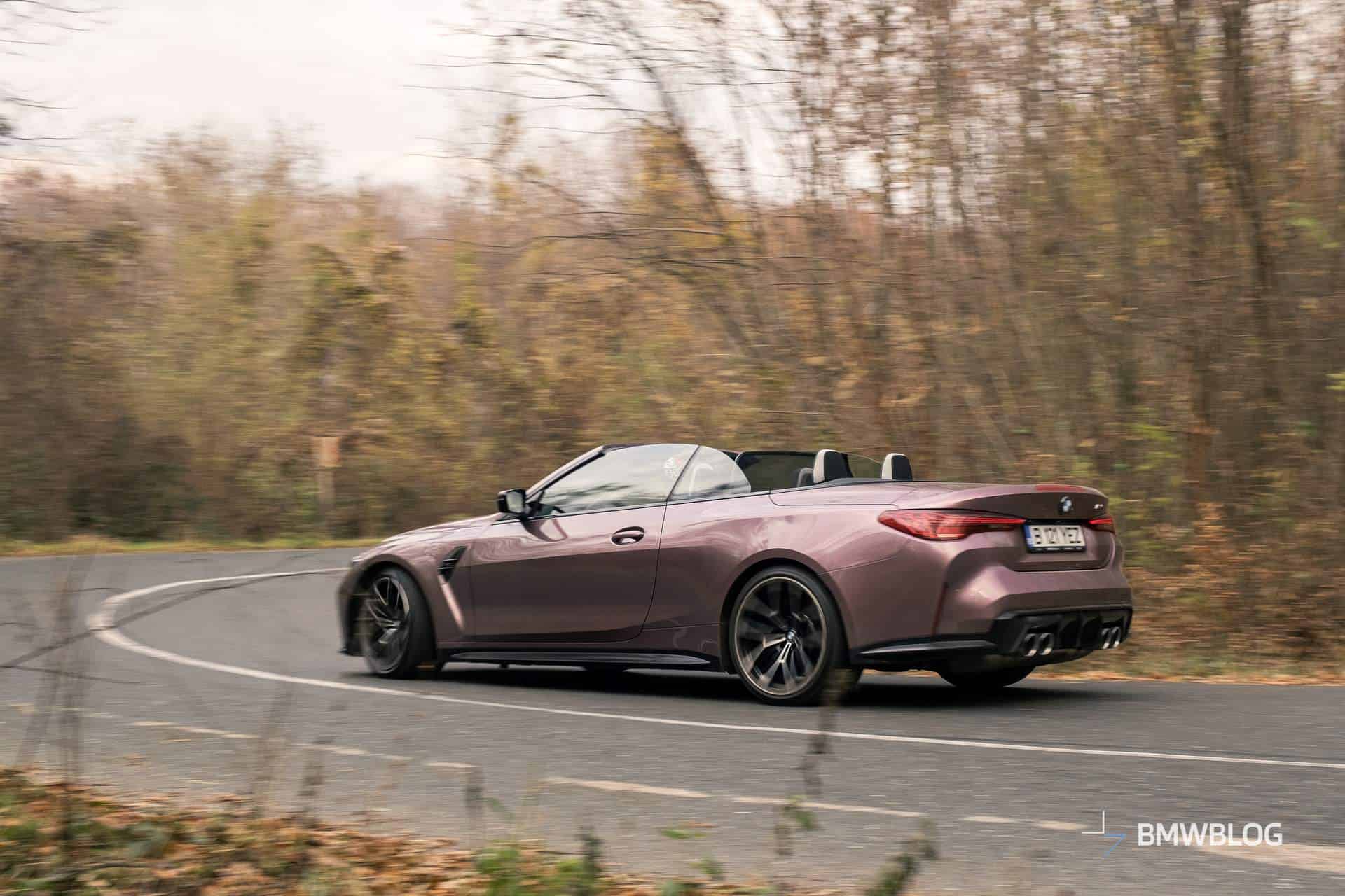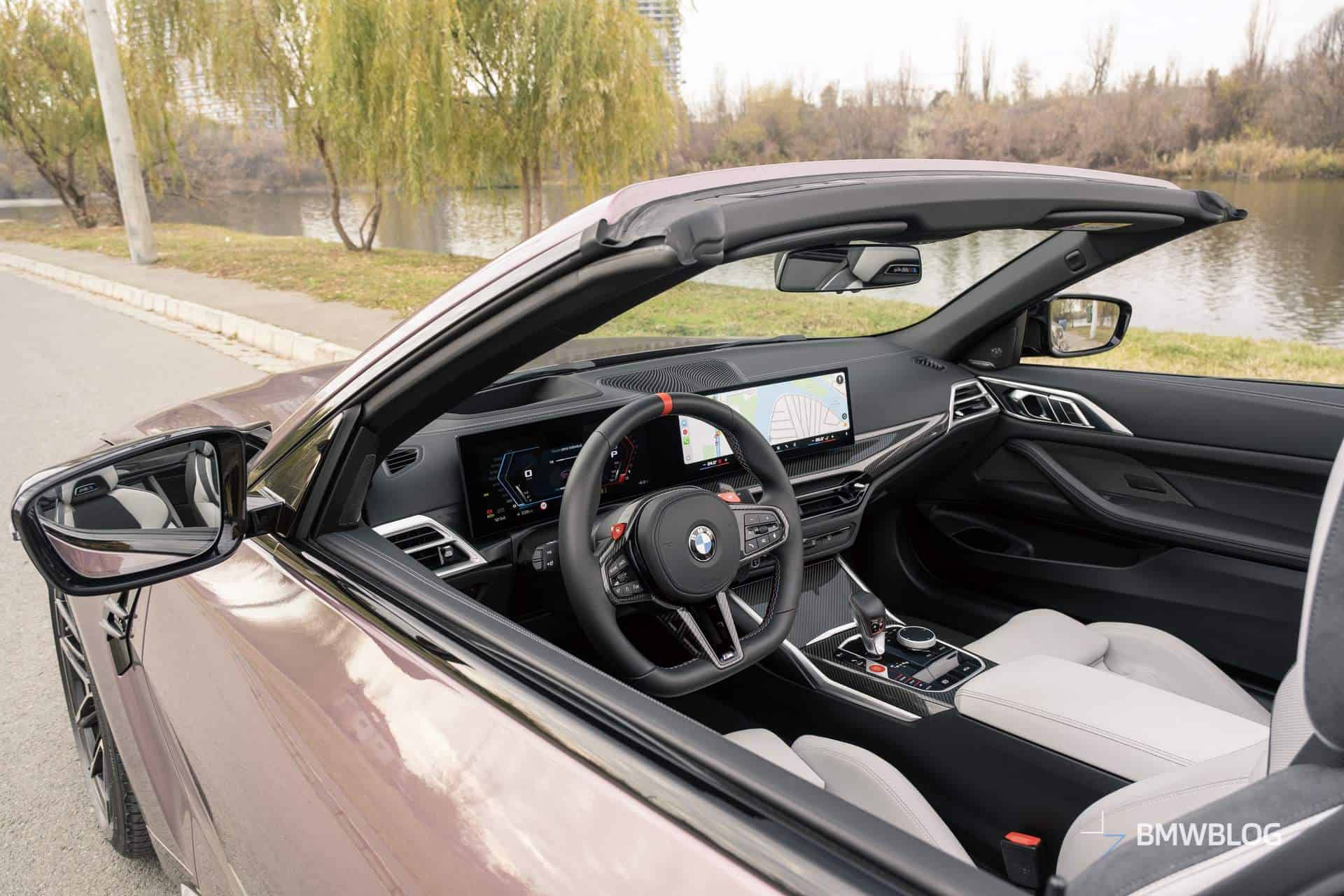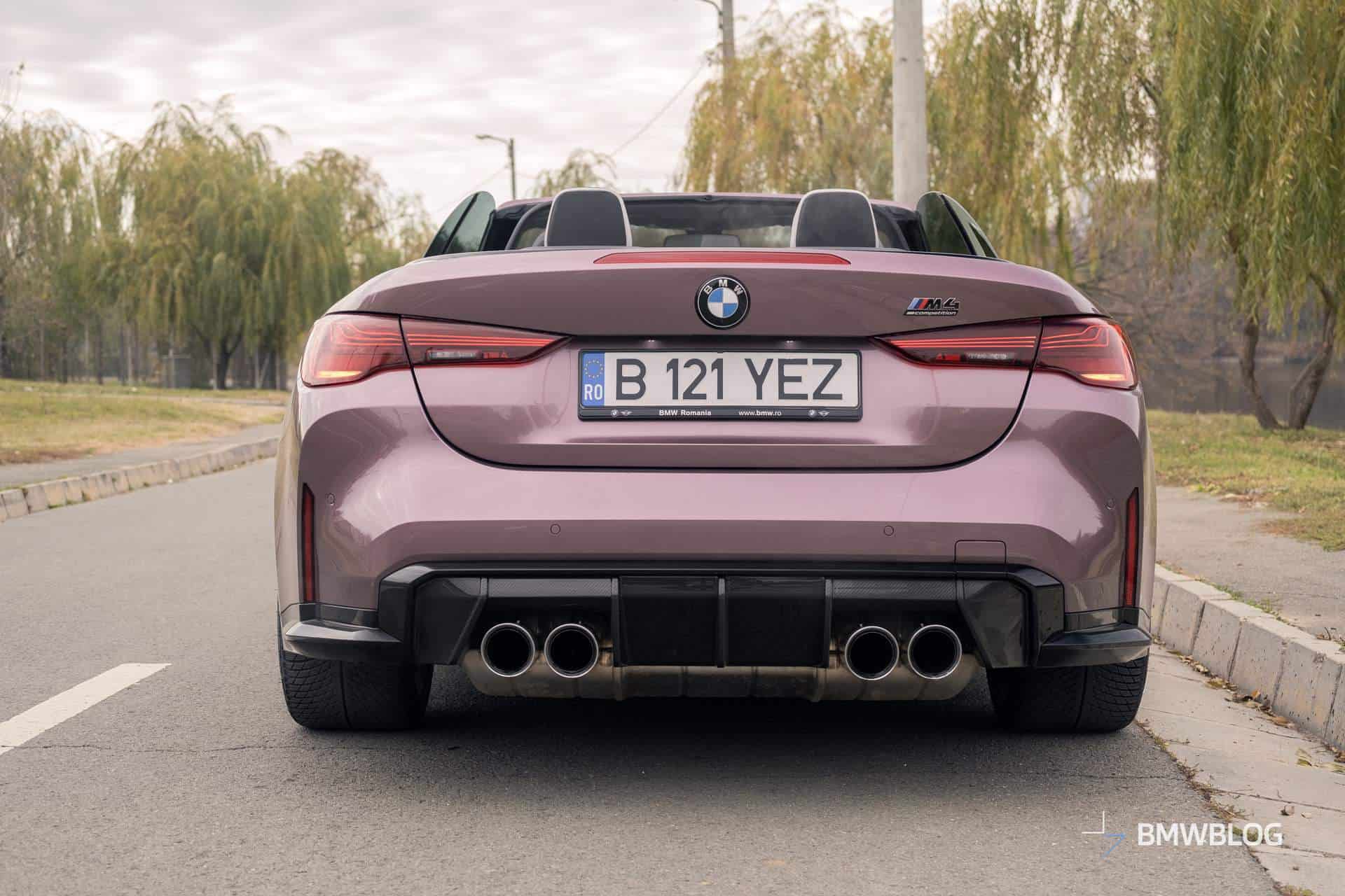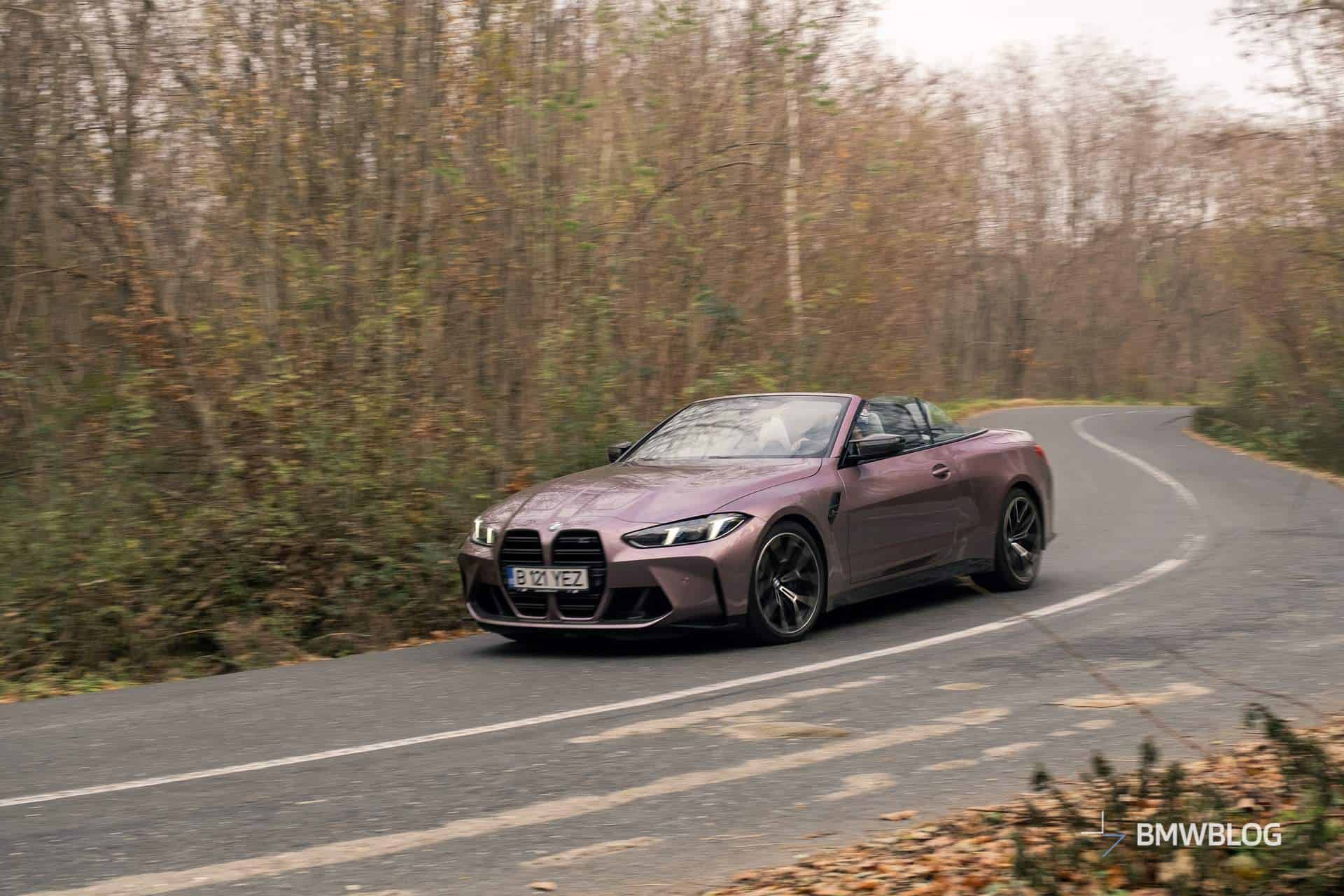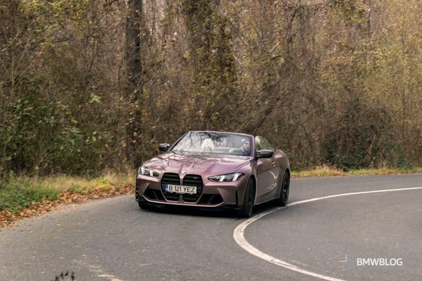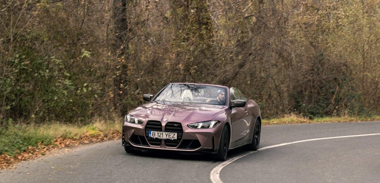 As I was driving away from the BMW Romania headquarters, where I picked up my G83 BMW M4 Convertible finished in stunning Velvet Orchid II, the first thing that struck me was just how comfortable it is. Even with the large standard wheels (19 inches in the front and 20 inches in the rear), if you put it in Comfort mode, it feels like a proper cruiser with plenty of give in its suspension.