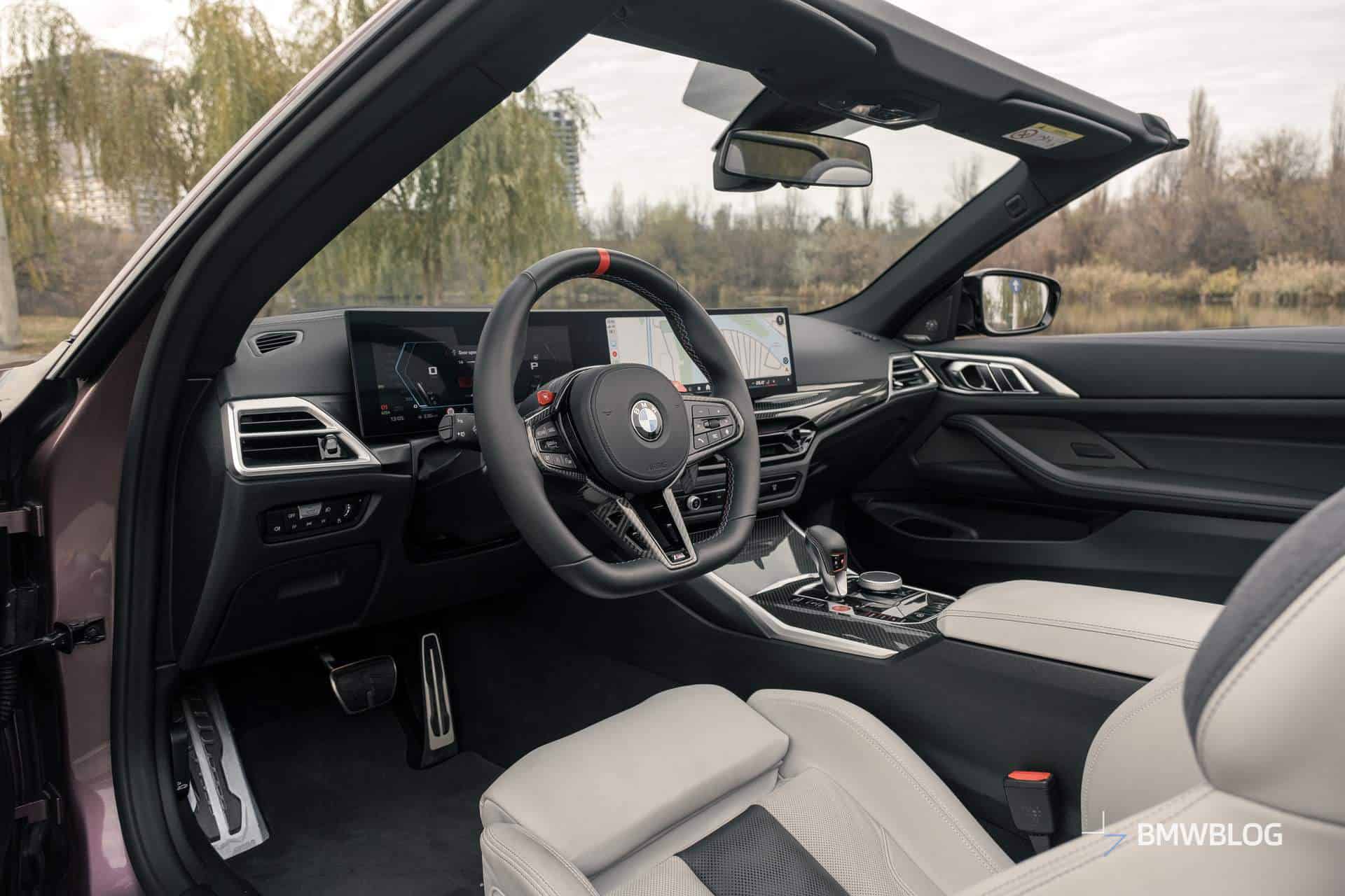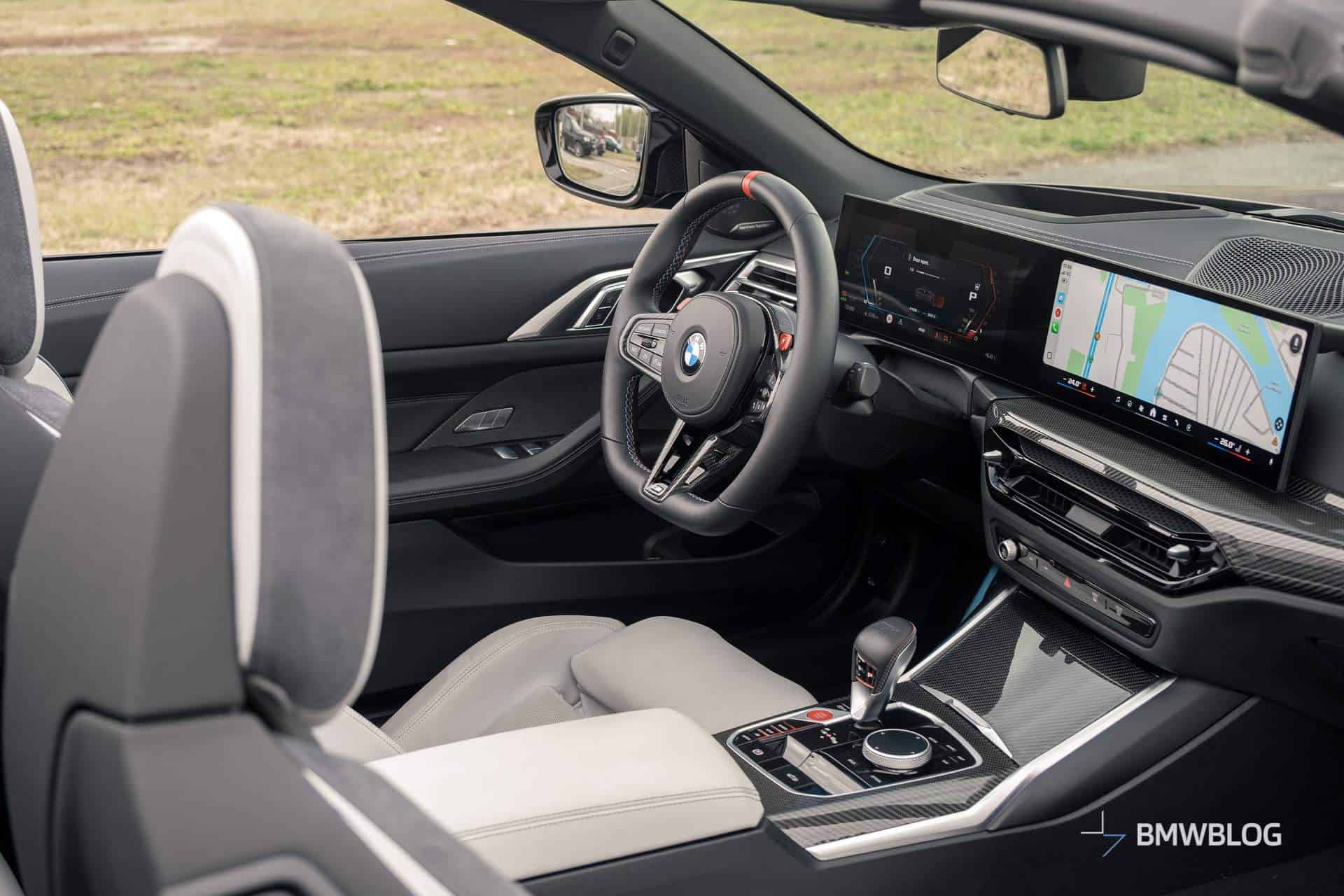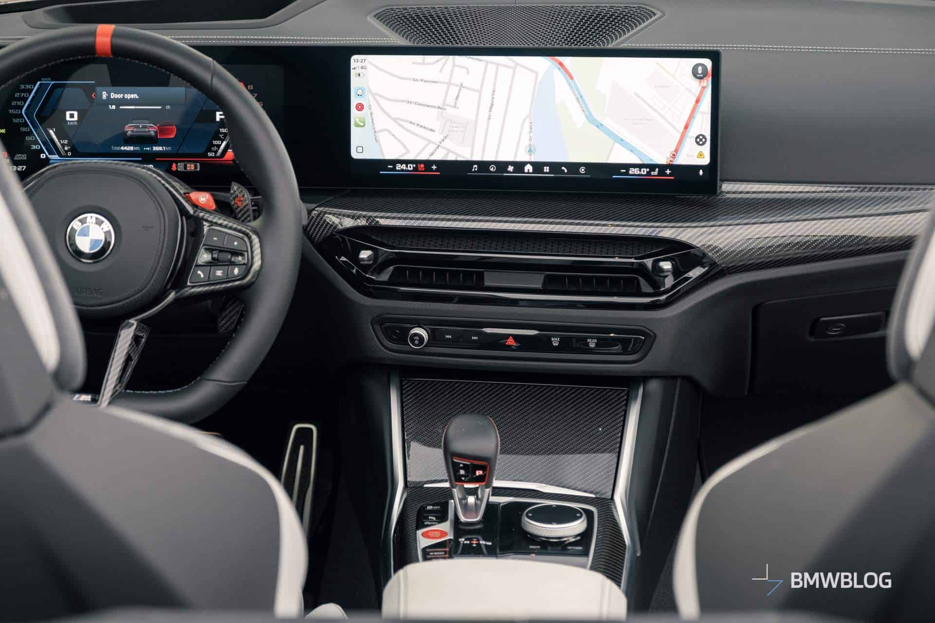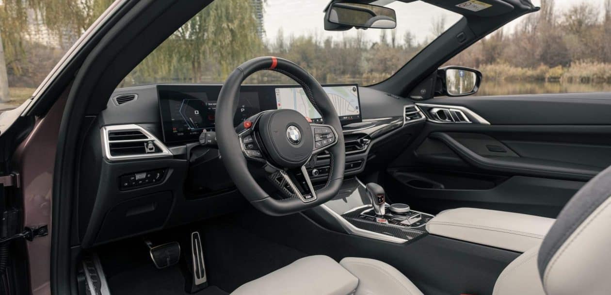 Even though the M4 didn’t launch with the curved screen array comprised of a 12.3-inch display in front of the driver and a 14.9-inch central screen, this got added in the pre-facelift model’s second year of production. What BMW did with the LCI model was to remove virtually all buttons on the center console, forcing you to do more things through the screen.