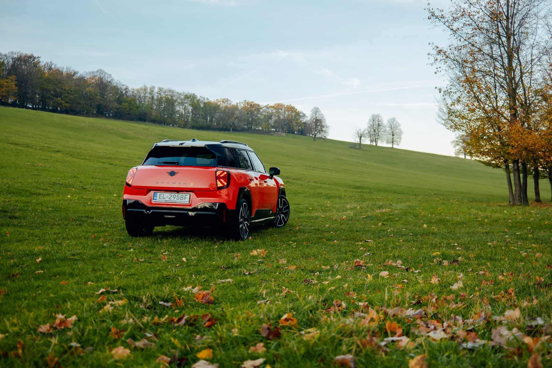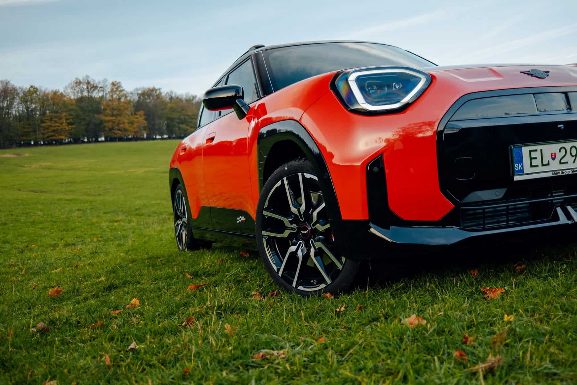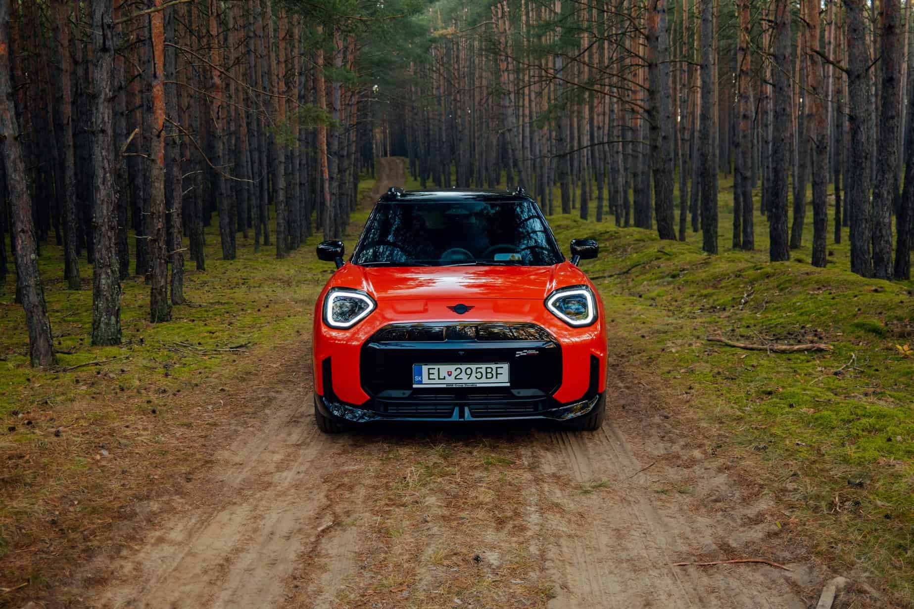 The zero-emission crossover traveled more than 4,000 miles for a photo shoot in Slovakia. At a little over four meters (160 inches) long, the Aceman is hardly mini. That said, it’s smaller than the six-door Clubman it indirectly replaces in MINI’s lineup. Shown here is one of the more expensive configurations available, painted in Rebel Red. It’s a John Cooper Works Trim, but not to be confused with the fully fledged JCW performance model.