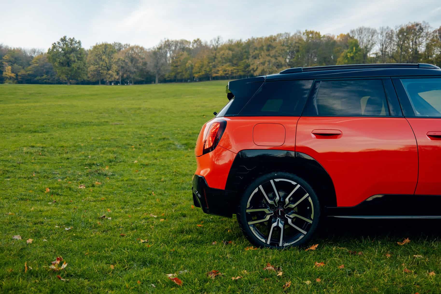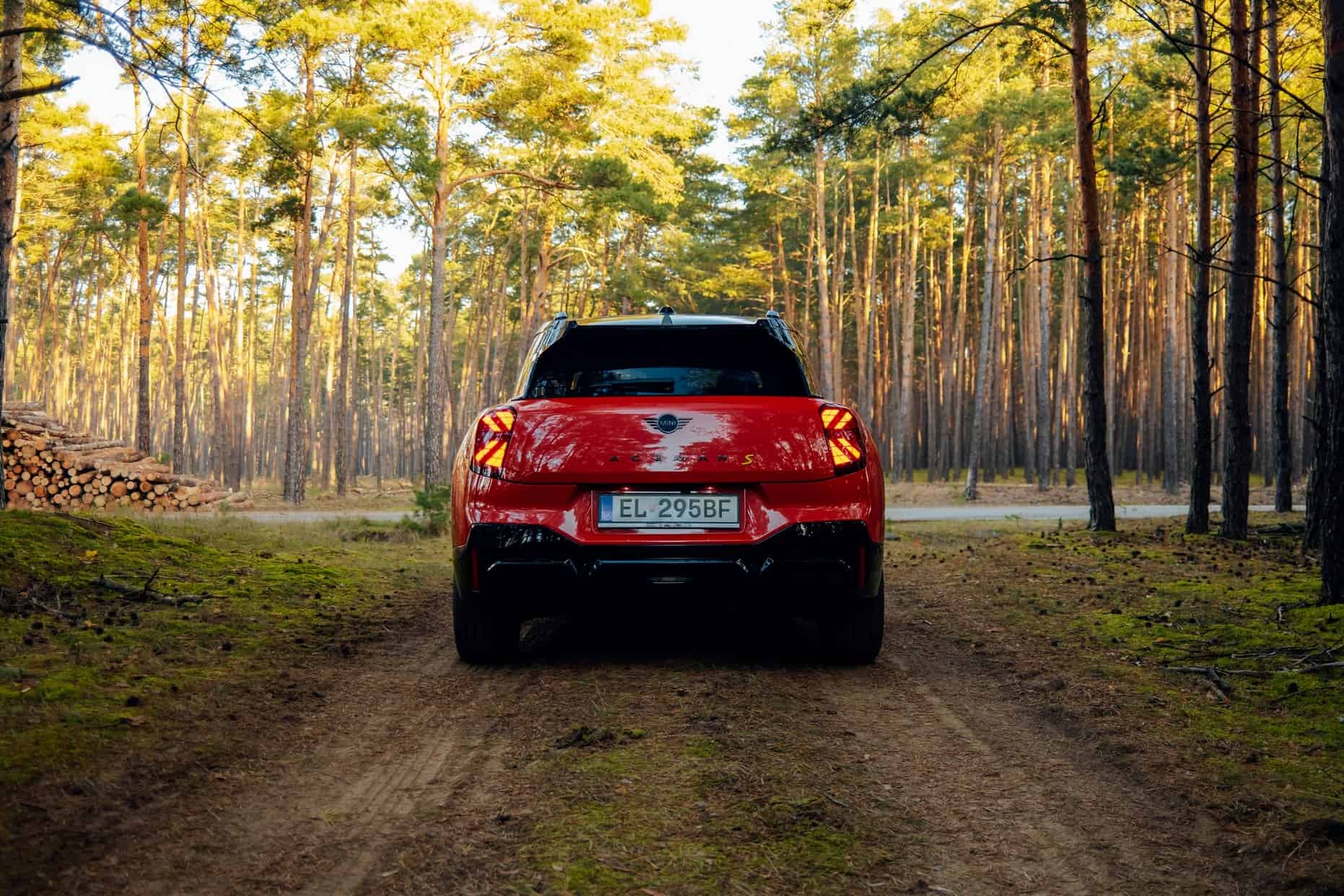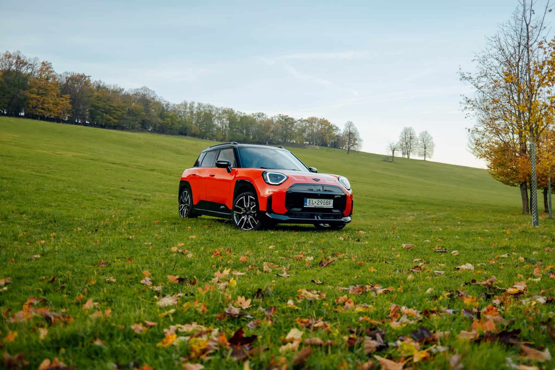 The zero-emission crossover traveled more than 4,000 miles for a photo shoot in Slovakia. At a little over four meters (160 inches) long, the Aceman is hardly mini. That said, it’s smaller than the six-door Clubman it indirectly replaces in MINI’s lineup. Shown here is one of the more expensive configurations available, painted in Rebel Red. It’s a John Cooper Works Trim, but not to be confused with the fully fledged JCW performance model.