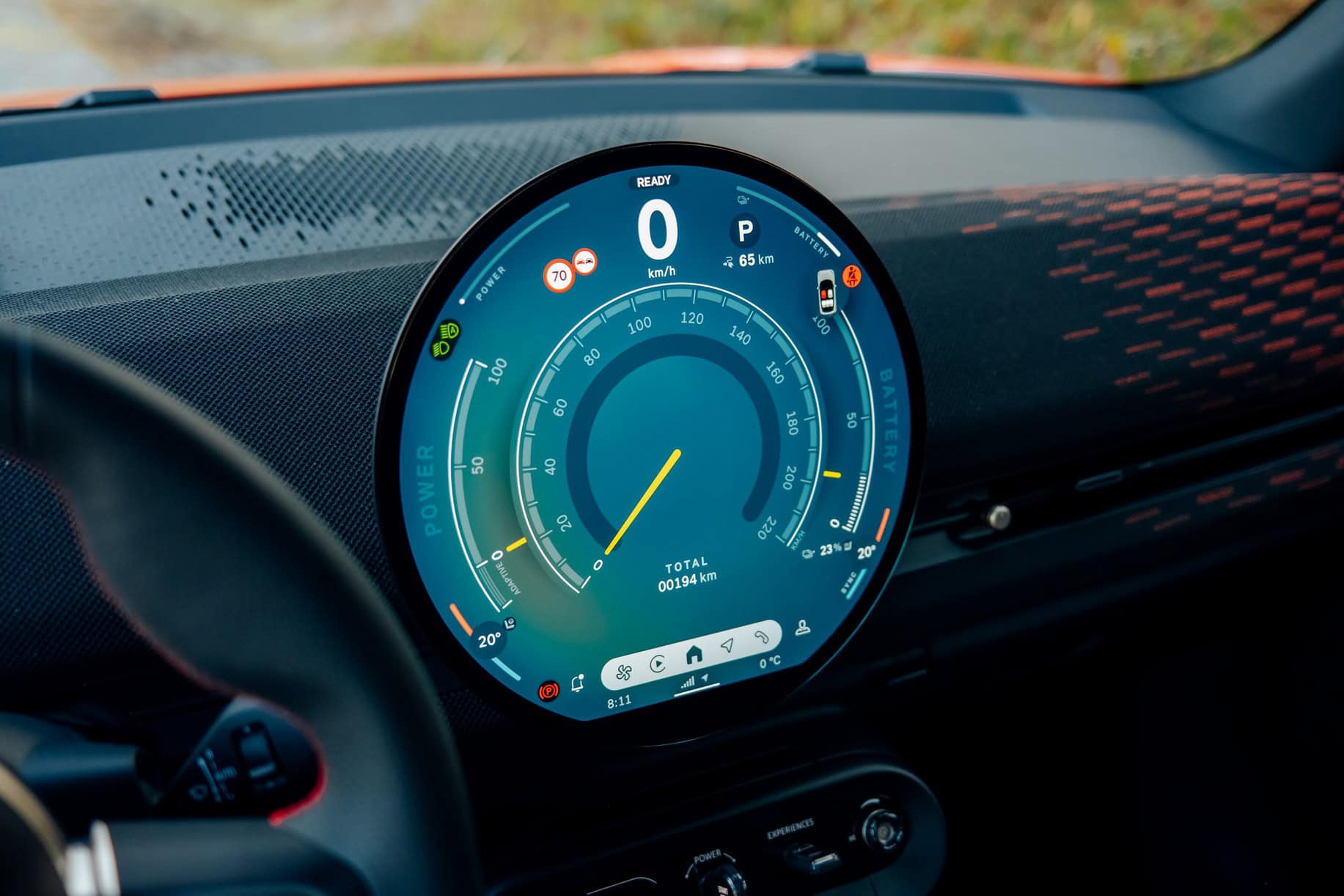 MINI went as far as getting rid of the driver’s display. Replacing the instrument cluster is a head-up display for a simplified layout we’ll also see soon on BMWs. The Neue Klasse models will delete the conventional digital screen in front of the driver to make way for a next-gen HUD. Future BMW cars will also adopt the Panoramic Vision, which is marketing jargon for an ultra-wide screen at the base of the windshield.