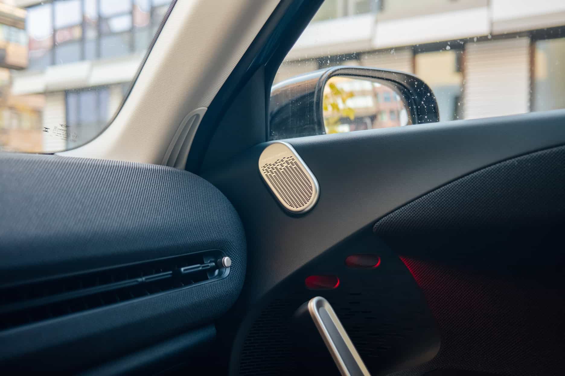 This Aceman E boasts the HUD and an optional panoramic sunroof, which lets more light into the cabin and creates a more airy feel. If you’re concerned that the grey/blue upholstery is tricky to maintain, a black/blue finish for the vegan-friendly synthetic leather (Vescin) is also available.