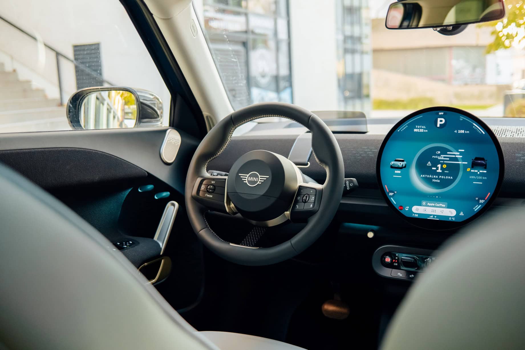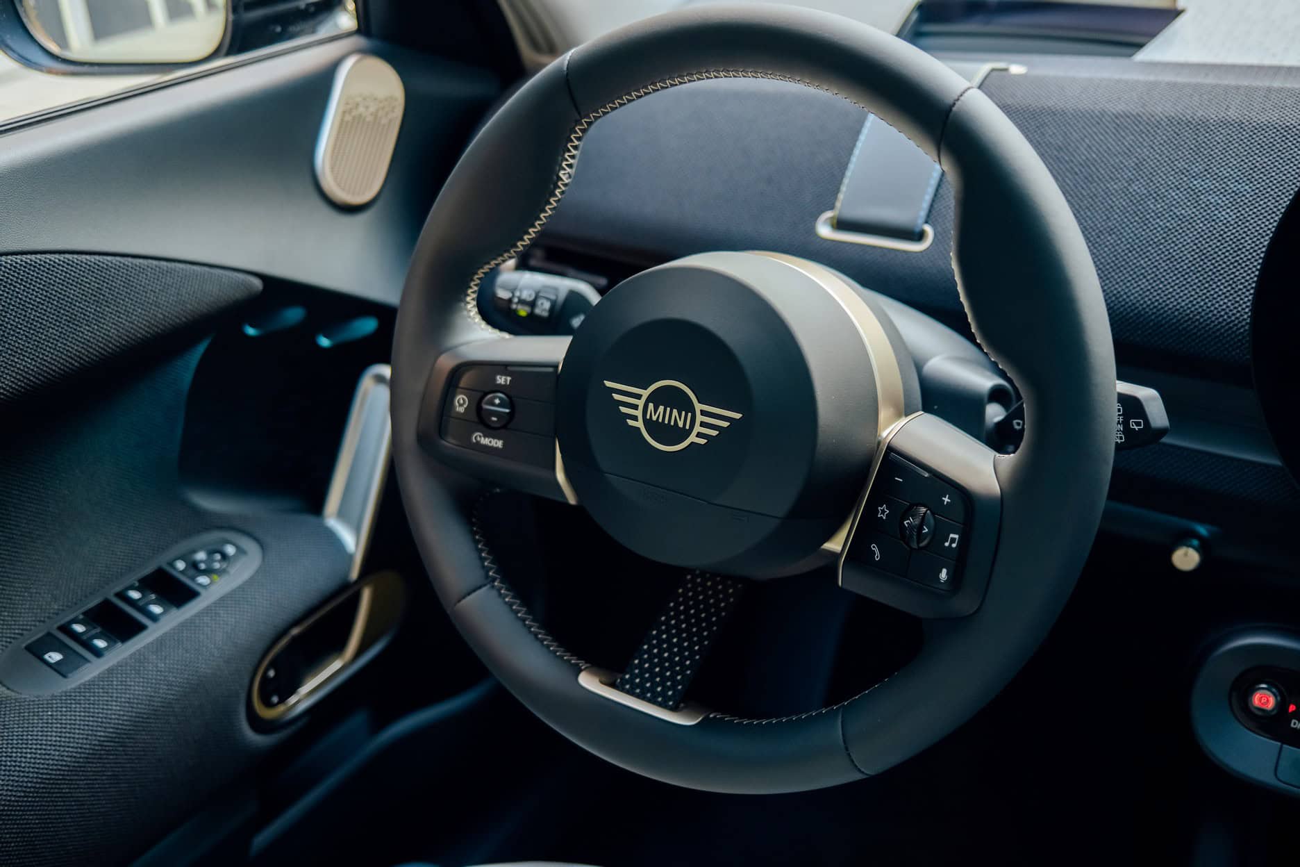 The Aceman has essentially the same simplified interior as the rest of the renewed MINI lineup. You’ll be accessing most controls from the circular display, a bright and crisp 9.4-inch OLED touchscreen. The minimalist approach means there’s no instrument cluster. However, an optional head-up display is available, providing relevant information in the driver’s line of sight.