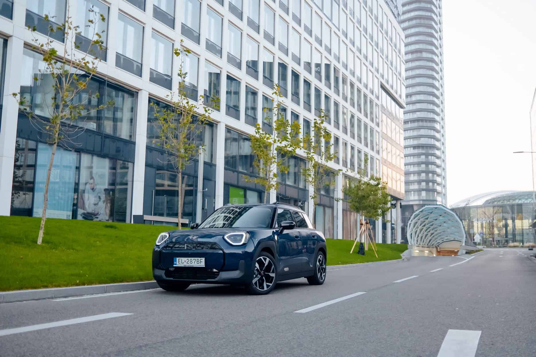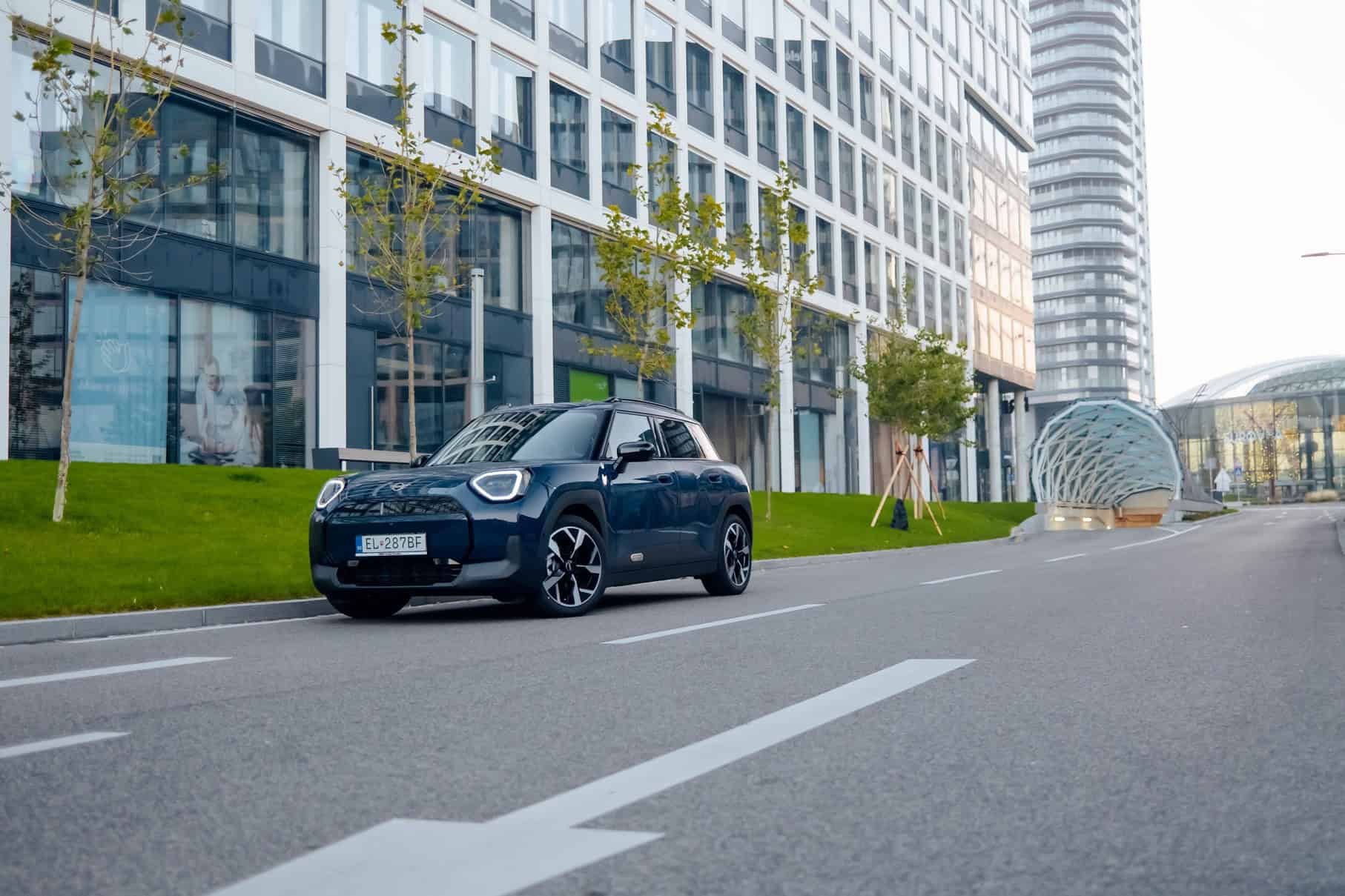 The lesser Aceman E is seen here roaming the streets of Slovakia, flaunting an Indigo Sunset Blue paint. It’s a cheaper and less powerful alternative to the Aceman SE, but it’s just as customizable. The two-tone, 18-inch wheels are optional, and they can be swapped for an even larger 19-inch set. In addition, this body-colored roof can be ordered with a contrasting black finish.